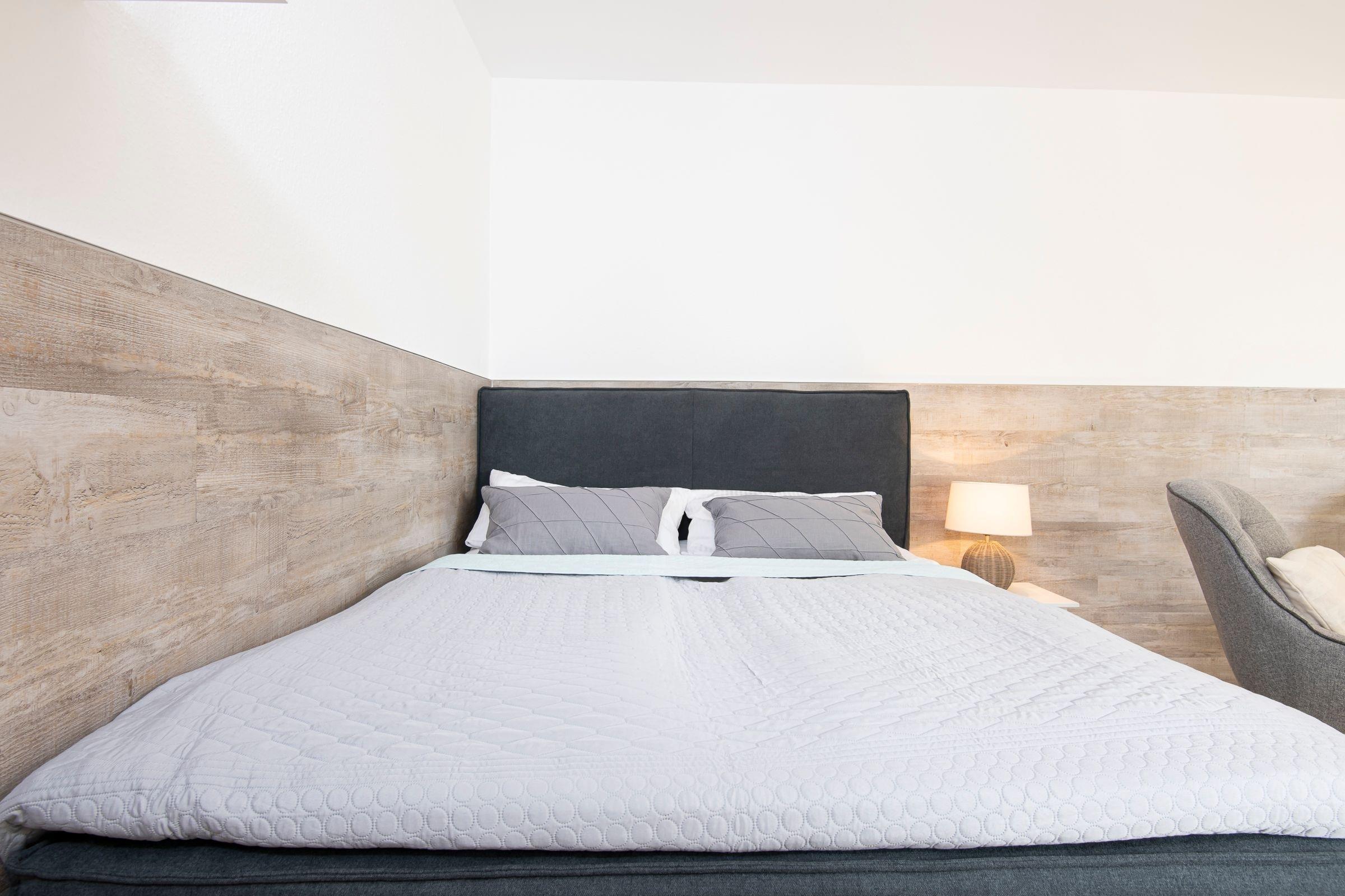 Wohn-/Schlafraum: 1 Boxspringbett (160x200 cm), TV, Verdunkelung: Plissees