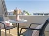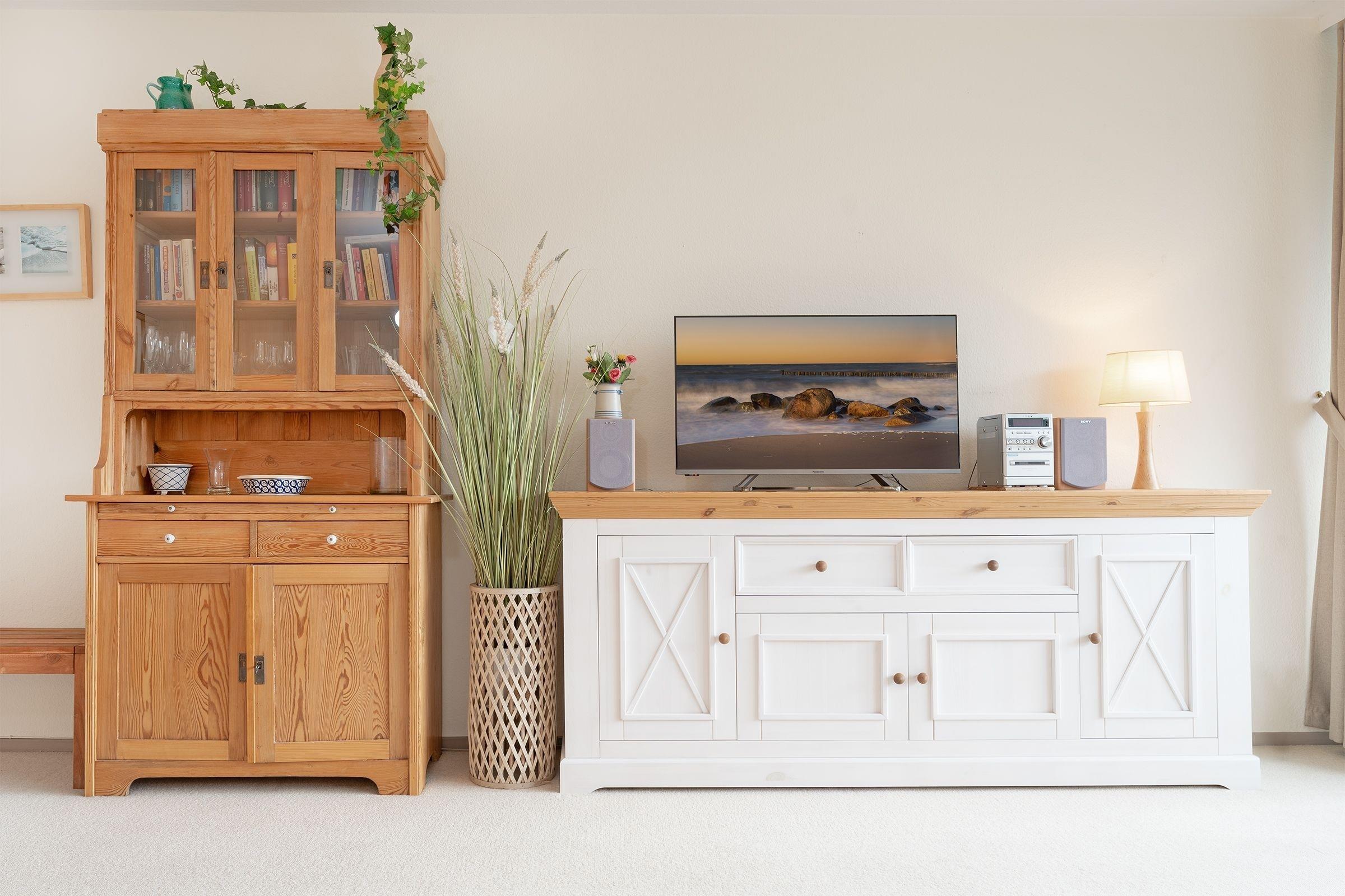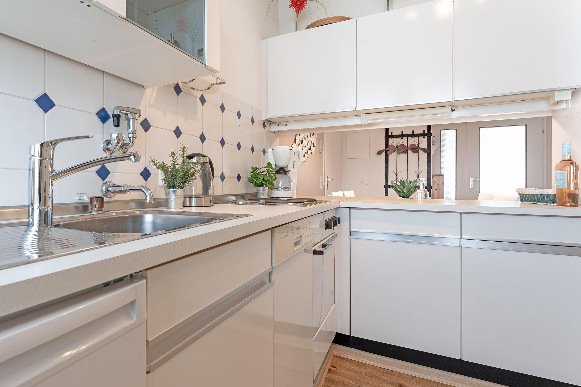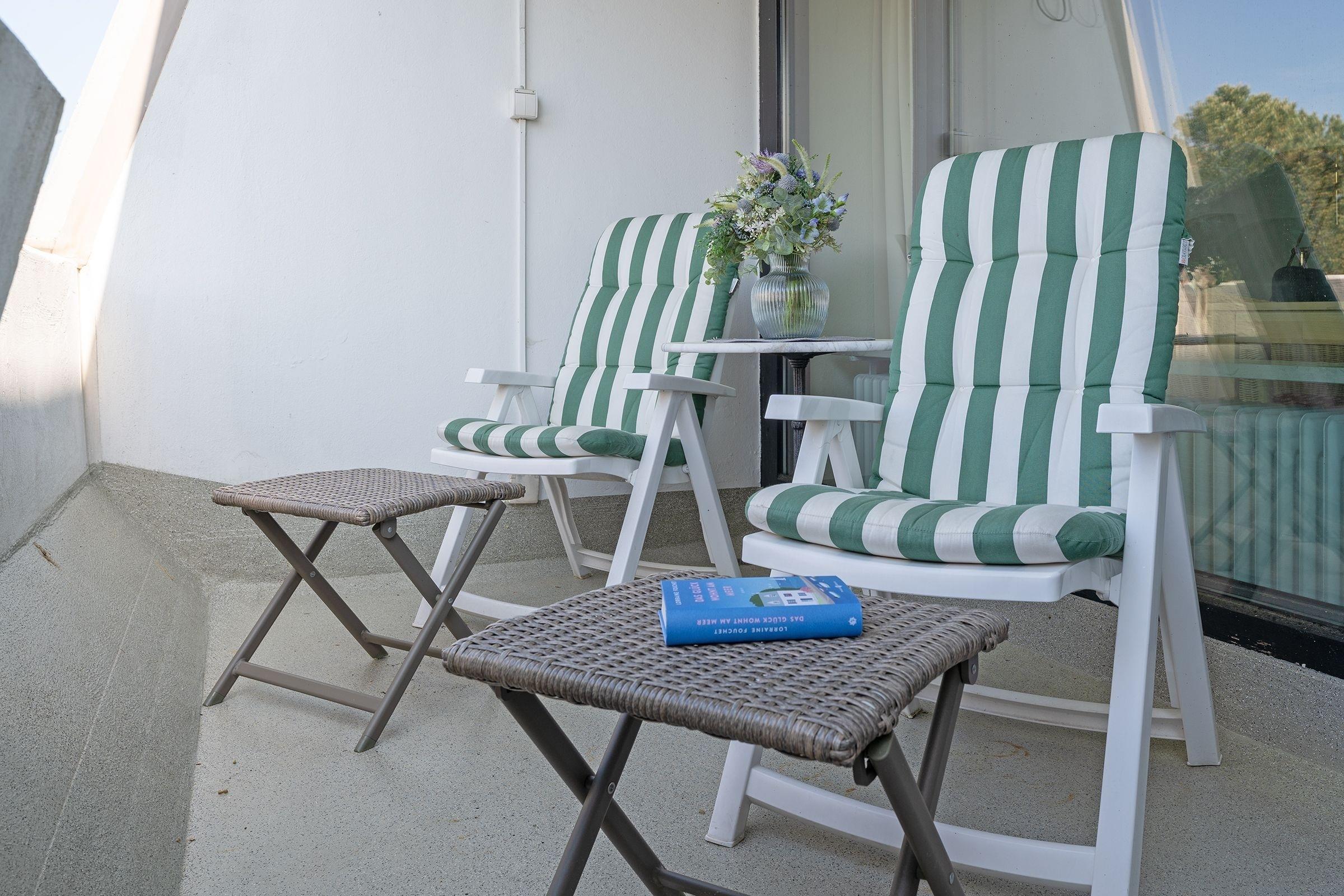 Es ist geschmackvoll und sehr gemütlich eingerichtet. Der Wohnraum verfügt über eine Couchgarnitur mit einer Schlafcouch (140x190 cm), ein TV-Gerät mit Kabelempfang und eine Stereoanlage. Der sehr großzügige Balkon in Süd-/ Westlage ist mit Balkonmöbeln ausgestattet, eine Markise spendet bei Bedarf Schatten. Im Schlafzimmer befindet sich ein Doppelbett (2x 90x200 cm) mit ausreichend Stauraum für Ihre Urlaubsgarderobe. In der separaten Küche mit Essplatz finden Sie einen 3-Plattenherd mit Backofen, Geschirrspülmaschine, Kühlschrank mit Gefrierfach, Kaffeemaschine, Wasserkocher und Toaster. Außerdem gibt es hier eine Durchreiche zum Essplatz und einen Zugang zum zweiten Balkon in Ostlage, auf dem Sie eine Tasse frischen Morgenkaffee genießen können. Das hell geflieste Badezimmer ist funktional mit Dusche/WC und beleuchtetem Spiegelschrank ausgestattet.