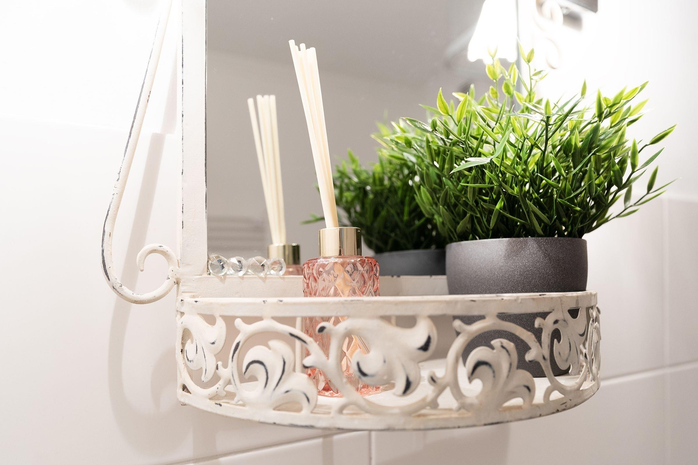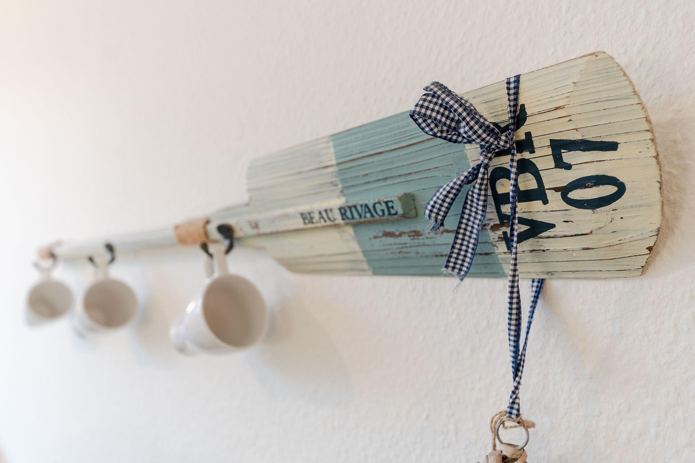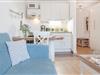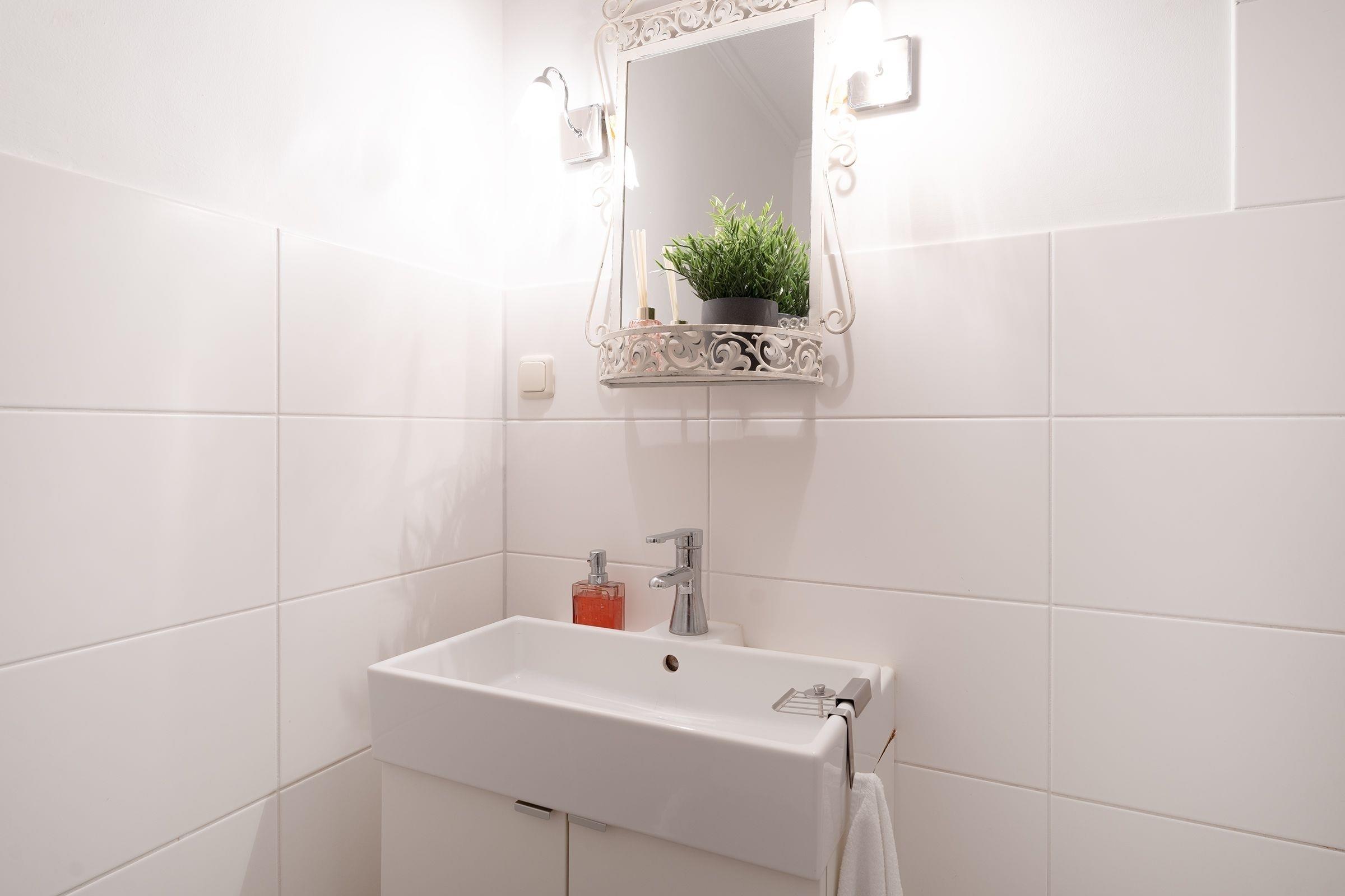 Die moderne Küchenzeile ist in den Wohnraum integriert und erfreut im Urlaub mit Alltagshelfern wie Ceranherd, Backofen und Mikrowelle. Genießen Sie die erste Tasse Kaffee am geselligen Esstresen mit Platz für zwei. Das kleine, aber feine Badezimmer ist geschmackvoll gestaltet und sorgt mit Regendusche, Fön und beleuchtetem Spiegel für gute Laune.