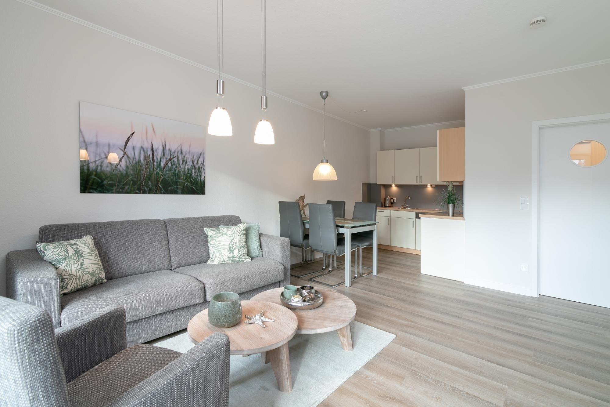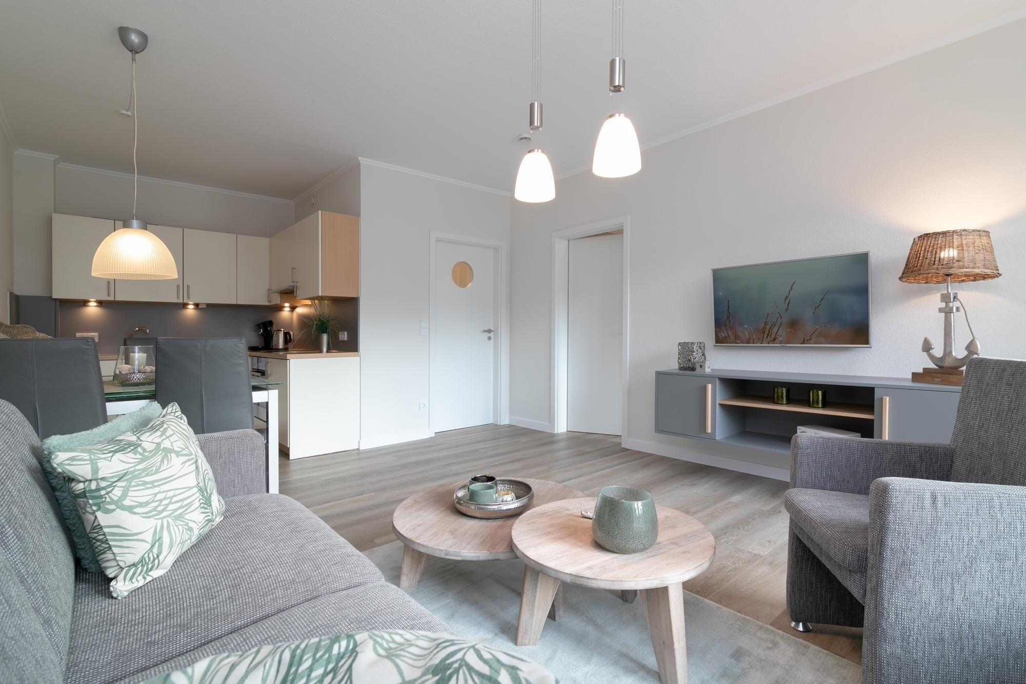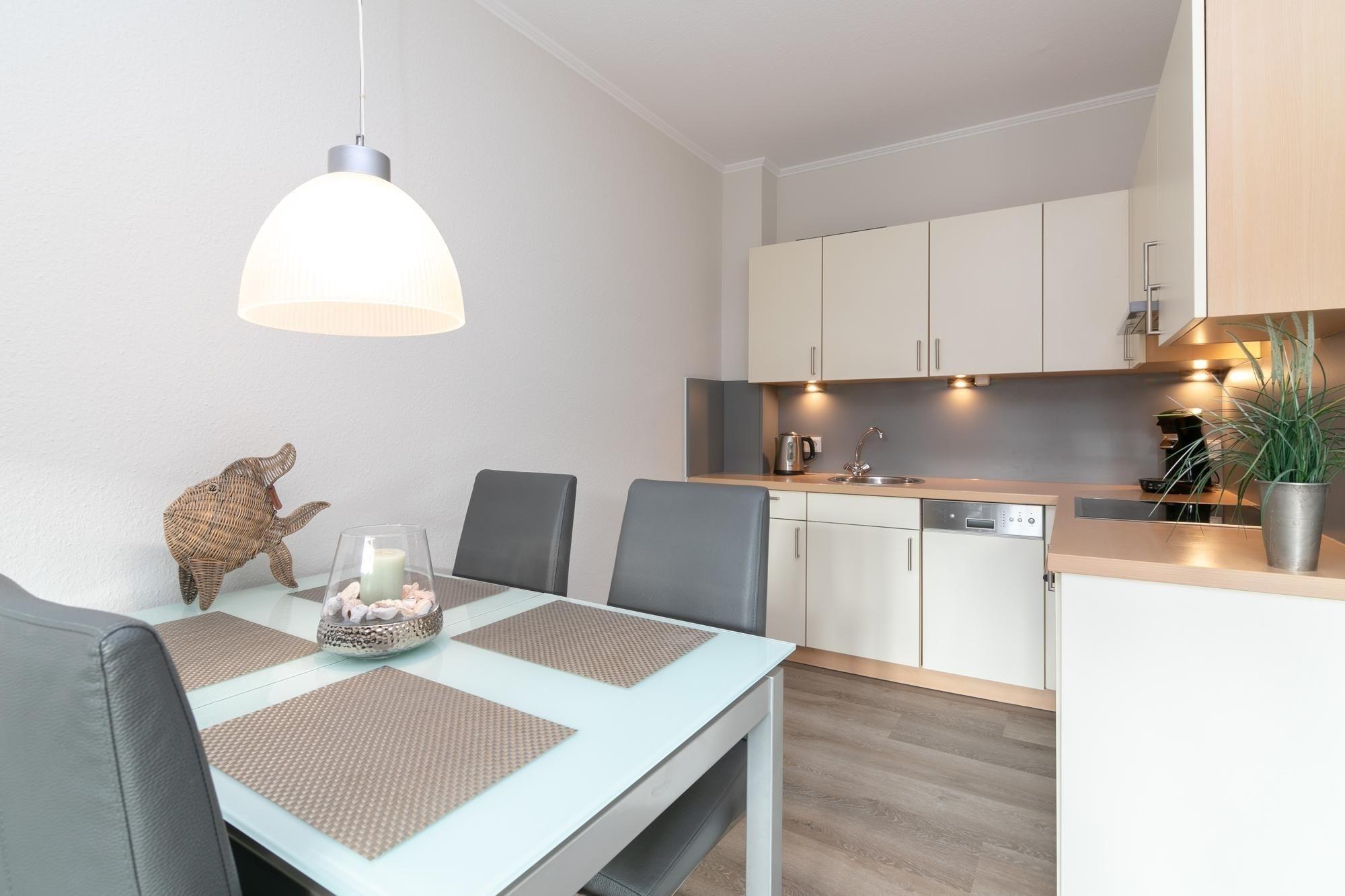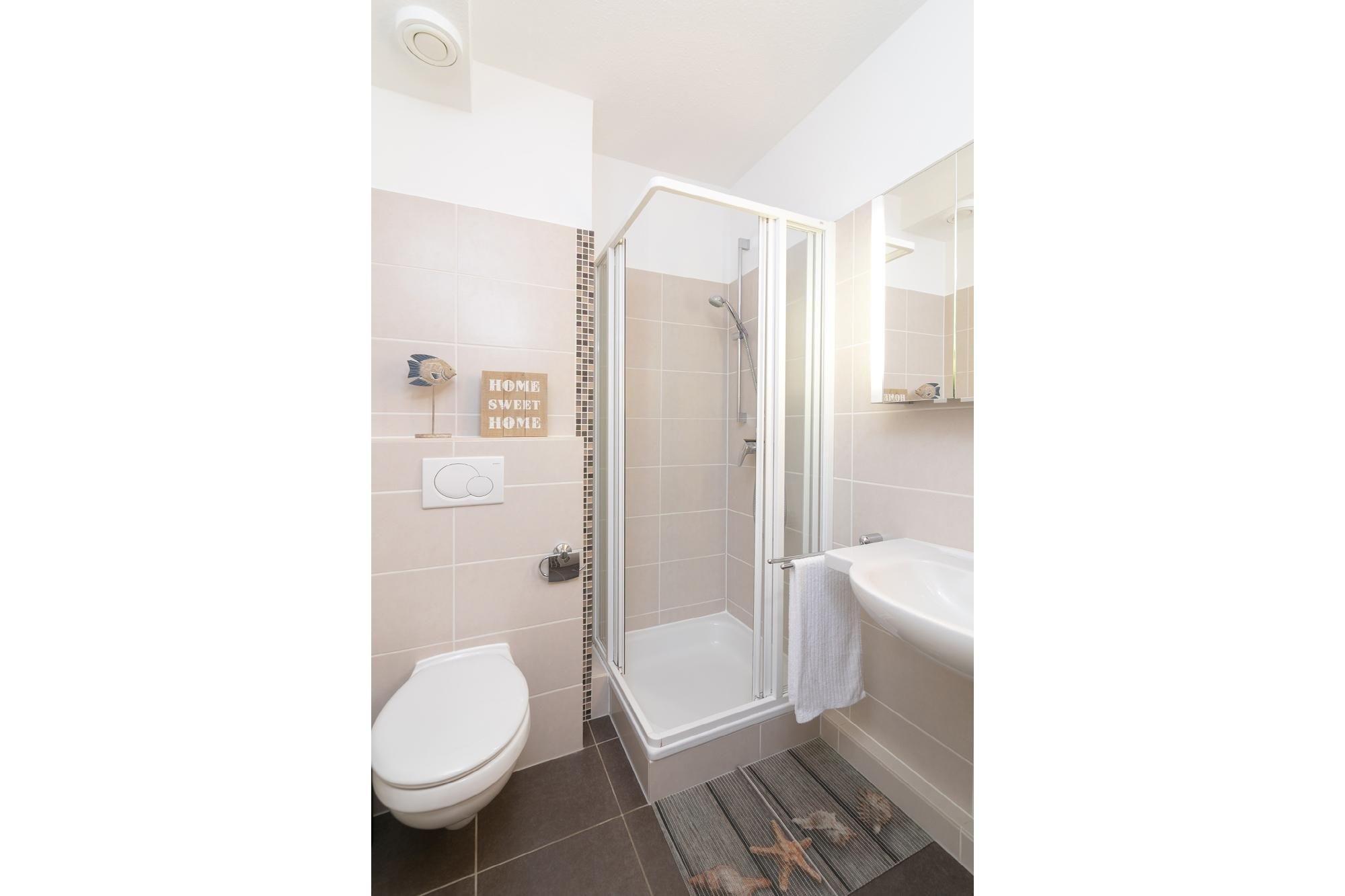 Dieses frisch renovierte 2-Zimmer-Appartement hat ca. 48 m² und bietet Platz für bis zu 4 Personen. Es ist modern, komfortabel und geschmackvoll eingerichtet. Es gibt einen Schlafraum mit einem Doppelbett (180x200 cm) und TV, sowie ein helles Duschbad.