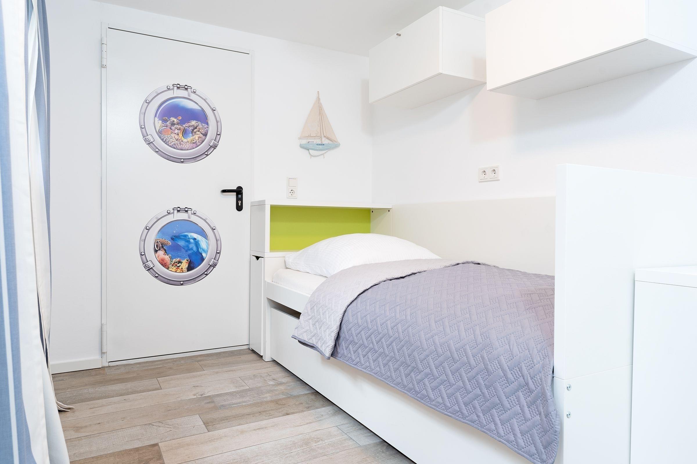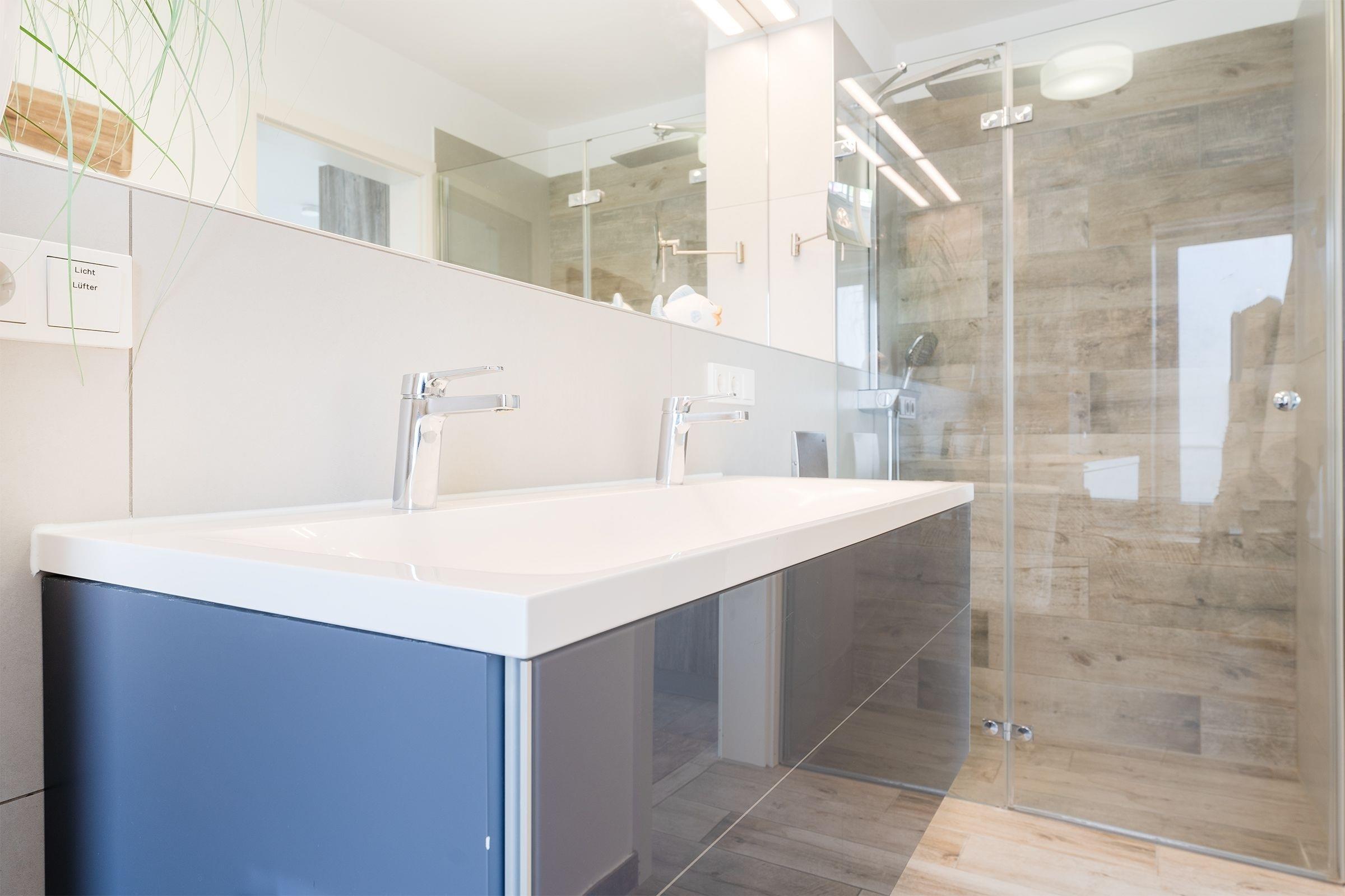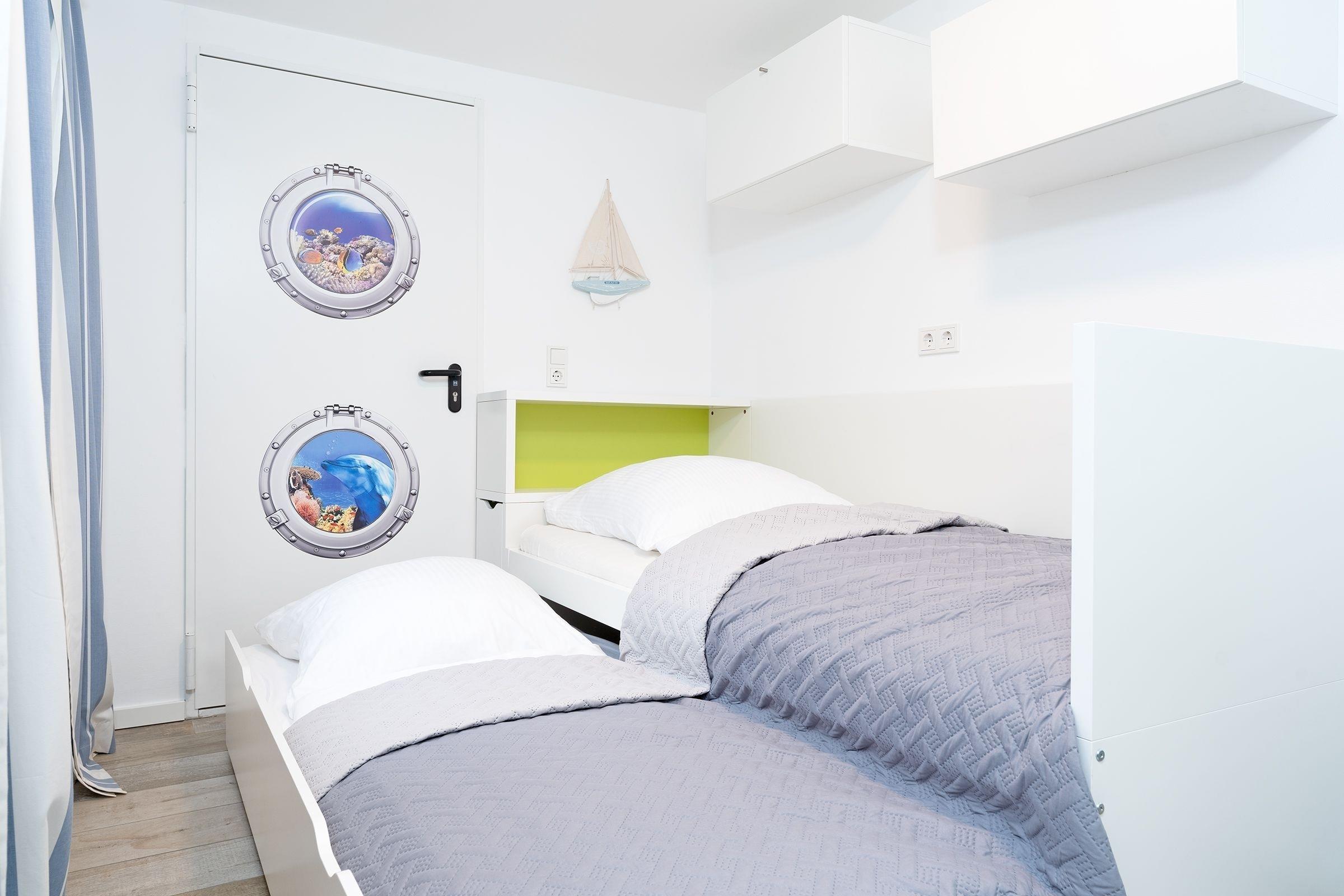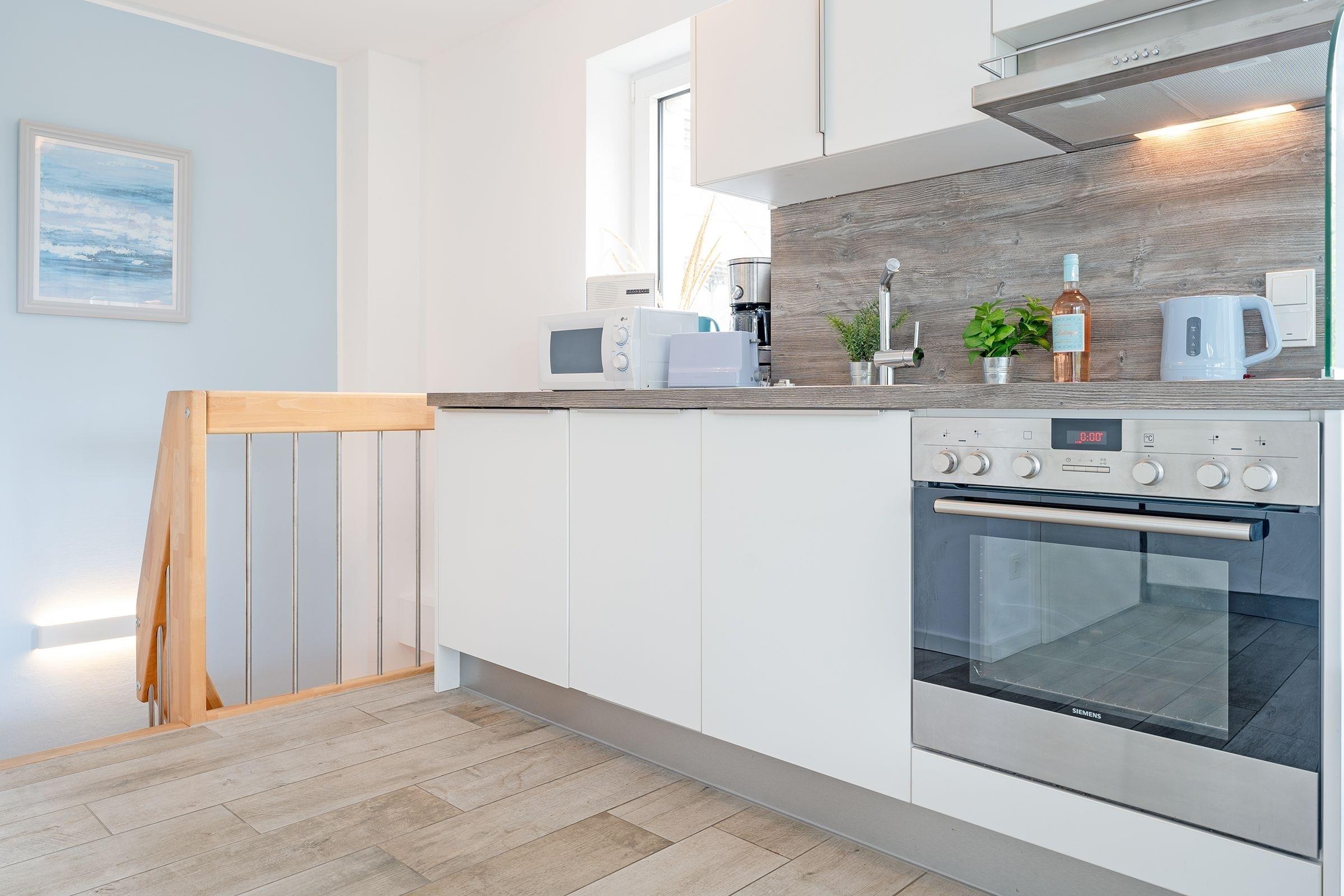 Im Obergeschoss empfängt Sie ein lichtdurchfluteter Wohn- und Schlafbereich. Ihre kleine, aber sehr feine und komplett ausgestattete Küche lässt Herzen selbst ambitionierter Hobbyköche höher schlagen. Ein großzügiger, heller Wohnraum mit gemütlicher Couch und einer Sitzecke lässt keine Wünsche offen. Freuen dürfen Sie sich auf Ihre lauschige Terrasse mit einer Loungecke, die man vom Wohnbereich erreicht. Der erste Kaffee am Morgen, die Tageszeitung in der Hand... Kann ein Morgen besser beginnen? Ihr Schlafbereich wurde optisch raffiniert abgetrennt und dennoch ergibt sich im Ganzen ein einmalig offenes Wohnambiente - Außergewöhnlich schön! Das Doppelbett (2x 80x200 cm) ist fantastisch bequem, freuen Sie sich schon jetzt auf eine erholsame Nachtruhe. Großzügiges Bad mit schöner Dusche ist ein perfekter Start in den Tag! Ihre Wohlfühltemperatur können Sie über das Einstellen der Fußbodenheizung bestimmen. Gardinen und Verdunkelungsplissee schützen vor den ersten Sonnenstrahlen. Im Untergeschoss erwartet Sie ein Schlafzimmer mit einem Einzelbett, welches zu zwei Einzelbetten ausgezogen werden kann.