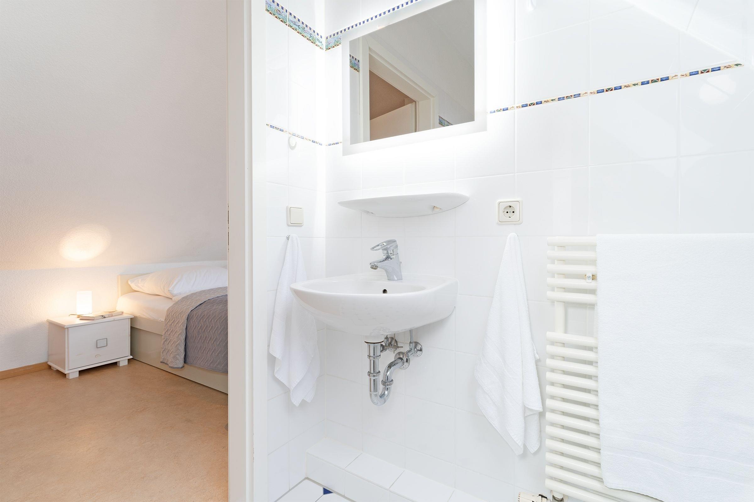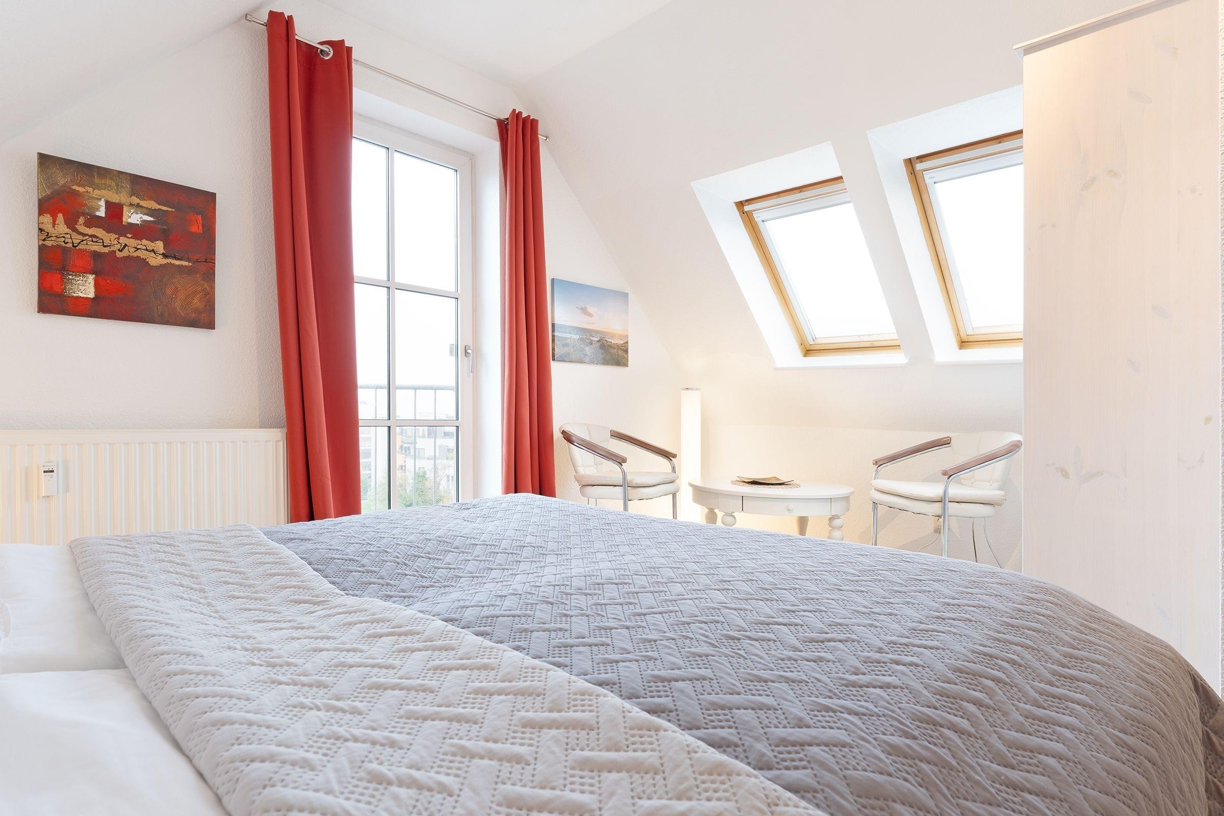 Die Couch lässt sich zu einer Schlafgelegenheit (145x200 cm) verwandeln. Die Scharbeutzer Sonne können Sie auch auf Ihrem Balkon genießen. Für eine angenehme Nachtruhe im Urlaub sorgt das untere Schlafzimmer mit Doppelbett (2x 90x200 cm) sowie ausreichende Ablage- und Staumöglichkeiten. Gleich um die Ecke empfängt Sie ein Tageslichtbad mit Badewanne und WC. Zweites Schlafzimmer ist im Obergeschoss mit Doppelbett (2x80x200cm). Das Platzangebot für Kleidung lässt keine Wünsche offen. Außerdem steht Ihnen hier ein Tageslichtbad mit Dusche, Handtuchheizung und WC zur Verfügung. Von der Küche und Schlafzimmer können Sie entfernt die Ostsee sehen. Gardinen und Jalousien schützen vor den ersten Sonnenstrahlen.