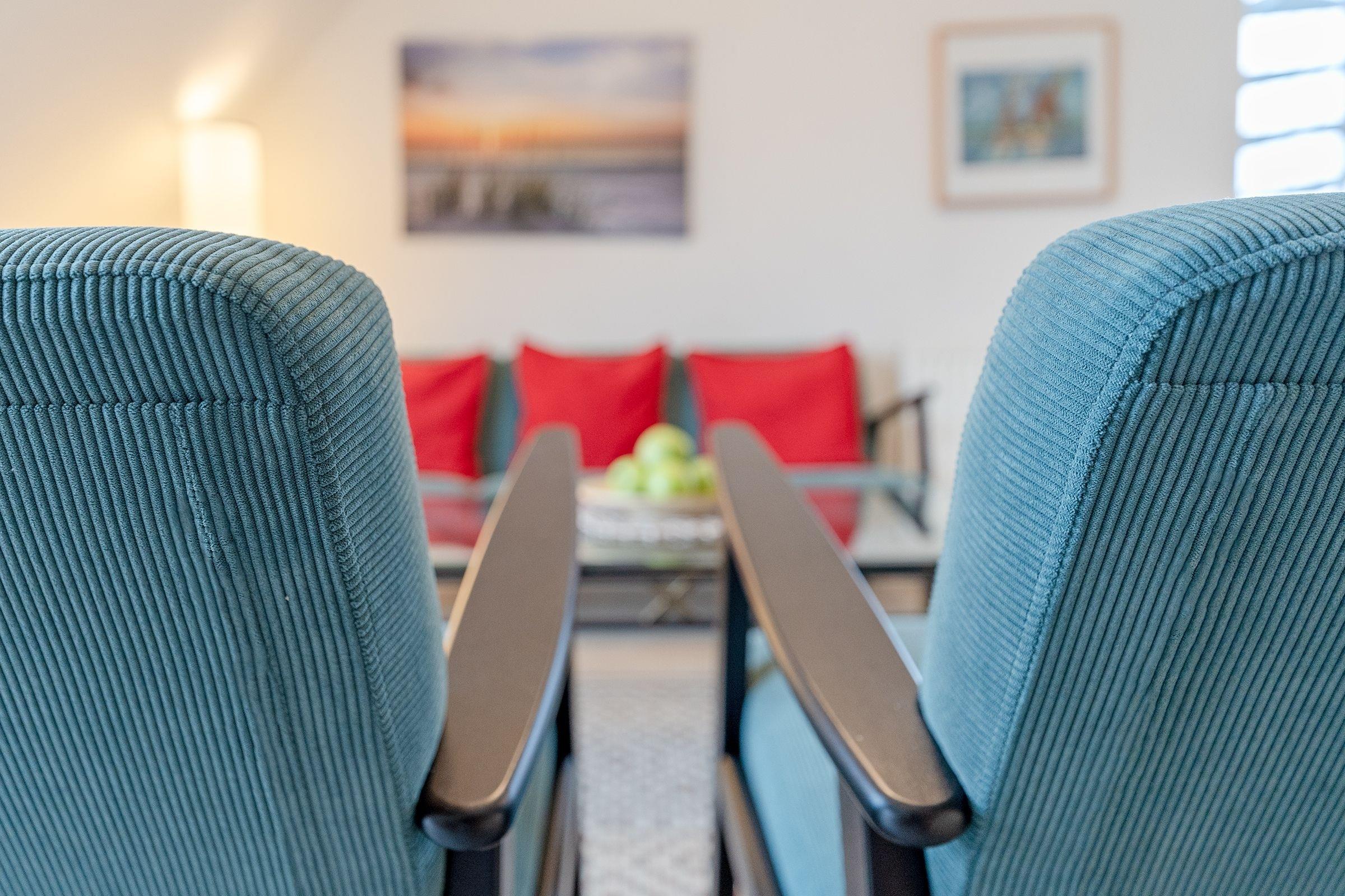 Nur noch einige Stufen trennen Sie von der Eingangstür Ihres Feriendomizils. Tür auf und Sie sind da. Der luftige, helle Wohnraum ist mit seiner offenen Küche und der anschließenden Essgruppe der Mittelpunkt Ihres Feriendomizils für max. 4 Erwachsene.