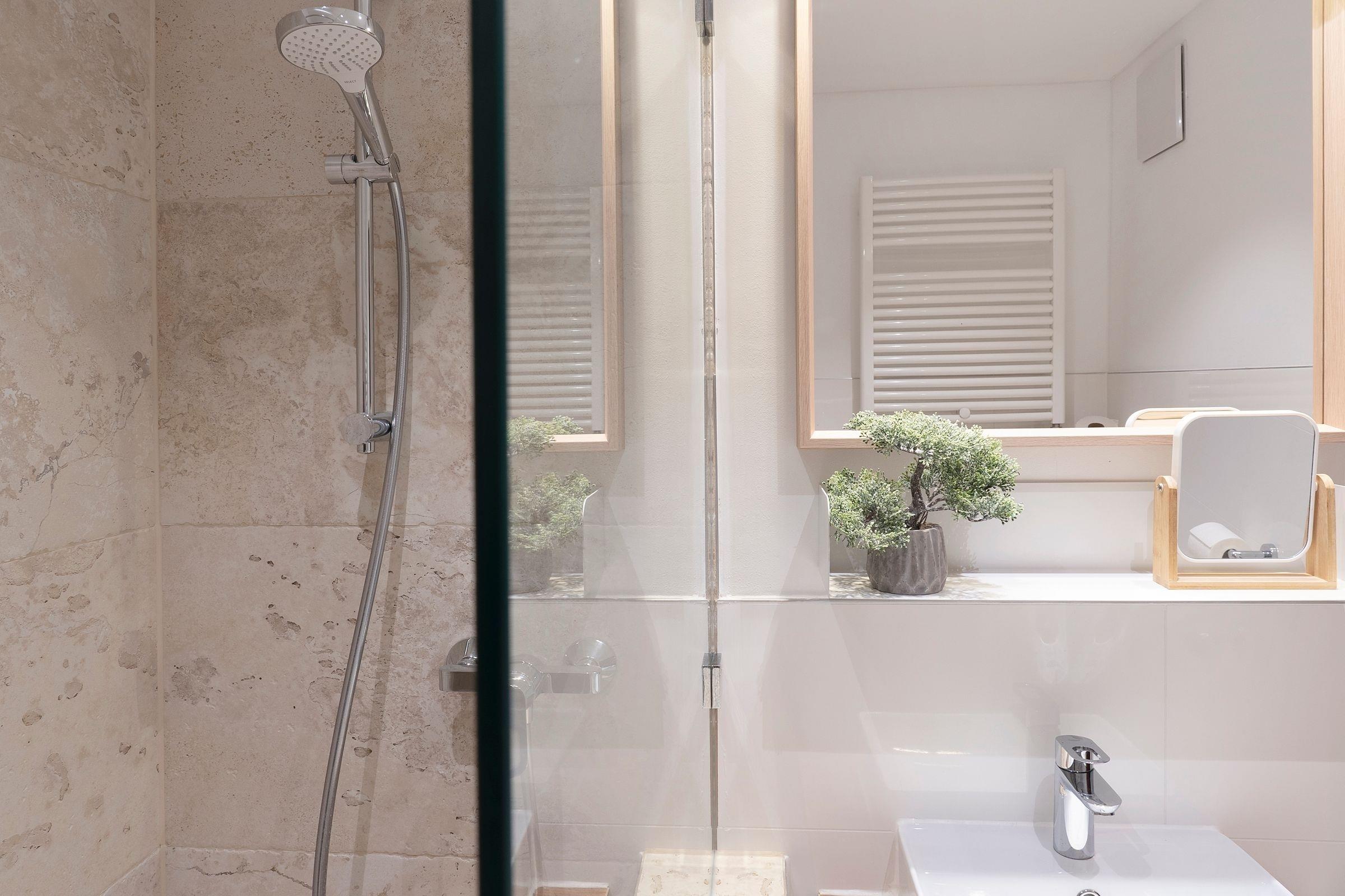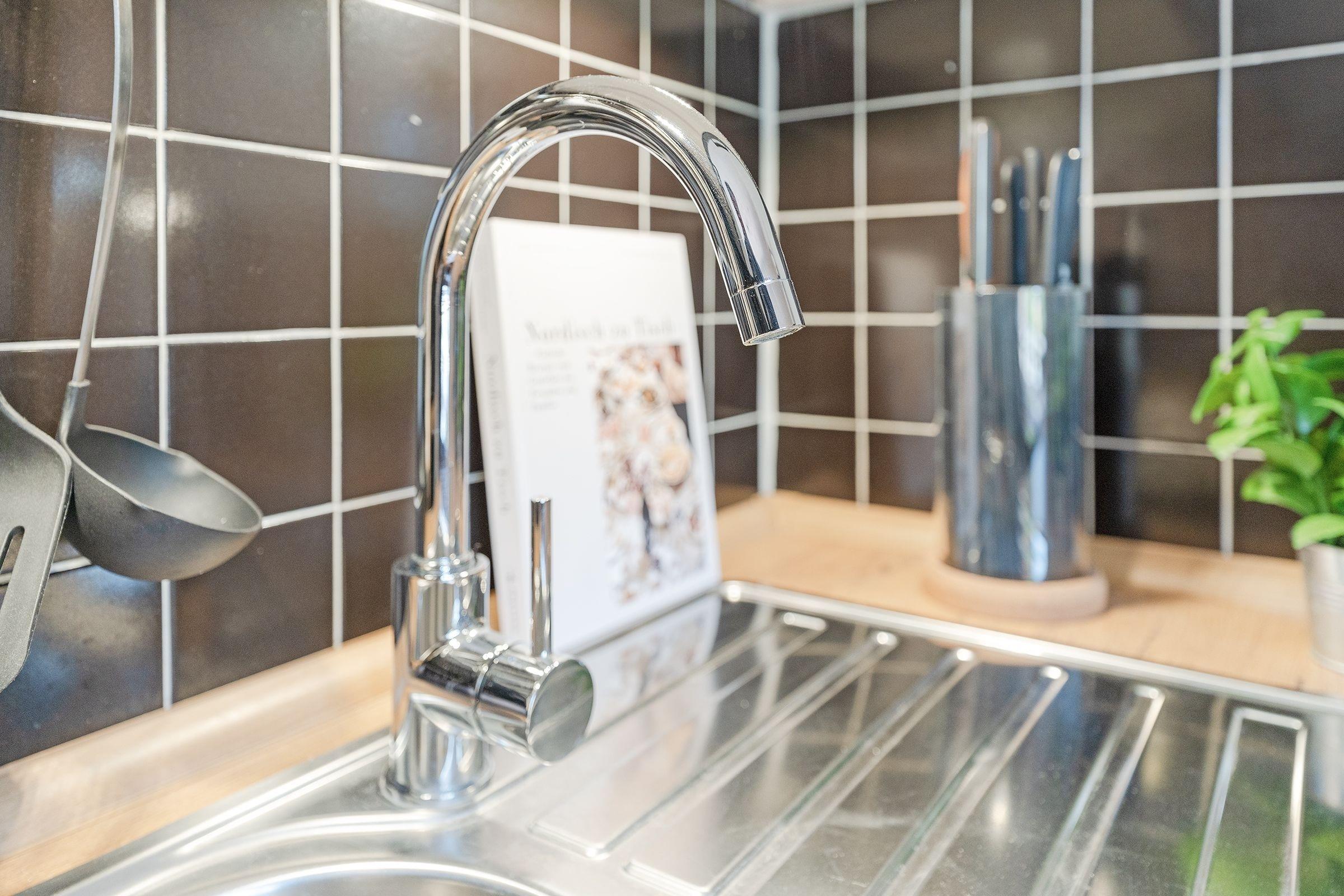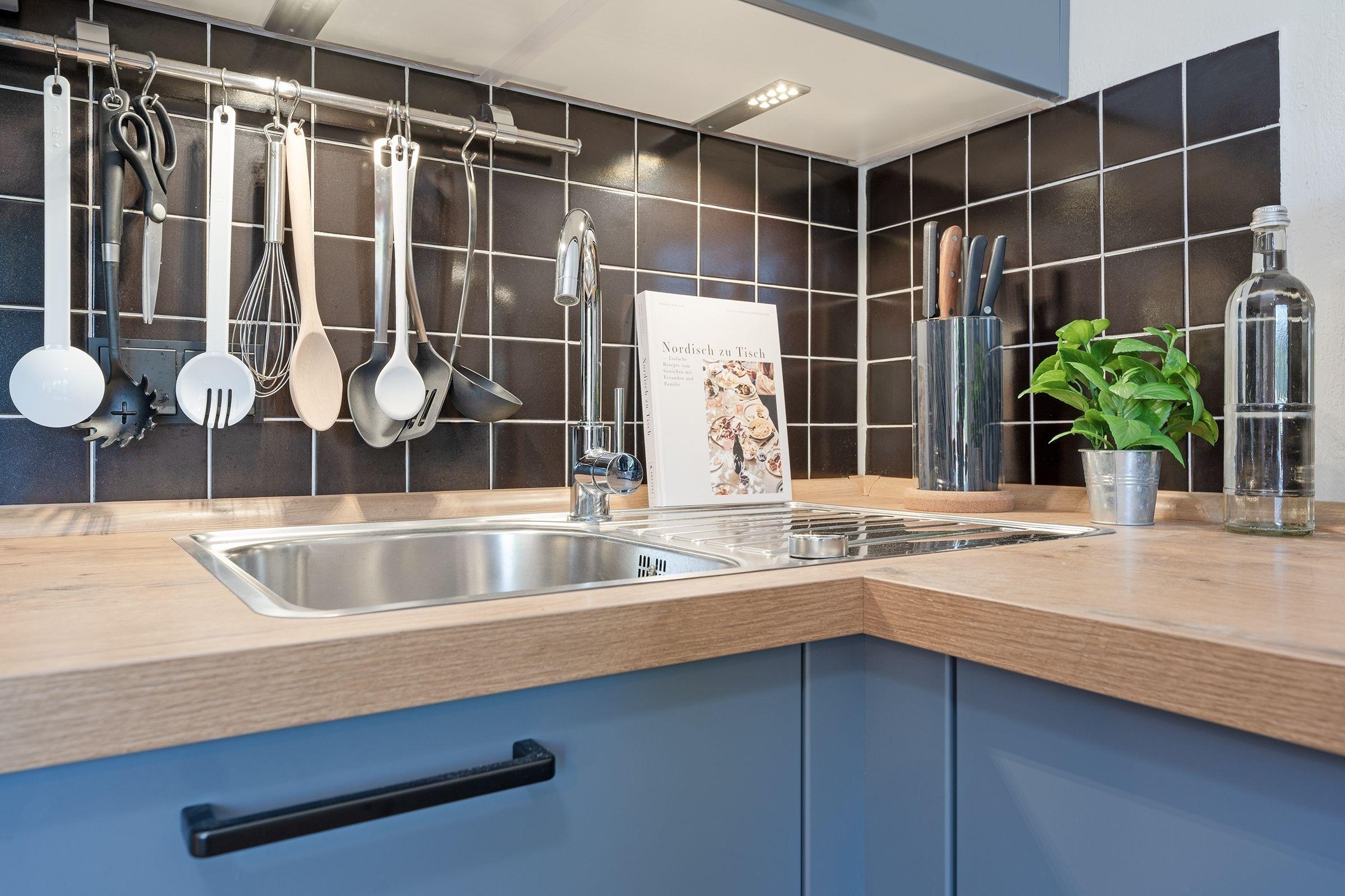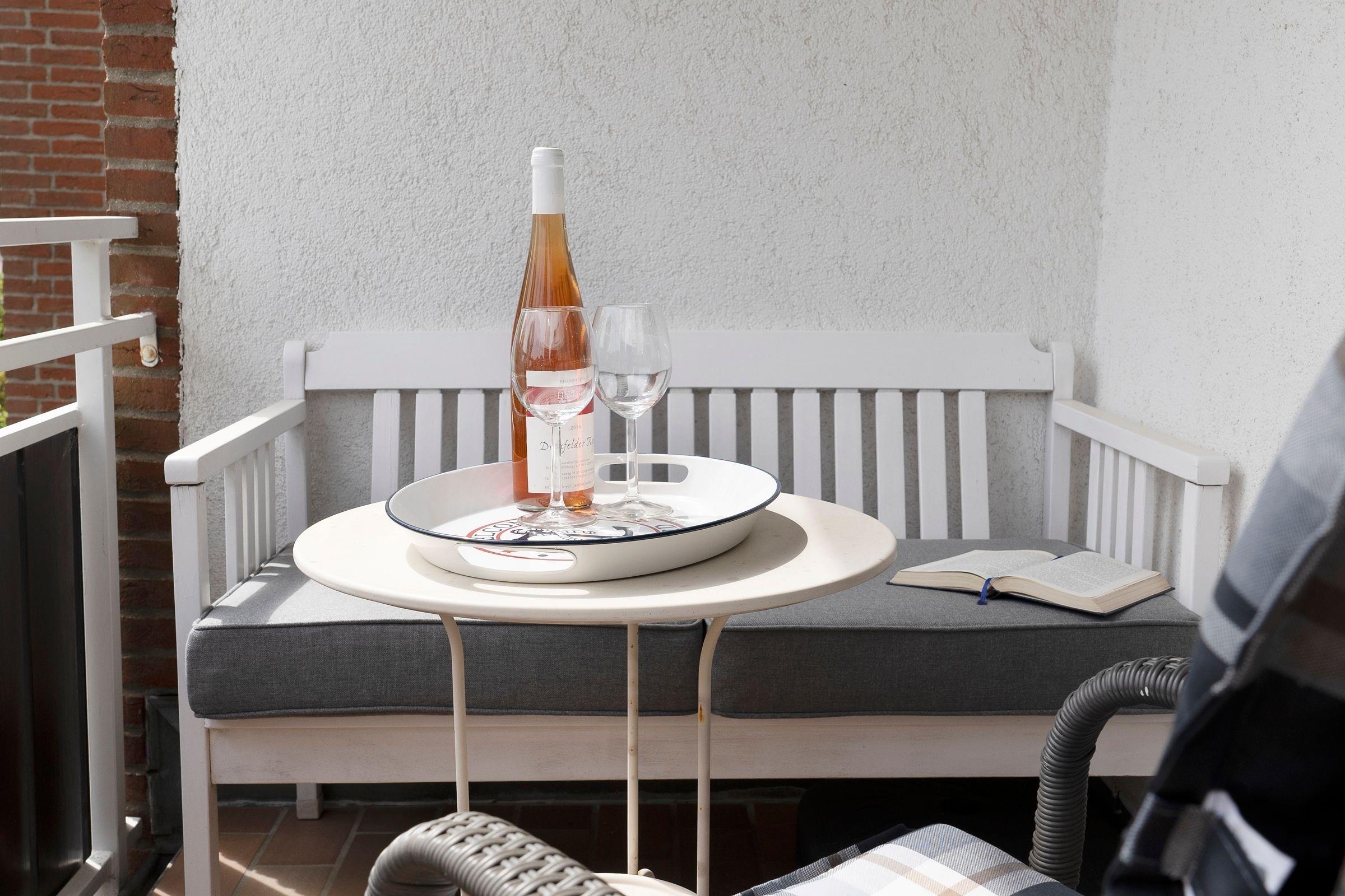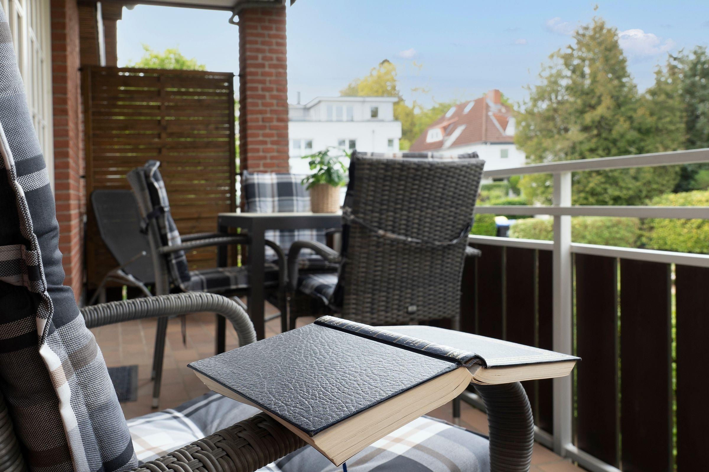 Im Wohnraum befindet sich eine Couch, die bei Bedarf zu einer weiteren Schlafmöglichkeit (140x200 cm) ausgeklappt werden kann, eine Musikanlage und ein Flachbild-TV. Die moderne integrierte Küchenzeile ist mit vielen Annehmlichkeiten ausgestattet, zudem lädt der großzügige Esstisch zu gemeinsamen Mahlzeiten oder Spieleabenden ein. Relaxen Sie auf dem angrenzenden Balkon, nehmen Platz auf den bequemen Gartenmöbeln und lassen Sie den Blick ins Grüne schweifen. Das Schlafzimmer verfügt über ein Doppelbett (2x 90x200 cm), zur Nacht können Sie das Zimmer mit einem Rollo angenehm abdunkeln. Von hier aus gelangen Sie auf den zweiten, kleineren Südost-Balkon, von dem Sie sogar einen Blick auf die Ostsee erhaschen können. Das moderne Duschbad verspricht einen guten Start in den Tag.
