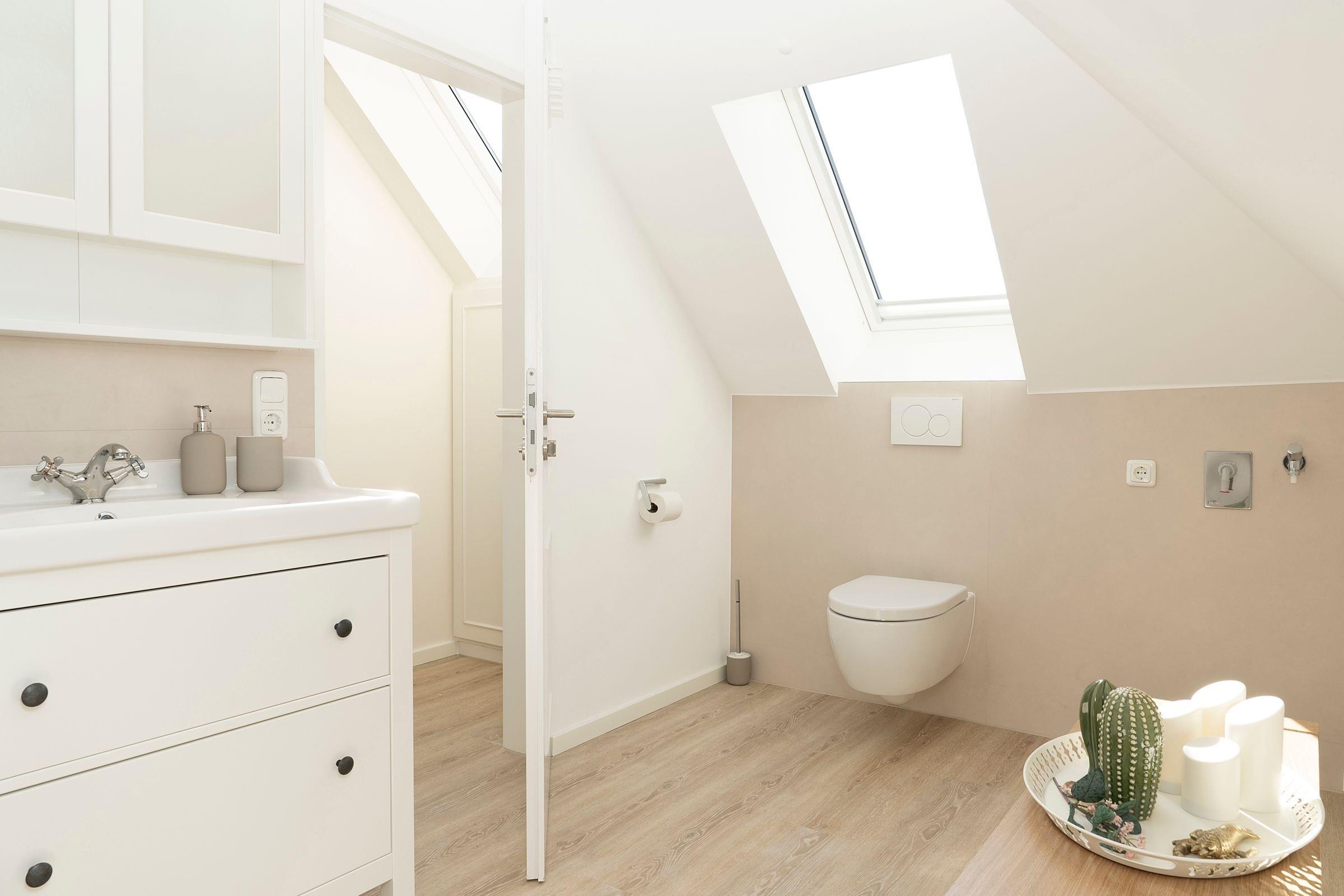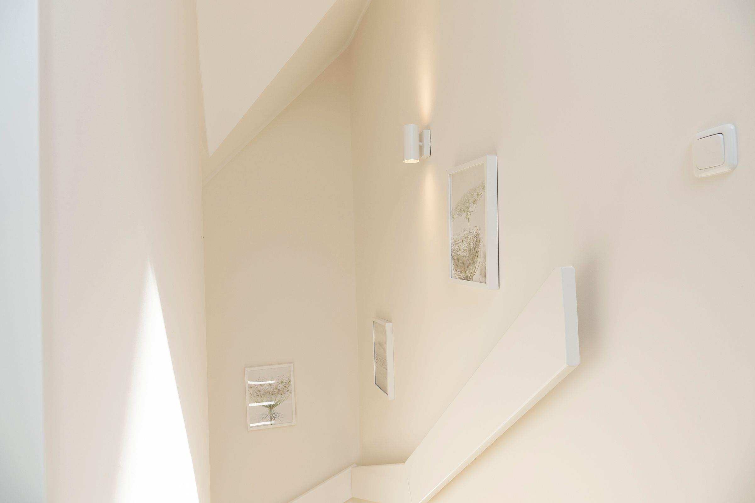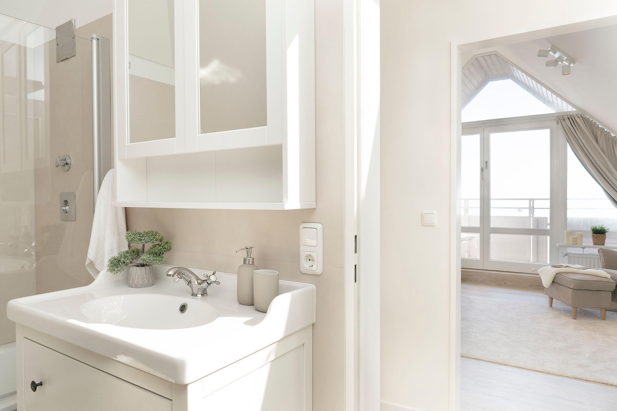 Auf der unteren Wohnebene im 3. Obergeschoss begrüßt Sie ein großzügiger Eingangsflur mit Garderobe. Von hier aus geht es zu den weiteren Räumen, auch ein Gäste-WC ist vorhanden. Das Herzstück der Wohnung ist der lichtdurchflutete Wohnraum mit einem hochwertigem Ecksofa inkl. Schlaffunktion (für 1 Person), TV, sowie integrierter Essecke und moderner Hochglanz-Küchenzeile, die mit Annehmlichkeiten wie einem 4-Platten-Cerankochfeld, Backofen, Gefrierschrank und Spülmaschine begeistert. Vom Wohnzimmer aus gelangen Sie zudem direkt auf einen überdachten und möblierten Balkon, geschützt lässt es sich hier an lauen Sommerabenden wunderbar verweilen. Das separate Schlafzimmer im unteren Wohnbereich ist mit einem bequemem Boxspring-Doppelbett (180x200 cm) sowie einem großzügigem Kleiderschrank ausgestattet und liegt angenehm ruhig zum hinteren Bereich des Hauses. Vom Flur aus führt eine Treppe hoch in die obere Ebene.