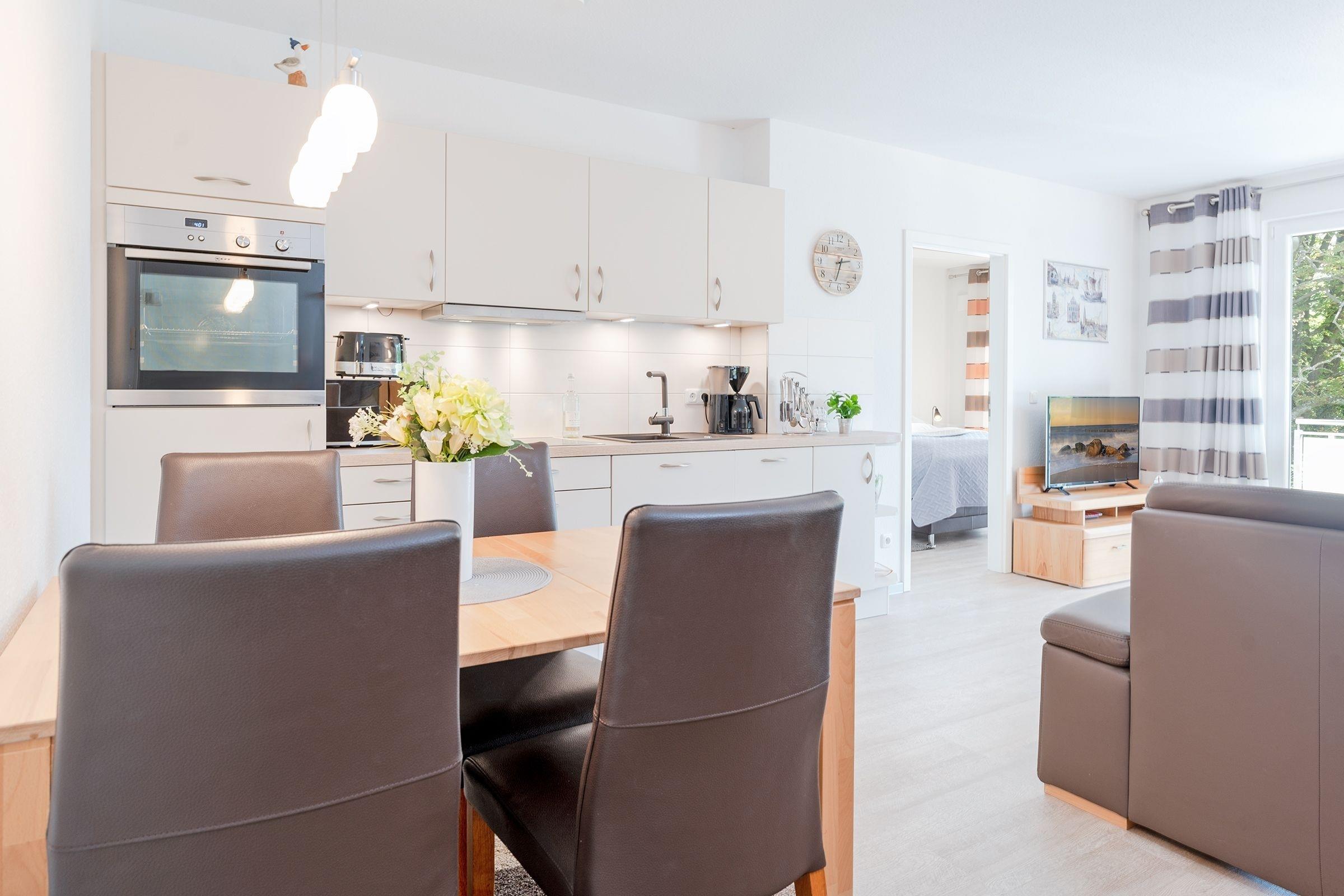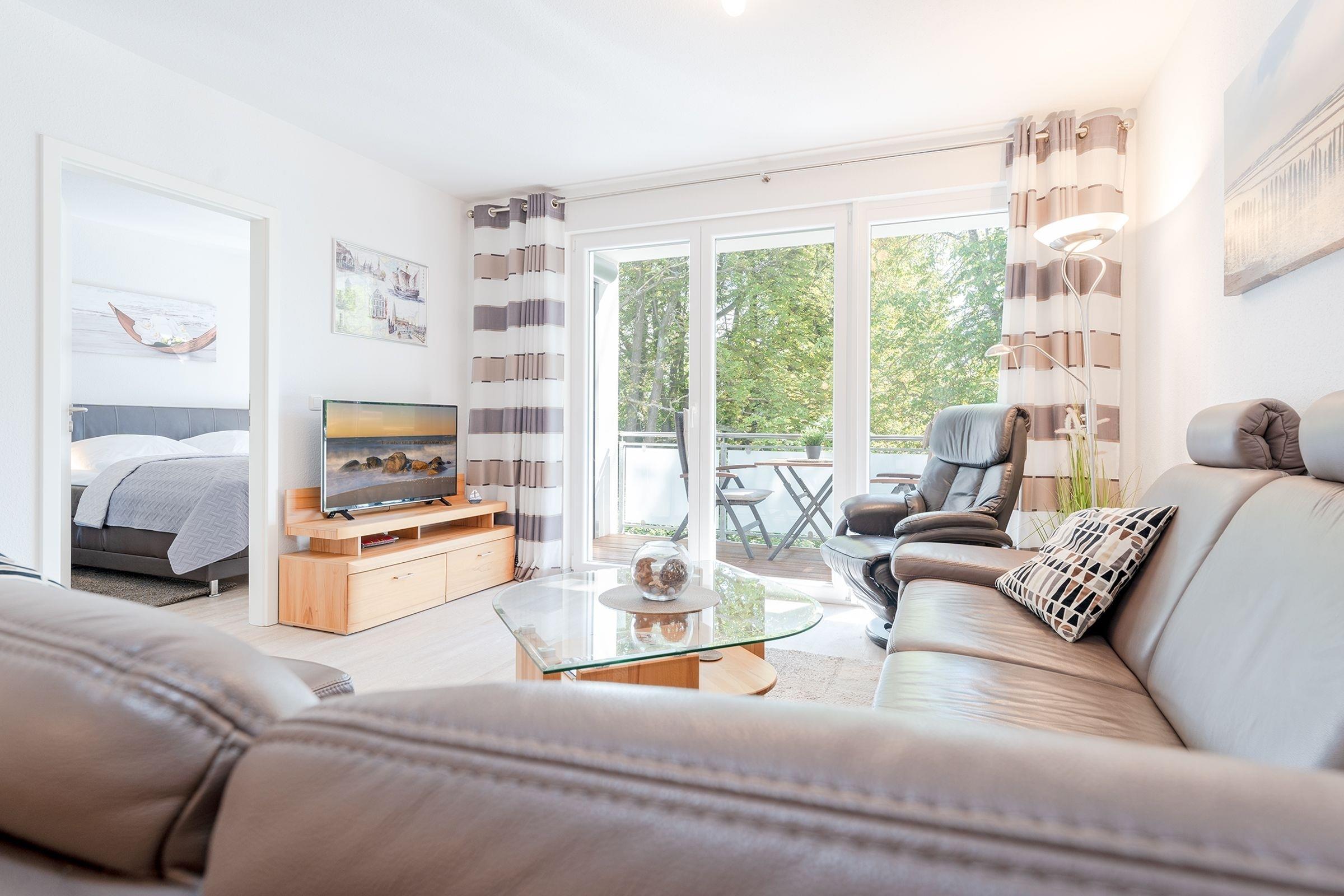 Strand- und zentrumsnah gelegen ist die geschmackvoll eingerichtete ca. 56 m² große 2-Zimmer-Ferienwohnung für 2 Personen und 1 Baby im 2. Stock der Apartmentanlage Augustusbad.