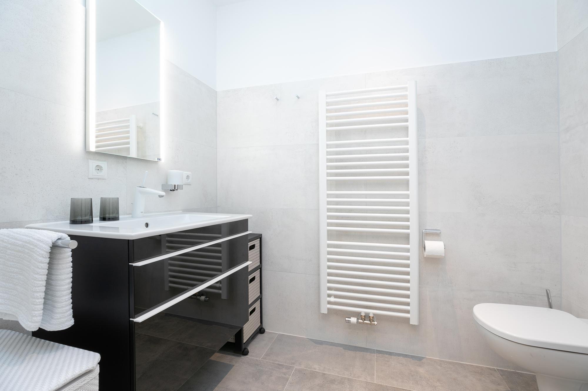 Das Herzstück dieses Domizils bildet der offene Wohnbereich, hier lassen sich erholsame Stunden zum Lesen oder Fernsehen auf dem Sofa verbringen. Eine automatische Belüftung sorgt für ein ausgeglichenes Klima. Zur Nachtruhe können Sie ziehen Sie sich ins separate Schlafzimmer mit modernem Boxspringbett (2x90x200cm) zurückziehen, die gesamte Wohnung lässt sich über Außenjalousien verdunkeln. Sollte es erforderlich sein, besteht die Möglichkeit auf das Schlafsofa ins Wohnzimmer auszuweichen. Eine offene Küche mit 4-Platten-Ceran Kochfeld mit integrierter Dunstabzugshaube, Mikrowellen-/Backofenkombi, Spülmaschine, Kühlschrank, Gefrierfach, Kaffeemaschine, Toaster und Wasserkocher bietet alles für den begeisterten Hobbykoch. Die Fußbodenheizung im Badezimmer sorgt für wohligen Komfort, die bodentiefe Dusche, Handtuchheizung und ein Fön komplettieren die Ausstattung. Ein Abstellraum mit Garderobenschrank verschafft zusätzlichen Stauraum. Ihre Tasse frischen Morgenkaffee können Sie auf dem 12 m² großen möblierten überdachten Eckbalkon genießen.