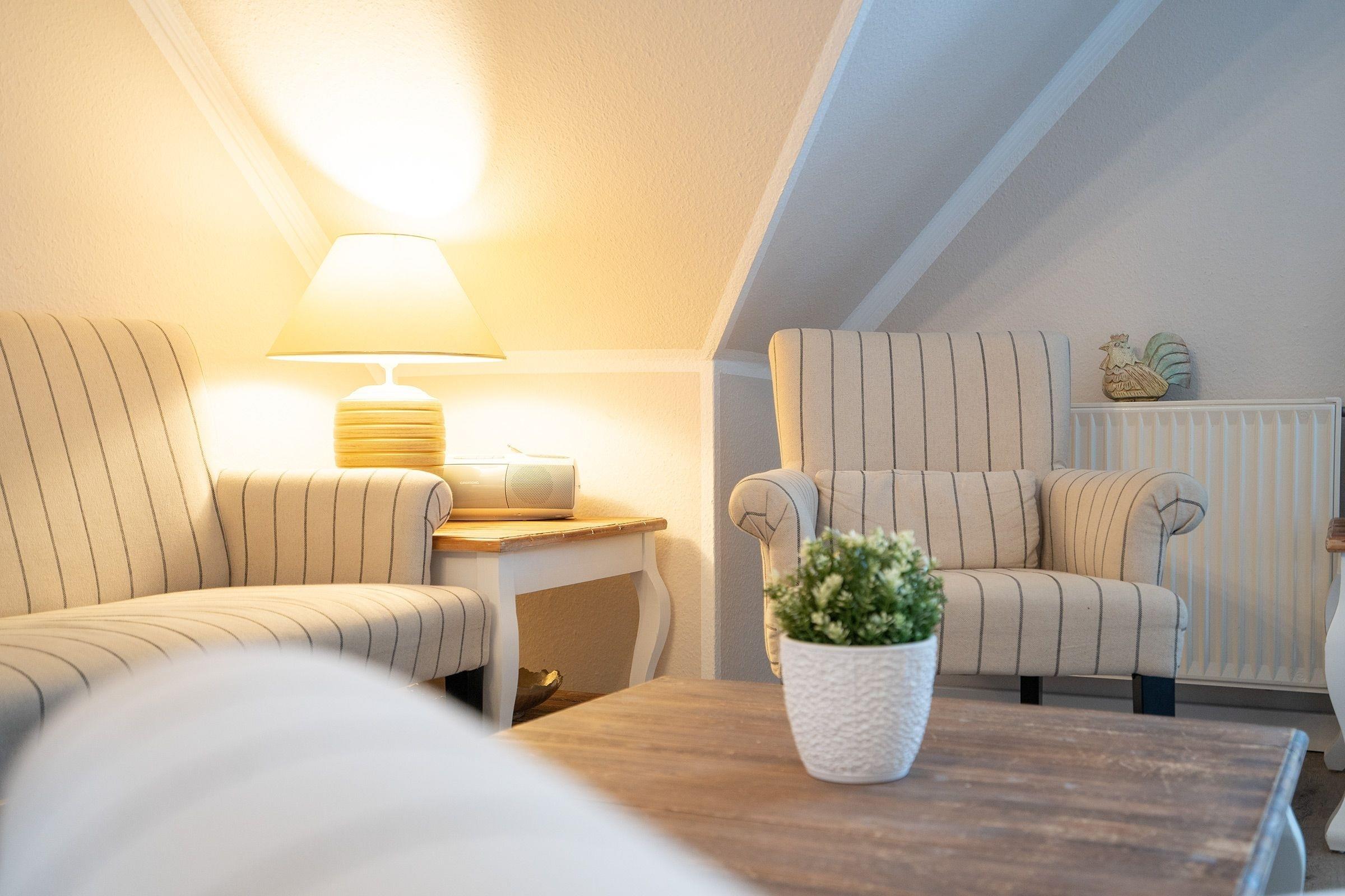 Die Ferienwohnung verfügt über 3 Zimmer auf 2 Ebenen und bietet auf ca. 54m² Platz für bis zu 4 Personen.