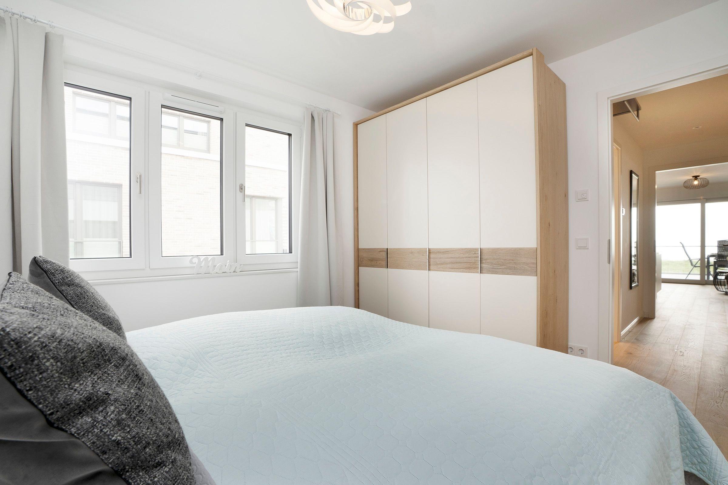 Schlafzimmer: 1 Doppelbett (2x 90x200 cm), Kleiderschrank, Verdunkelungsmöglichkeit