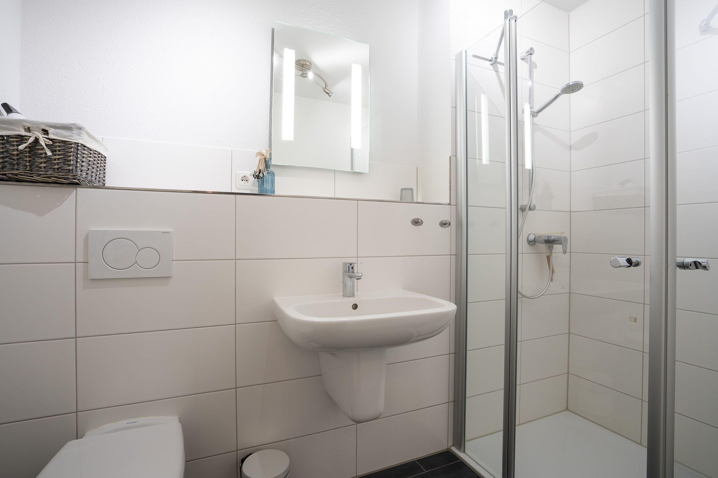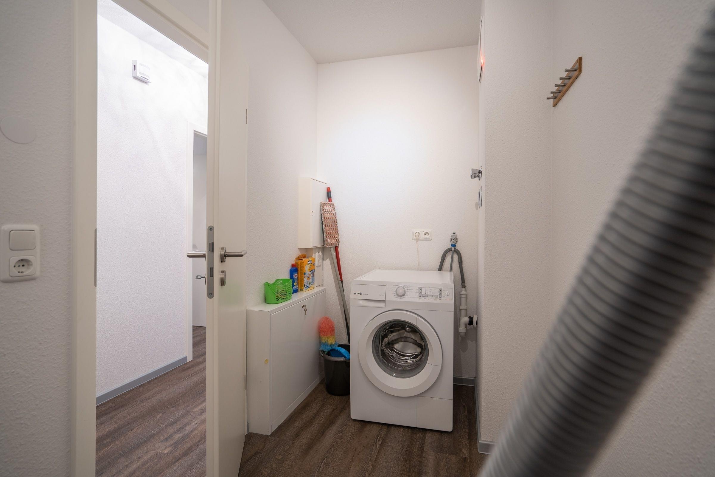 Ein PKW-Tiefgaragenstellplatz (Maße: 500x220 cm, Durchfahrtshöhe 2,10 m) ist für Sie reserviert. Eine Waschmaschine steht Ihnen zur Eigennutzung kostenfrei zur Verfügung. Für mitgebrachte Fahrräder ist ein gemeinschaftlich genutzter, abschließbarer Abstellraum in der Tiefgarage vorgesehen.