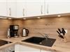 Ein modern eingerichteter Wohnraum empfängt Sie und bietet mit einem Schlafsofa (120x200 cm), sowie einer offenen und voll ausgestatteten Küchenzeile einen schönen Mittelpunkt in Ihrem Feriendomizil. Auf dieser Wohnebene haben Sie auch einen direkten Zugang zum möblierten Balkon mit uneingeschränktem Meerblick. In der oberen Etage finden Sie das Schlafzimmer, das mit einem TV, einem gemütlichen Boxspringbett (180x200 cm) und genügend Platz für ein Kinderbett keine Wünsche offen lässt. Das Bad en Suite verspricht u.a. durch die bodengleiche Dusche, sowie die angenehme Fußbodenheizung einen Urlaub mit Komfort.