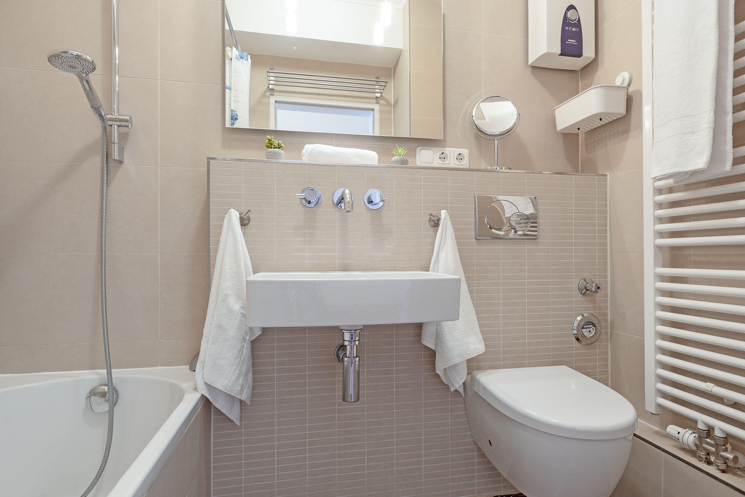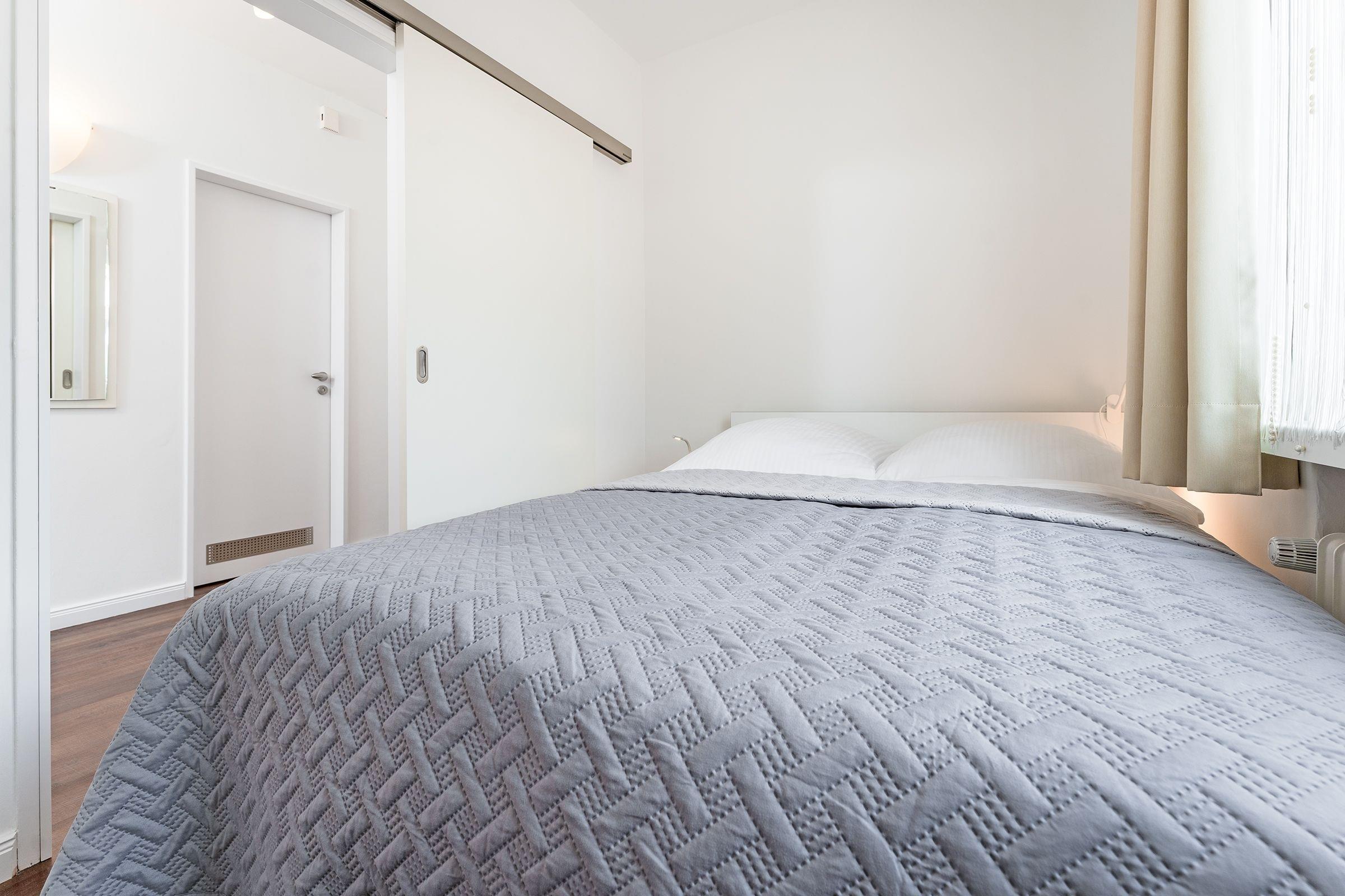 Angenehme Träume verspricht das bequeme Doppelbett (140x200 cm) im separaten Schlafzimmer. Das hell geflieste Badezimmer ist mit einer Badewanne inkl. Duschfunktion, Föhn sowie beheizbarem Handtuchhalter ausgestattet. Ein Flachbild-TV und der WLAN-Anschluss sorgen für ausreichend Unterhaltung.