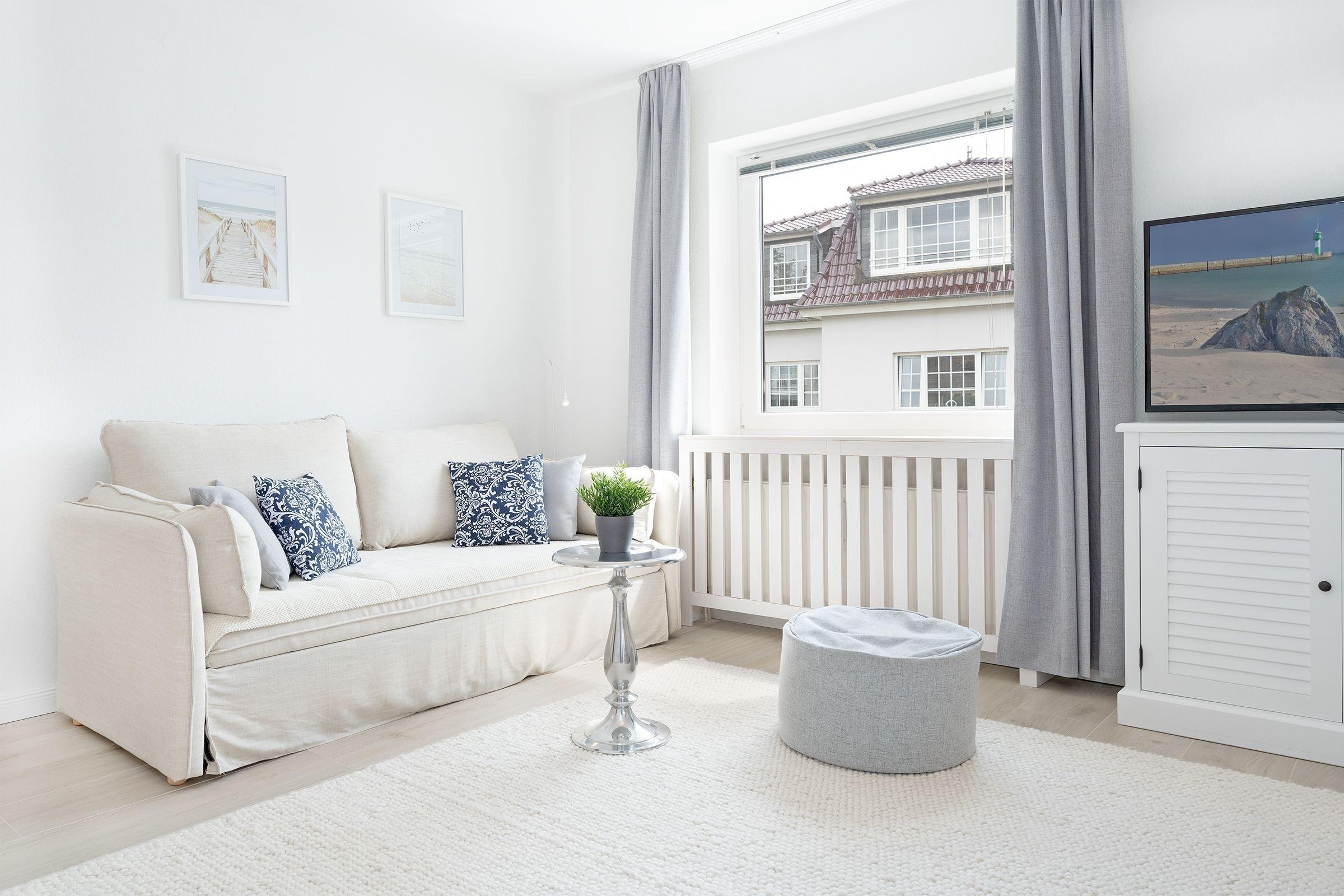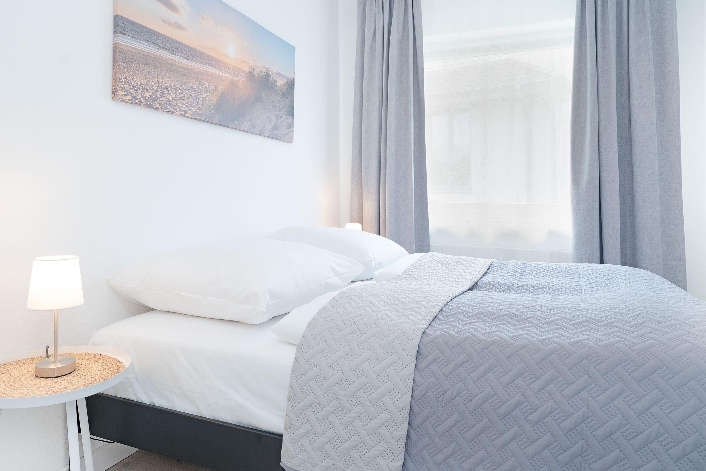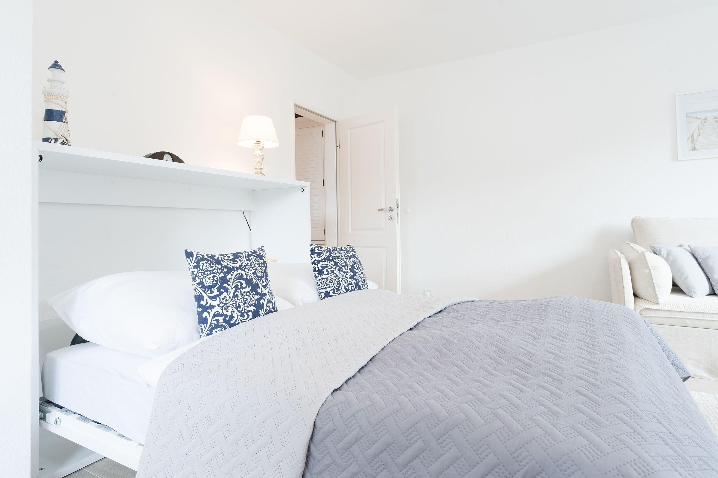 Ihr Urlaubsdomizil lässt mit einem hellen Wohnbereich und liebevoller Ausstattung keine Wünsche offen: neben dem Essplatz, der bequemen Couch, einem Flat-TV samt MagentaTV und Disney Plus sorgen auch ein Radio sowie eine High-End-Musikanlage inkl. Apple Airplay für eine rundum gelungene Auszeit. Im Wohnbereich befindet sich auch das praktische Schrankbett, das sich zur Nacht in einen Schlafplatz (150x200 cm) verwandeln lässt. Entspannen Sie tagsüber im XXL-Strandkorb auf dem teilüberdachten Balkon und genießen Sie geschützt die frische Ostseeluft. In der perfekt ausgestatteten Küche geht Ihnen das Zubereiten Ihrer Urlaubsmahlzeiten ganz sicher spielend von der Hand. Erholsam nächtigen können Sie auch im separaten Schlafzimmer mit einem Doppelbett (180x200 cm), einem weiteren TV sowie einem Kleiderschrank. Verbinden Sie ganz einfach Arbeit und Urlaub, indem Sie den Klapptisch für Workation-Tätigkeiten nutzen. Nach einer erholsamen Nacht können Sie sich im modernen Badezimmer auf eine erfrischende Regendusche freuen.