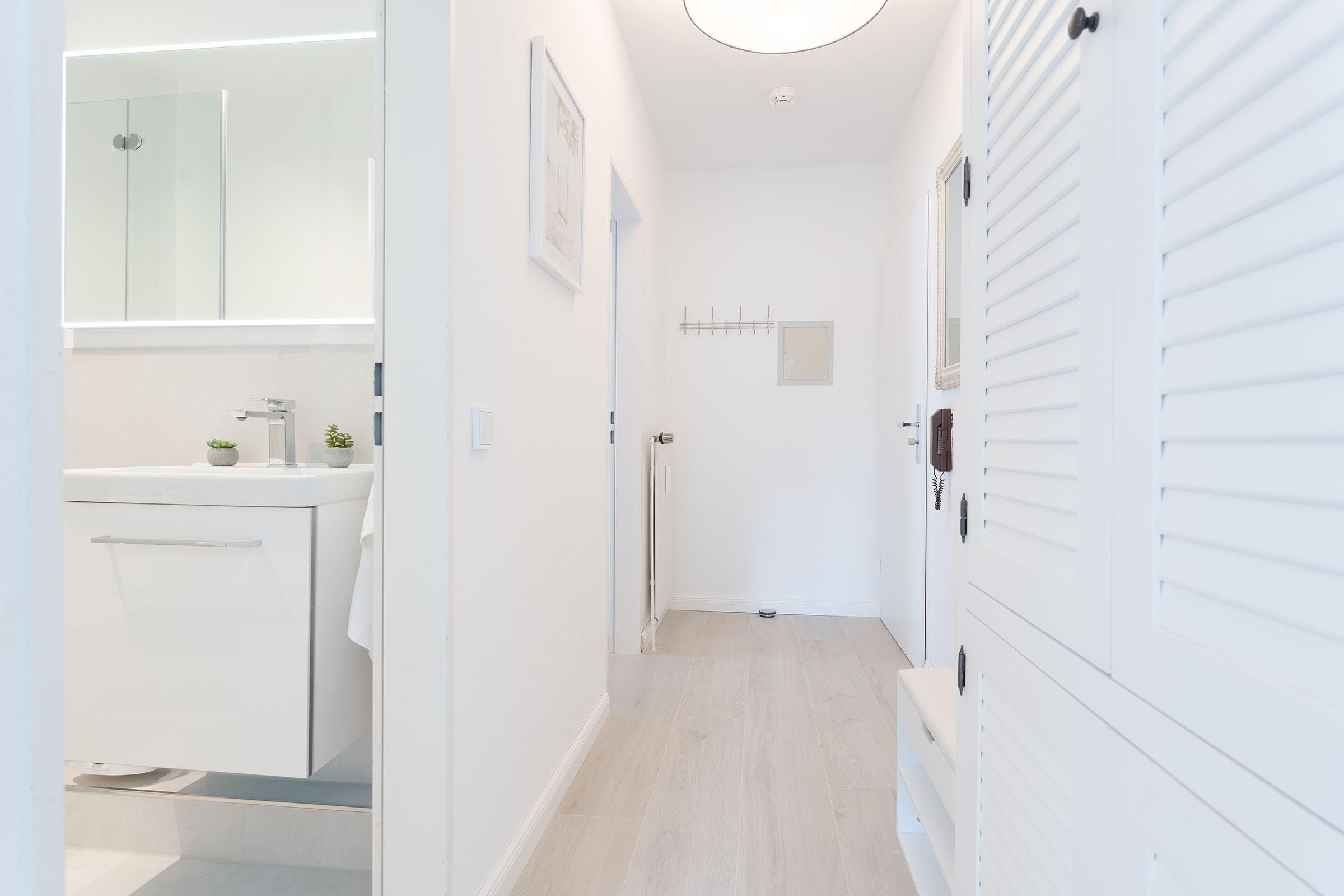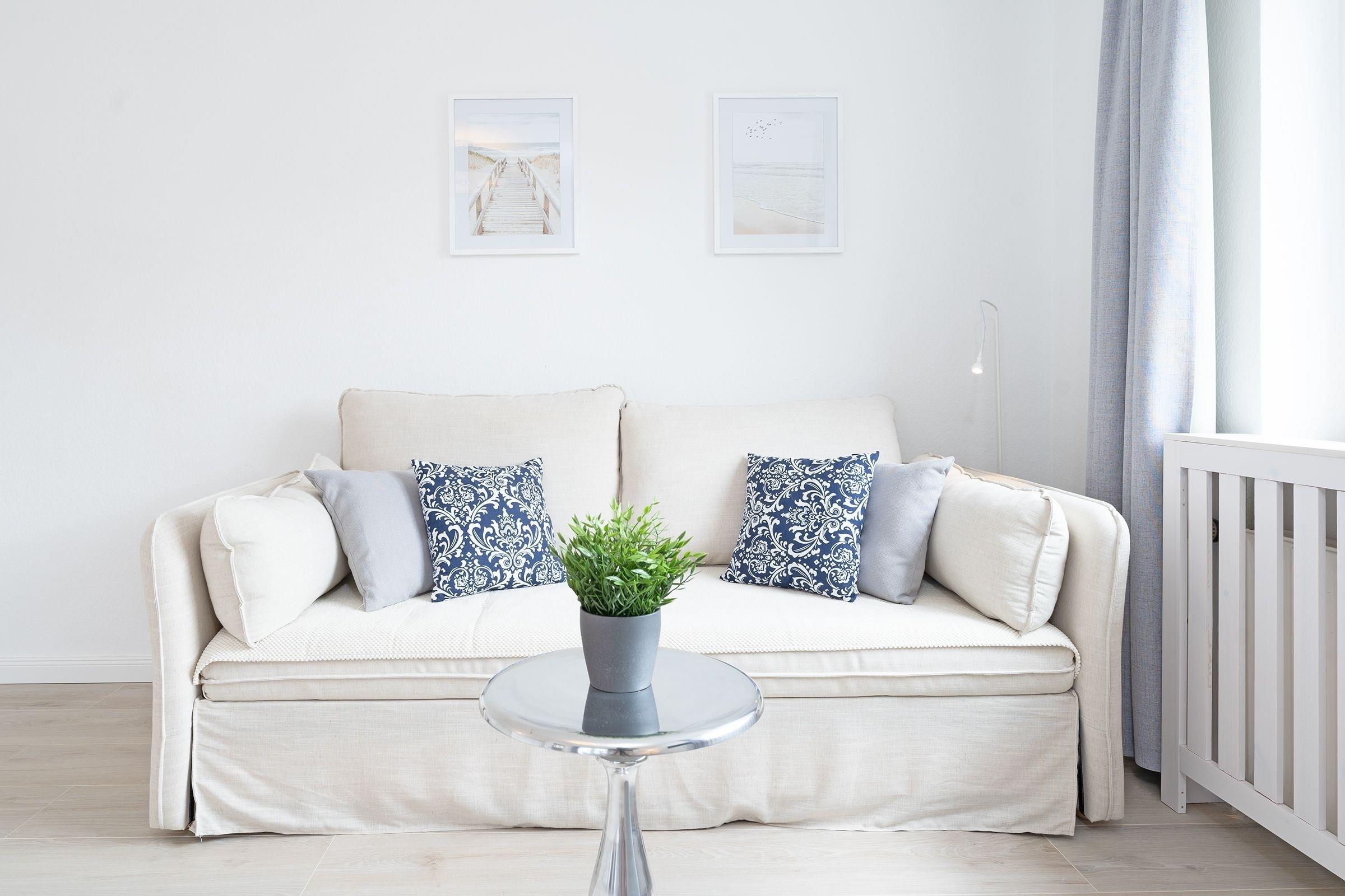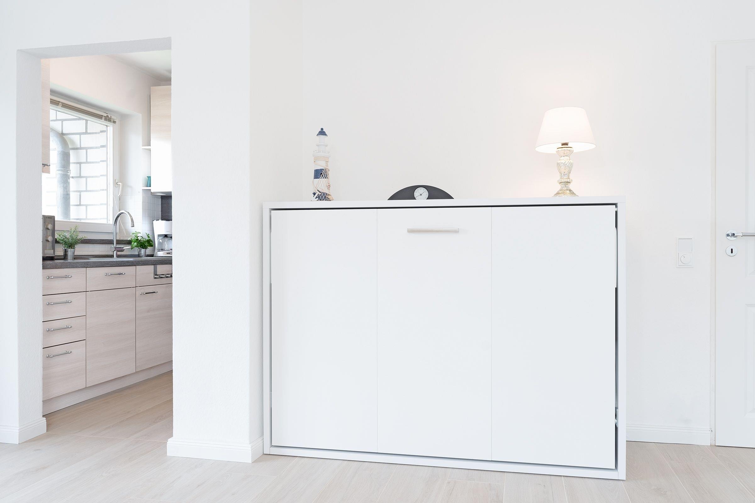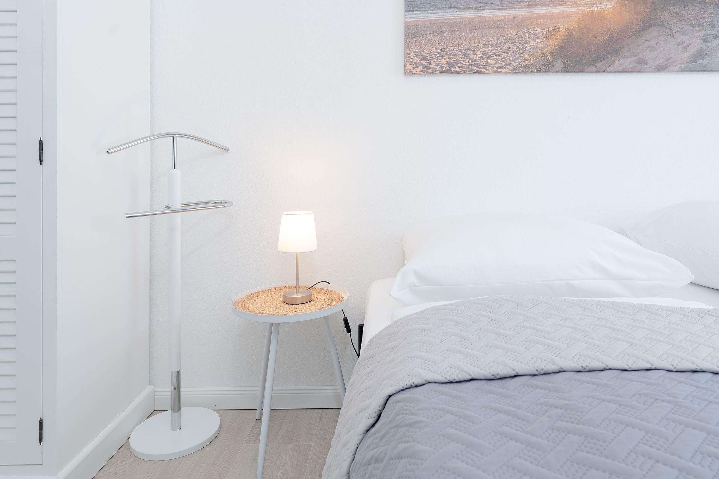 Ihr Urlaubsdomizil lässt mit einem hellen Wohnbereich und liebevoller Ausstattung keine Wünsche offen: neben dem Essplatz, der bequemen Couch, einem Flat-TV samt MagentaTV und Disney Plus sorgen auch ein Radio sowie eine High-End-Musikanlage inkl. Apple Airplay für eine rundum gelungene Auszeit. Im Wohnbereich befindet sich auch das praktische Schrankbett, das sich zur Nacht in einen Schlafplatz (150x200 cm) verwandeln lässt. Entspannen Sie tagsüber im XXL-Strandkorb auf dem teilüberdachten Balkon und genießen Sie geschützt die frische Ostseeluft. In der perfekt ausgestatteten Küche geht Ihnen das Zubereiten Ihrer Urlaubsmahlzeiten ganz sicher spielend von der Hand. Erholsam nächtigen können Sie auch im separaten Schlafzimmer mit einem Doppelbett (180x200 cm), einem weiteren TV sowie einem Kleiderschrank. Verbinden Sie ganz einfach Arbeit und Urlaub, indem Sie den Klapptisch für Workation-Tätigkeiten nutzen. Nach einer erholsamen Nacht können Sie sich im modernen Badezimmer auf eine erfrischende Regendusche freuen.