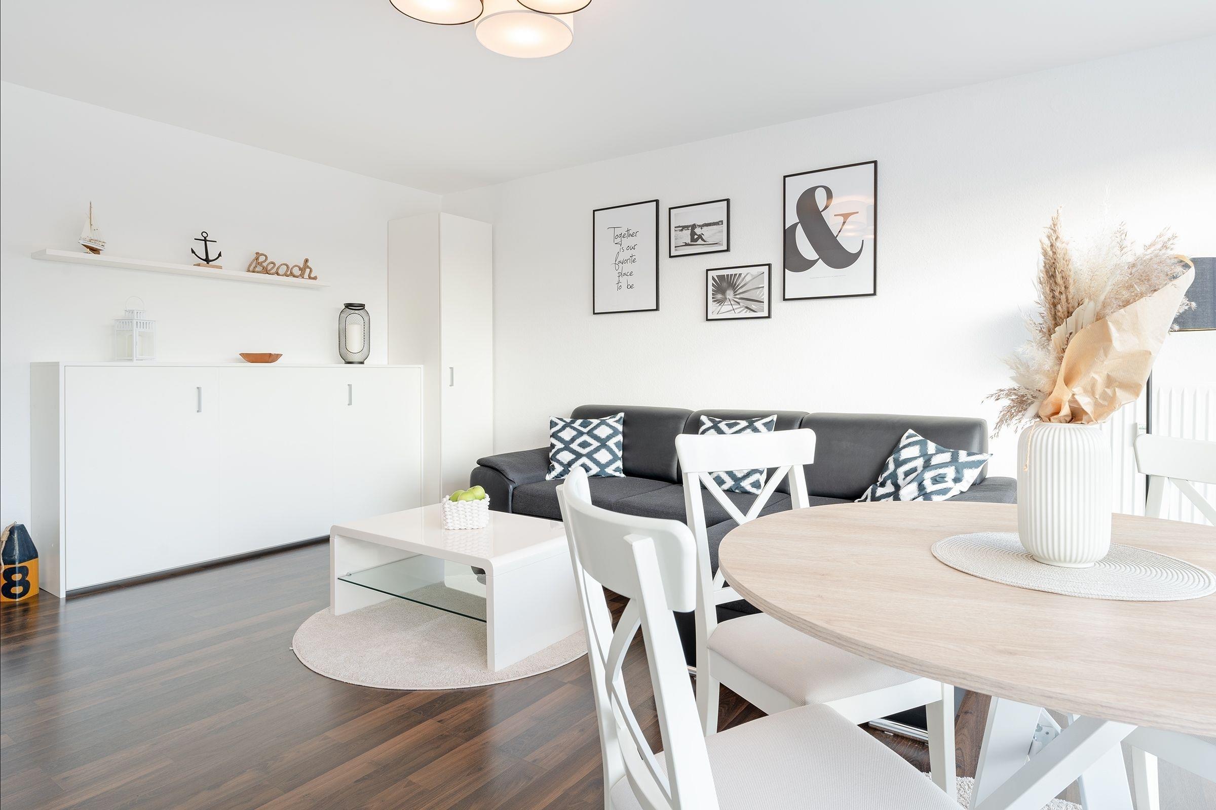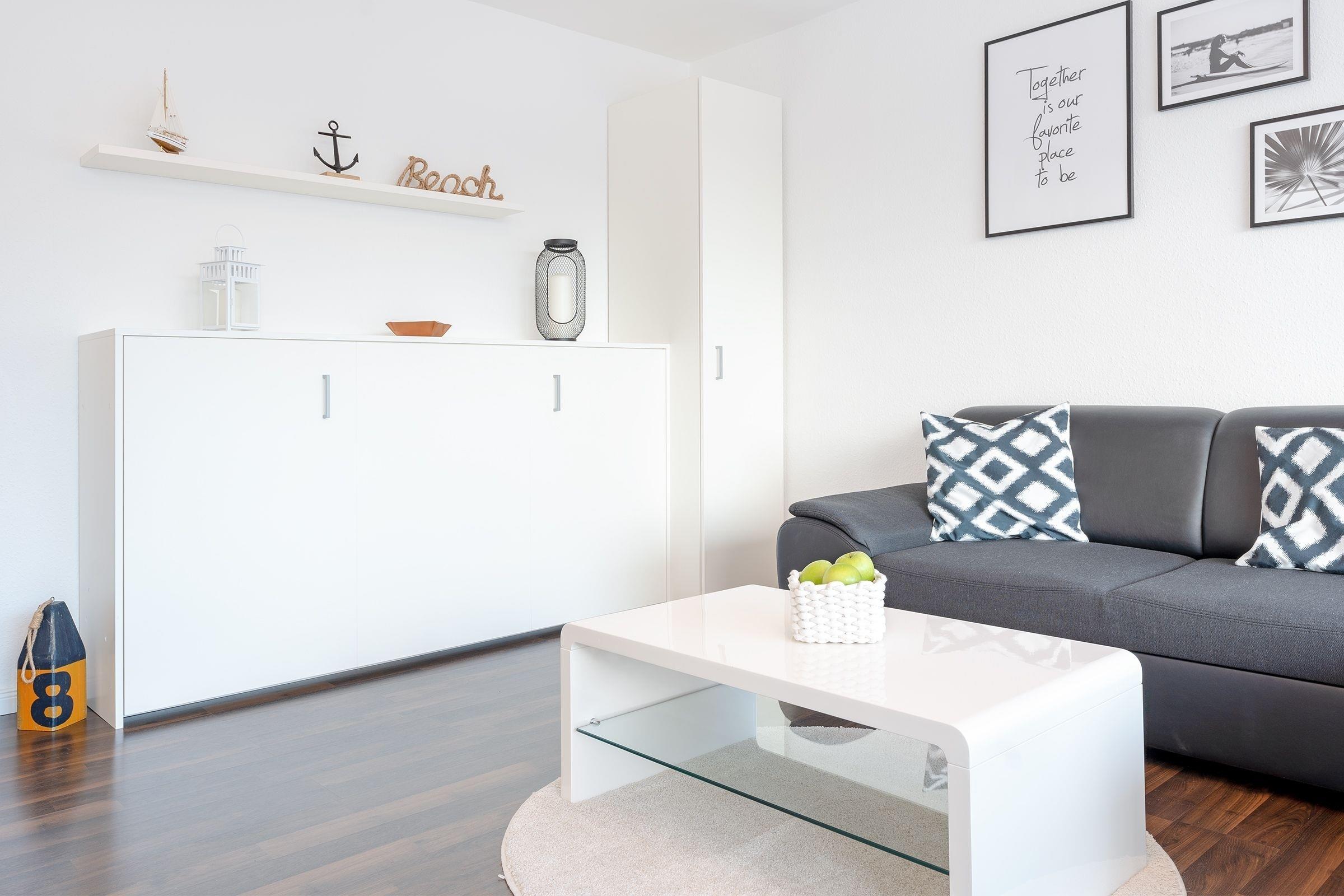 Stylisch und edel präsentiert sich die Ferienwohnung Bude 7 in der schönen Wohnanlage Alte Bergstraße 11 – nur rund 200 Meter vom Ostseestrand entfernt. Der Wohnbereich besticht durch eine gemütliche Sitzecke und einen Esstisch an der Fensterfront. Treten Sie direkt hinaus und genießen Sie die Seeluft auf dem möblierten Balkon. Die Auszeit haben Sie sich wirklich verdient. In der separaten, gut ausgestatteten Küche wartet eine Nespresso-Maschine auf ihren Einsatz. Nach einem sonnigen Strandtag können Sie sich mit der Playstation 4 noch ein wenig die Zeit vertreiben. Wunderbar schlafen werden Sie wahlweise im Doppelbett (140x200 cm) im kuscheligen Schlafzimmer oder im bequemen Schrankbett (90x200 cm) im Wohnbereich. Das moderne Duschbad ist hell gefliest und bringt Sie entspannt in den neuen Tag.