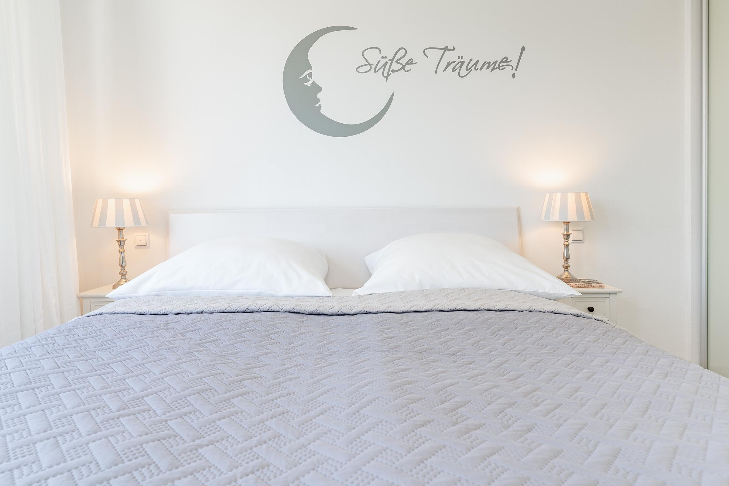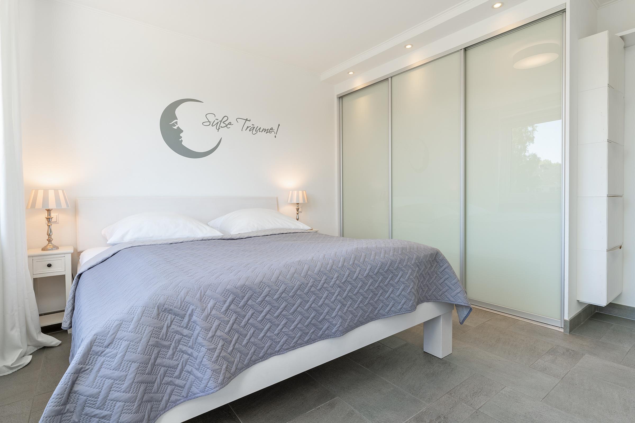 Schlafzimmer 1: 1 Doppelbett (2x 90x200cm), Kleiderschrank, Verdunkelung: Außenrollläden, Platz für Babybett