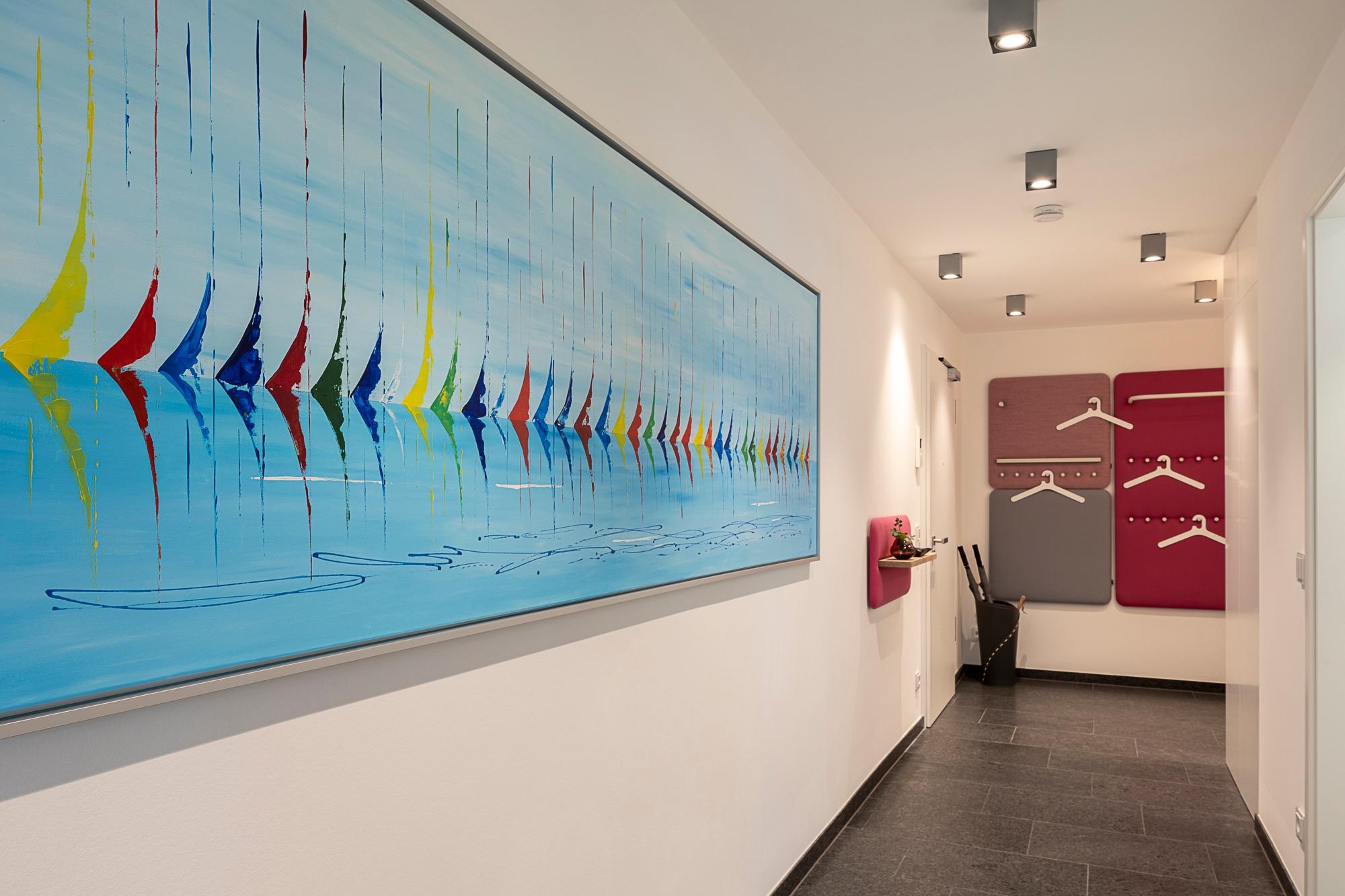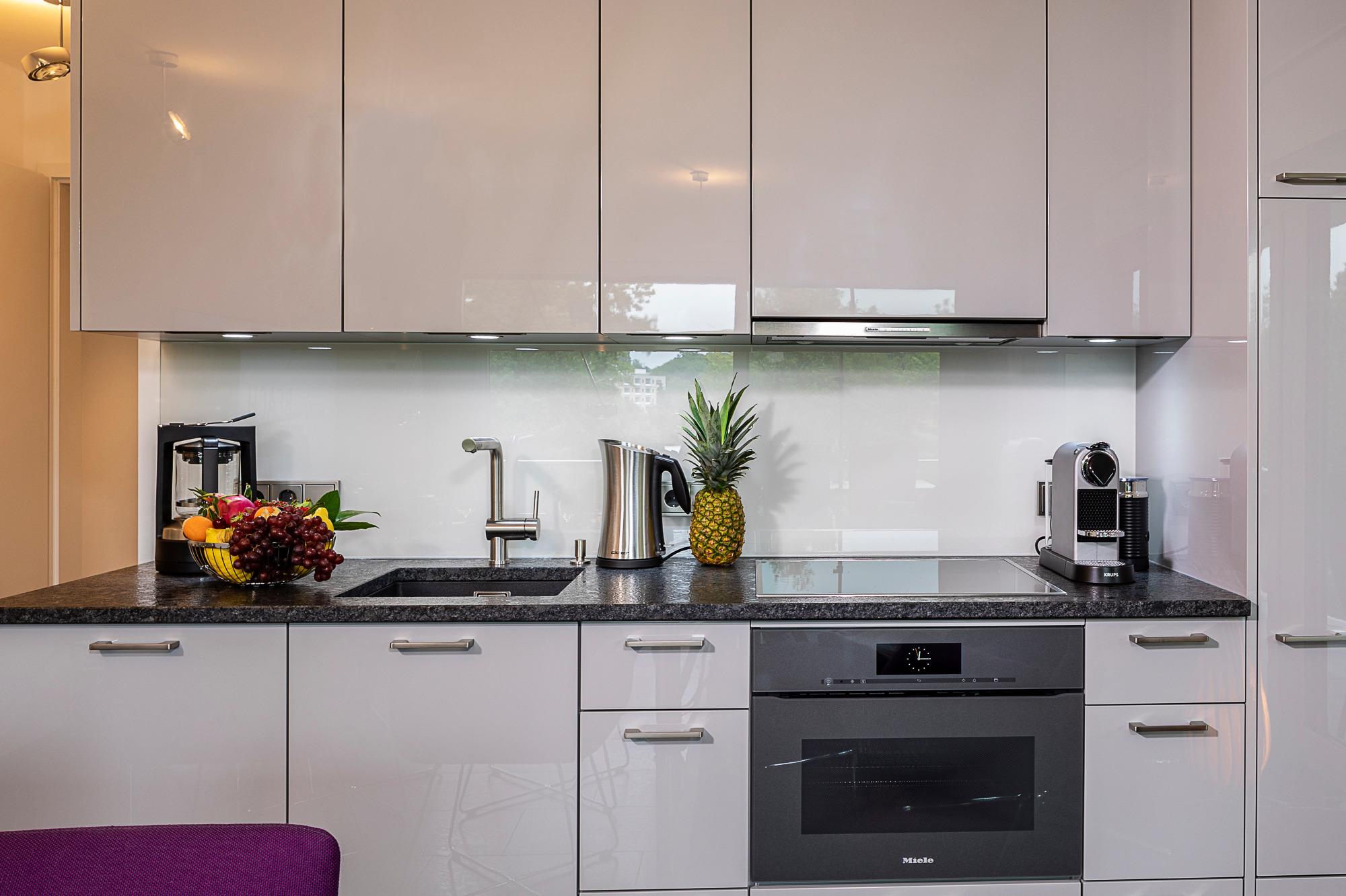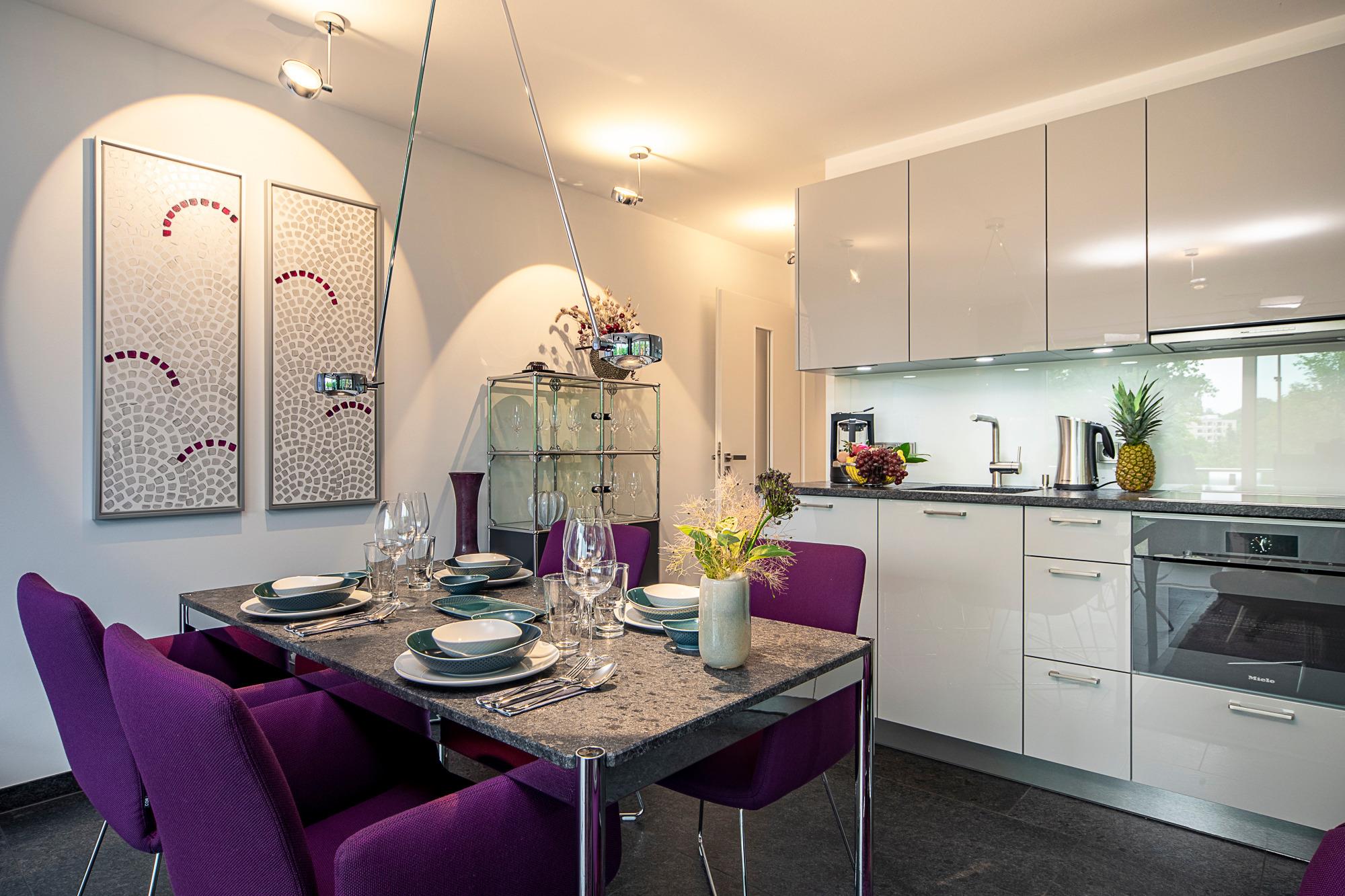 Freuen Sie sich auf eine exklusive Design-Ferienwohnung mit einer besonderen Wohlfühlatmosphäre. Das abgestimmte Wohnraumkonzept von COR, USM, VITRA und JAB wird mit einem Wellnessbereich von Villeroy [&] Boch abgerundet. Das warme Lichtkonzept des Hauses Prediger setzt die originalen Acrylgemälde und weitere geschmackvolle, naturbelassene Dekorationen ins richtige Licht und schafft eine stimmungsvolle Atmosphäre. Wohn-Ess-Bereich: Genießen Sie Ihr Frühstück oder andere kulinarische Höhepunkte in der hochwertigen Warendorf-Küche mit Miele-Einbaugeräten, einer Nespresso-Maschine sowie stylischem Rosenthal-Porzellan. Es erwarten Sie Design-Klassiker von USM Haller (Esstisch, Vitrine und TV-Board) und COR (Ledersofa, Lounge-Chair, Esstisch-Stühle mit bequemer Polsterung und Couchtisch). Ein Samsung 65?-Smart-TV inkl. Soundbar mit LAN und kostenloses, unbegrenztes Highspeed-WLAN stehen Ihnen für Entertainment und digitales Erleben zur Verfügung.
