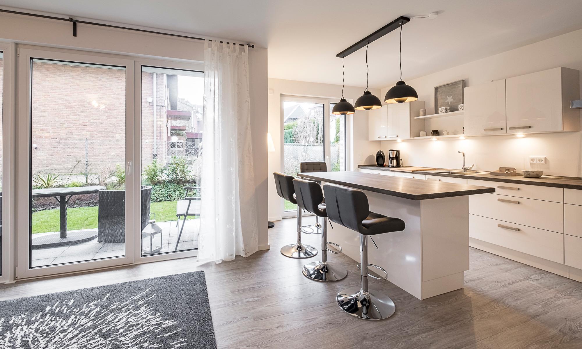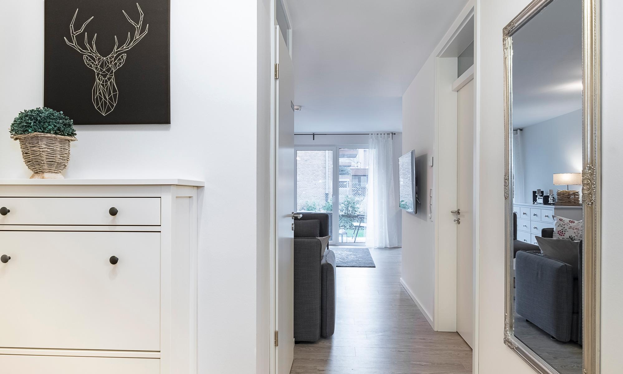 Diese Ferienwohnung bietet Ihnen einen gemütlichen Wohn-Essbereich, mit einer Couch sowie einem XXL-Sessel. Neben dem Flachbildfernseher steht Ihnen eine Stereoanlage zur Verfügung. Kostenloses WLAN ist selbstverständlich. Die offene Küche mit einem sehr schönen Esstresen ist komplett ausgestattet und lässt keine Wünsche offen. Neben der Filterkaffeemaschine steht Ihnen hier eine zusätzliche Kaffeepadmaschine zur Verfügung. Die Schlafzimmer sind je mit einem geräumigen Schrank, einem Boxspringbett (1,80 x 2,00m ) und einem Flachbildfernseher ausgestattet. Zur Verdunkelung sind elektrische Außenrollläden angebracht. Das große Duschbad verfügt über eine bodentiefe Dusche sowie einen großen Spiegel. Neben der Fußbodenheizung ist hier ein zusätzlicher Handtuchheizkörper angebracht. Ein zur Wohnung gehörender Tiefgaragenstellplatz sorgt für eine sichere Unterbringung Ihres Autos.
