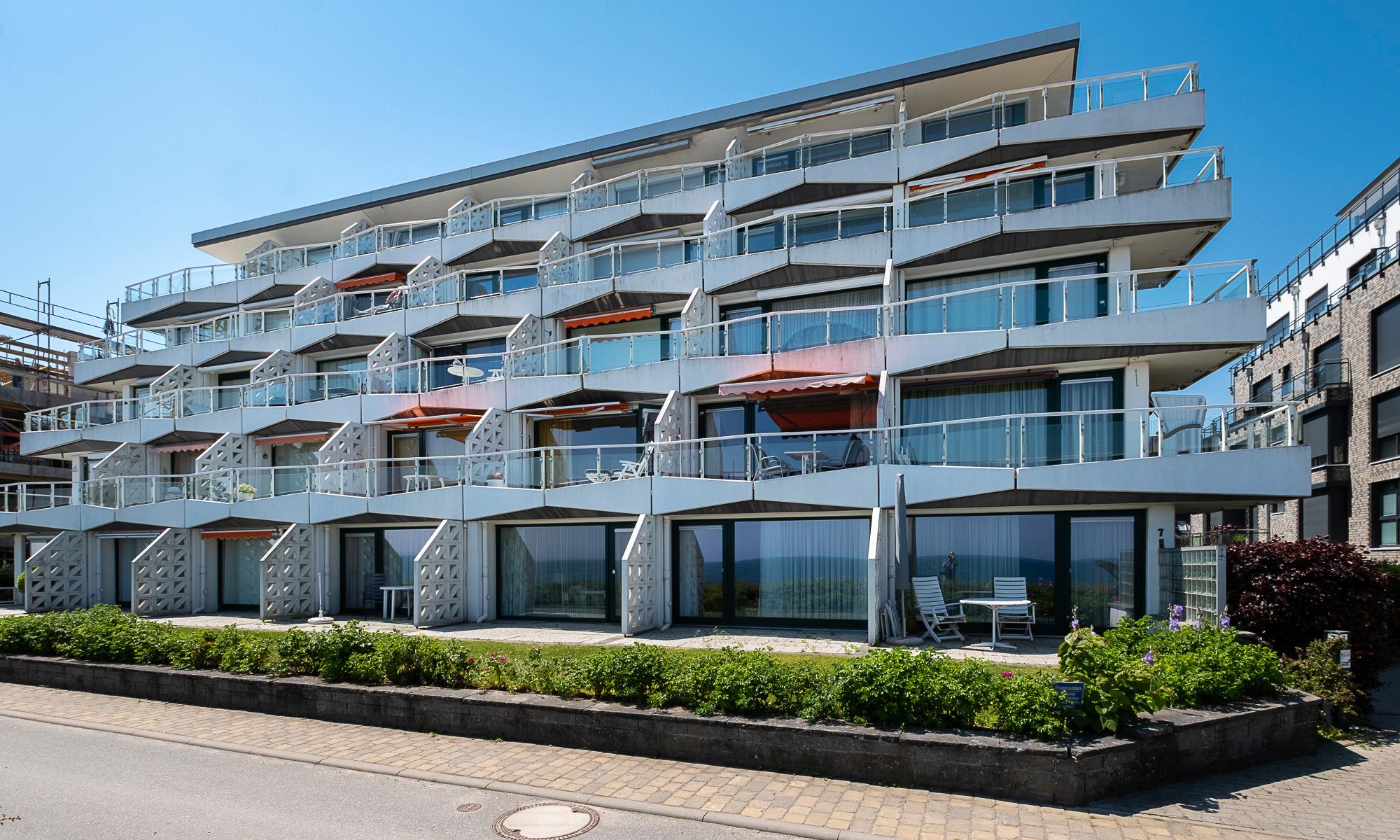 1-Zimmerwohnung, ca. 40 m², in 1A-Lage mit 100 % Meerblick, Terrasse und beheiztem Außenpool.
