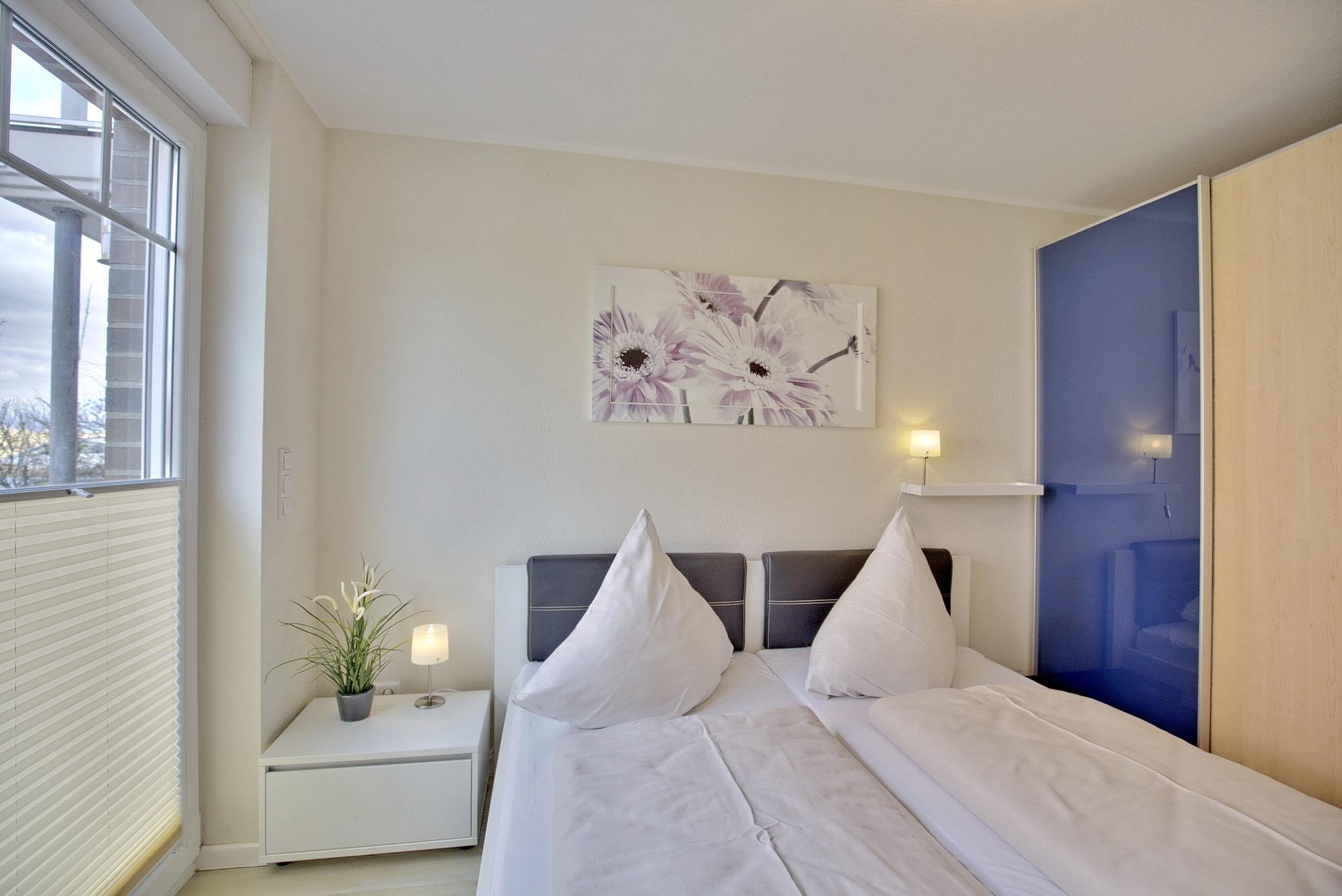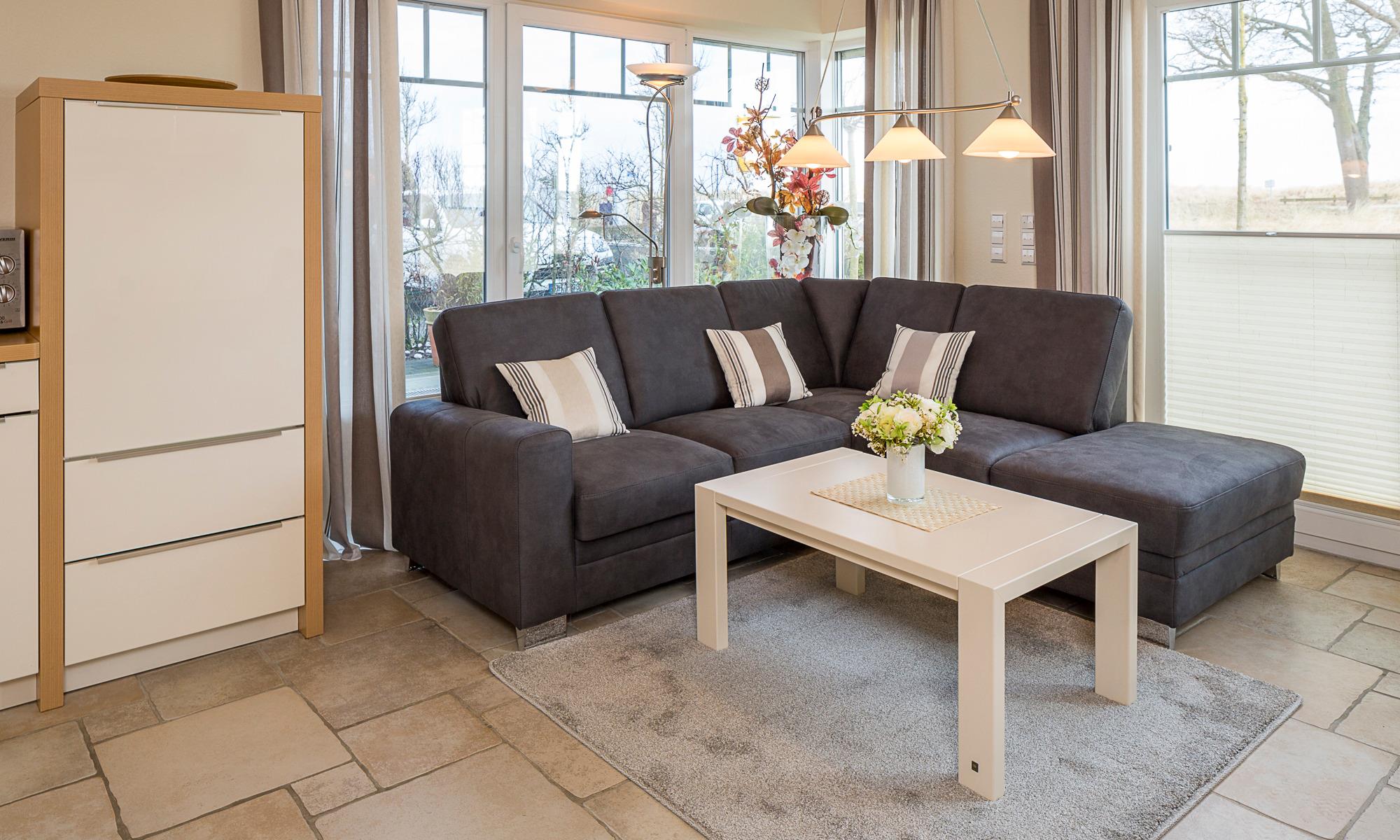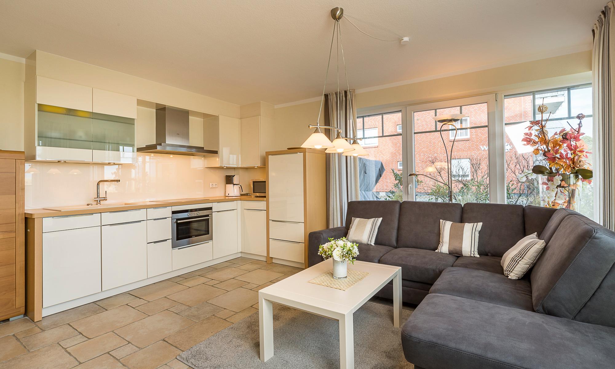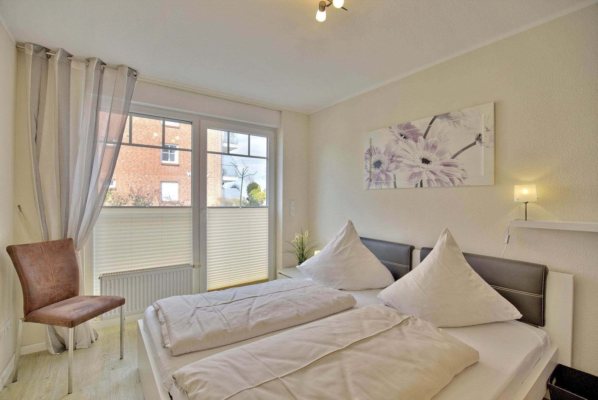 Der Wohn-Essbereich ist mit einem Esstisch und zwei Zweisitzern ausgestattet. Neben einem Flachbildfernseher, einem DVD-Player und einem CD-Player steht Ihnen selbstverständlich kostenloses WLAN zur Verfügung. Die Terrasse Richtung Osten ist mit einem Tisch, Stühlen und einem Strandkorb ausgestattet. Die helle Küche ist komplett ausgestattet und lässt keine Wünsche offen. Beide Schlafzimmer verfügen über bequeme Doppelbetten (1,80 x 2,00m) und geräumige Schränke sowie je einen zusätzlichen Flachbildfernseher. Zur Verdunkelung sind elektrische Rollläden angebracht. Das Tageslichtbad verfügt über eine bodengleiche Dusche.
