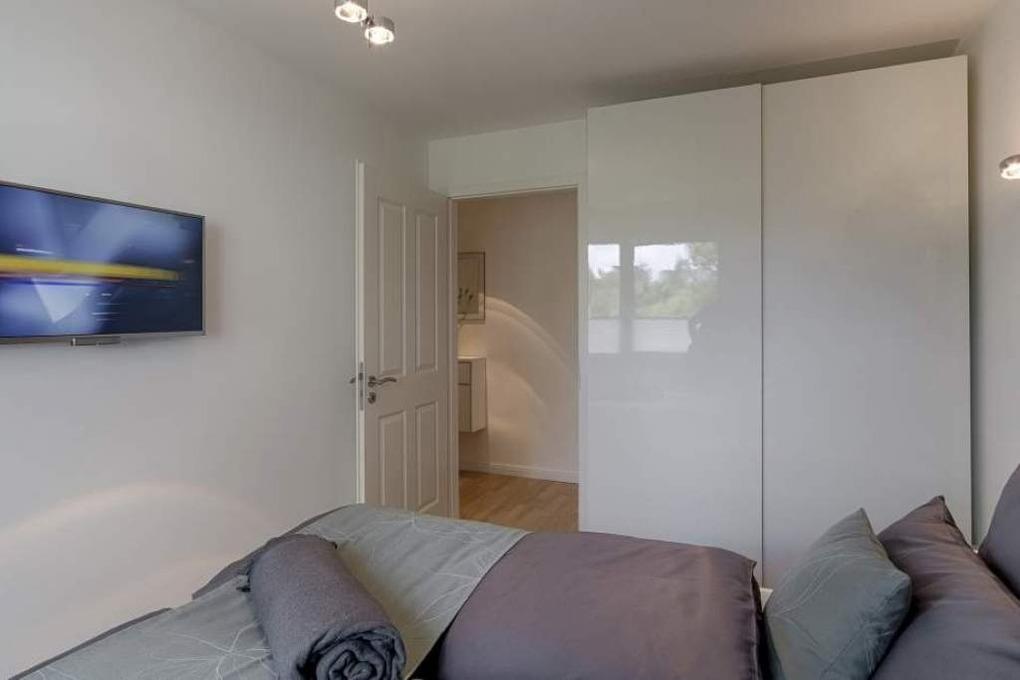 Der moderne Wohn-Essbereich bietet Ihnen eine gemütliche Sofaecke sowie einen großen Esstisch mit Stühlen für gesellige Stunden. Neben dem Flachbildfernseher, einer Stereoanlage und einem BluRay-Player steht Ihnen selbstverständlich kostenloses WLAN zur Verfügung. Die moderne Küche mit Küchentresen und drei Sitzgelegenheiten ist komplett ausgestattet und lässt keine Wünsche offen. Beide Terrassen sind mit einem Tisch und Stühlen ausgestattet und laden Sie zu jeder Tageszeit zum Entspannen ein. Das 1. Schlafzimmer ist mit einem Boxspringbett, einem geräumigen Kleiderschrank und einem Flachbildfernseher ausgestattet. Zur Verdunkelung sind elektrische Rollläden angebracht. Das Bad en Suite verfügt über eine bodentiefe Dusche und einen extra Handtuchheizkörper. Im 2. Schlafzimmer stehen ebenfalls ein Boxspringbett sowie ein geräumiger Kleiderschrank und ein Flachbildfernseher zu Ihrer Verfügung. Auch hier wurden elektrische Rollläden zur Verdunkelung angebracht. Das 2. Duschbad ist mit einer bodentiefen Dusche und einem Handtuchheizkörper ausgestattet.