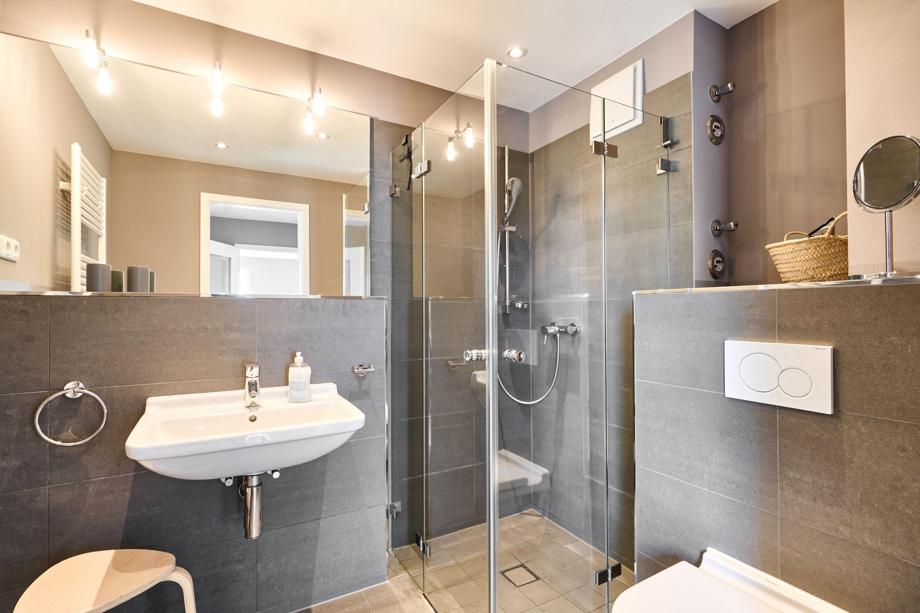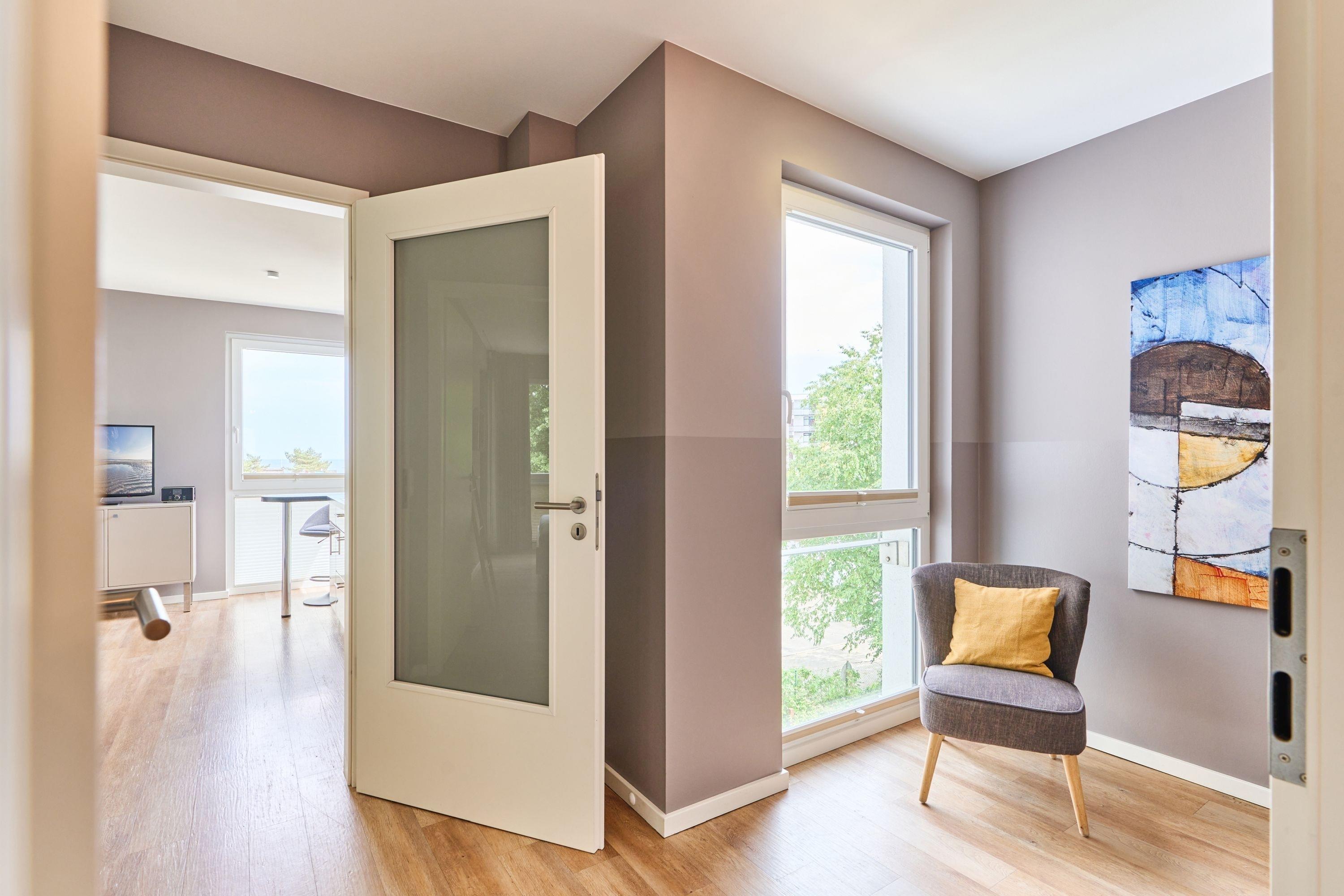 Diese geschmackvoll eingerichtete Ferienwohnung bietet Ihnen einen gemütlichen Wohn-Essbereich. Genießen Sie den Blick auf die Ostsee schon vom Esstisch aus. Die Couch lässt sich mit nur wenigen Handgriffen in eine bequeme Schlafcouch verwandeln. Neben dem Flachbildfernseher und dem 3D-BluRay-Player steht Ihnen ein CD-Player zur Verfügung. Kostenloses WLAN ist selbstverständlich. Der überdachte Balkon mit Blick auf die Ostsee ist mit Tisch und Stühlen ausgestattet. Die moderne Küche lässt keine Wünsche offen. Neben der Filterkaffeemaschine steht Ihnen hier noch zusätzlich eine Dolce-Gusto-Maschine zur Verfügung. Im Schlafzimmer stehen ein bequemes Doppelbett (1,80 x 2,00m) sowie ein geräumiger Schrank. Zusätzlich steht Ihnen auch hier ein Flachbildfernseher zur Verfügung. Auch vom Schlafzimmer haben Sie Zugang zum Balkon. Das Badezimmer verfügt über eine bodentiefe Dusche und einen großen Spiegel. Neben der Fußbodenheizung ist hier ein zusätzlicher Handtuchheizkörper angebracht. Die gesamte Wohnung verfügt über bodentiefe Fenster.