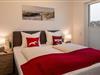 Beide Schlafzimmer sind mit einem Boxspringbett, zwei Nachttischen, einem Kleiderschrank und einem Fernseher ausgestattet. Außenrollläden sorgen für eine angenehme Nachtruhe. Das Duschbad bietet eine Dusche mit Hand- und Regendusche, einen Handtuchheizkörper, einen Fön und einen Kosmetikspiegel.