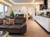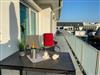 Die Wohnung ist modern und hochwertig eingerichtet. Der Wohn- und Essbereich ist komplett ausgestattet und verfügt über eine Küchenzeile mit Backofen, Cerankochfeld, Dunstabzug, Geschirrspüler, Kühlschrank mit Gefrierfach, Mikrowelle und Filterkaffeemaschine. Bodentiefe Fenster und elektrische Fensterrollläden sorgen für eine angenehme Atmosphäre. Vom Wohnbereich aus gelangt man auf die großzügige Dachterrasse mit Gartenmöbeln, von der aus man den Sonnenuntergang beobachten kann. Zur Unterhaltung stehen im Wohnbereich eine Stereoanlage mit Bluetooth und ein Fernseher zur Verfügung. Über eine Treppe gelangen Sie in das zweite Badezimmer, das mit einer Waschmaschine ausgestattet ist.