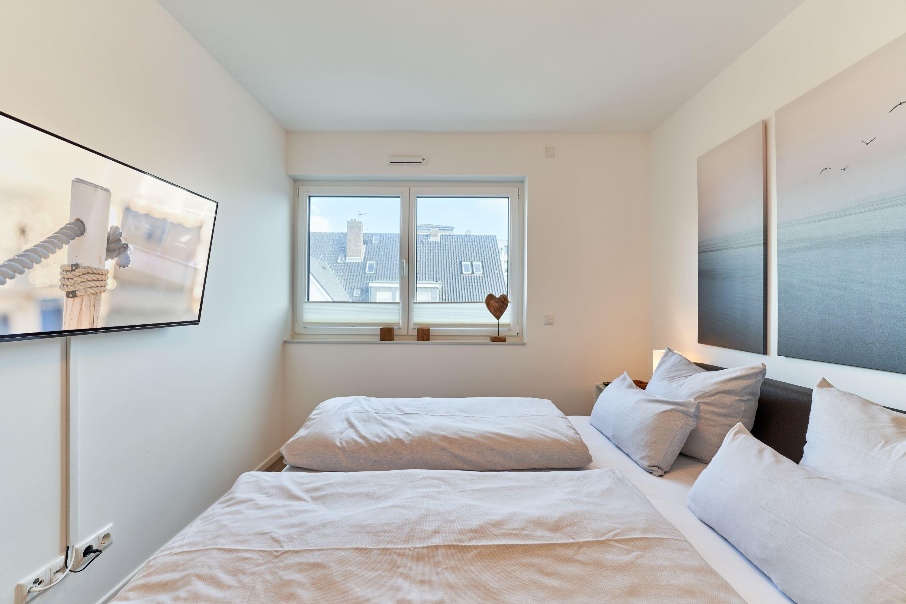 Die 3-Zimmerwohnung "Sea View" liegt im 2. OG und ist mit dem Fahrstuhl bequem zu erreichen. Der feinsandige, weiße Strand liegt nur 50m entfernt. Sie liegt nah an der pulsierenden Dünenmeile. Innerhalb von 1 Gehminute erreichen Sie alles, was Sie für Ihren entspannten Urlaub benötigen: Bäcker, Restaurants, Cafés, Bars und gehobenen Einzelhandel.