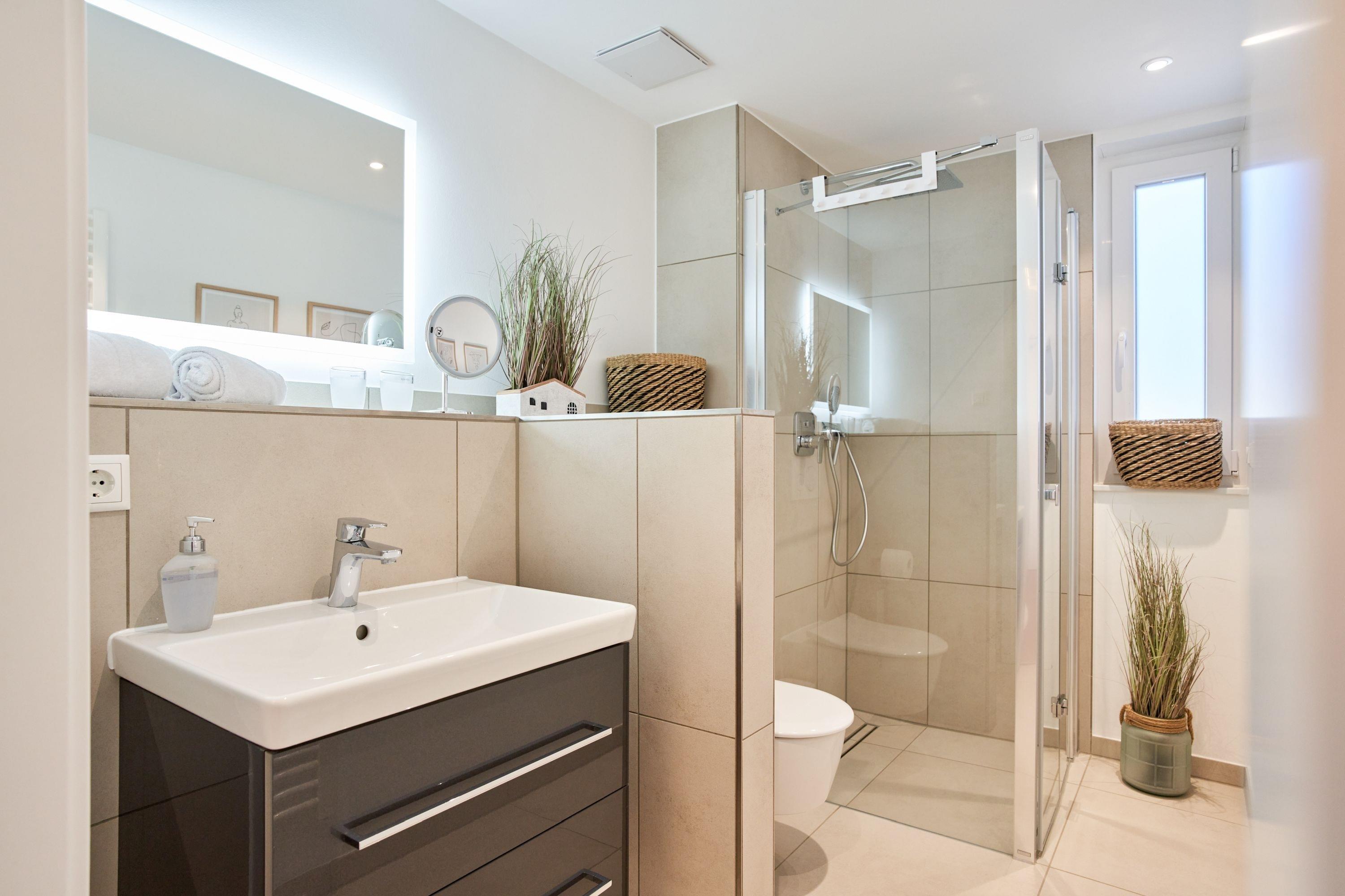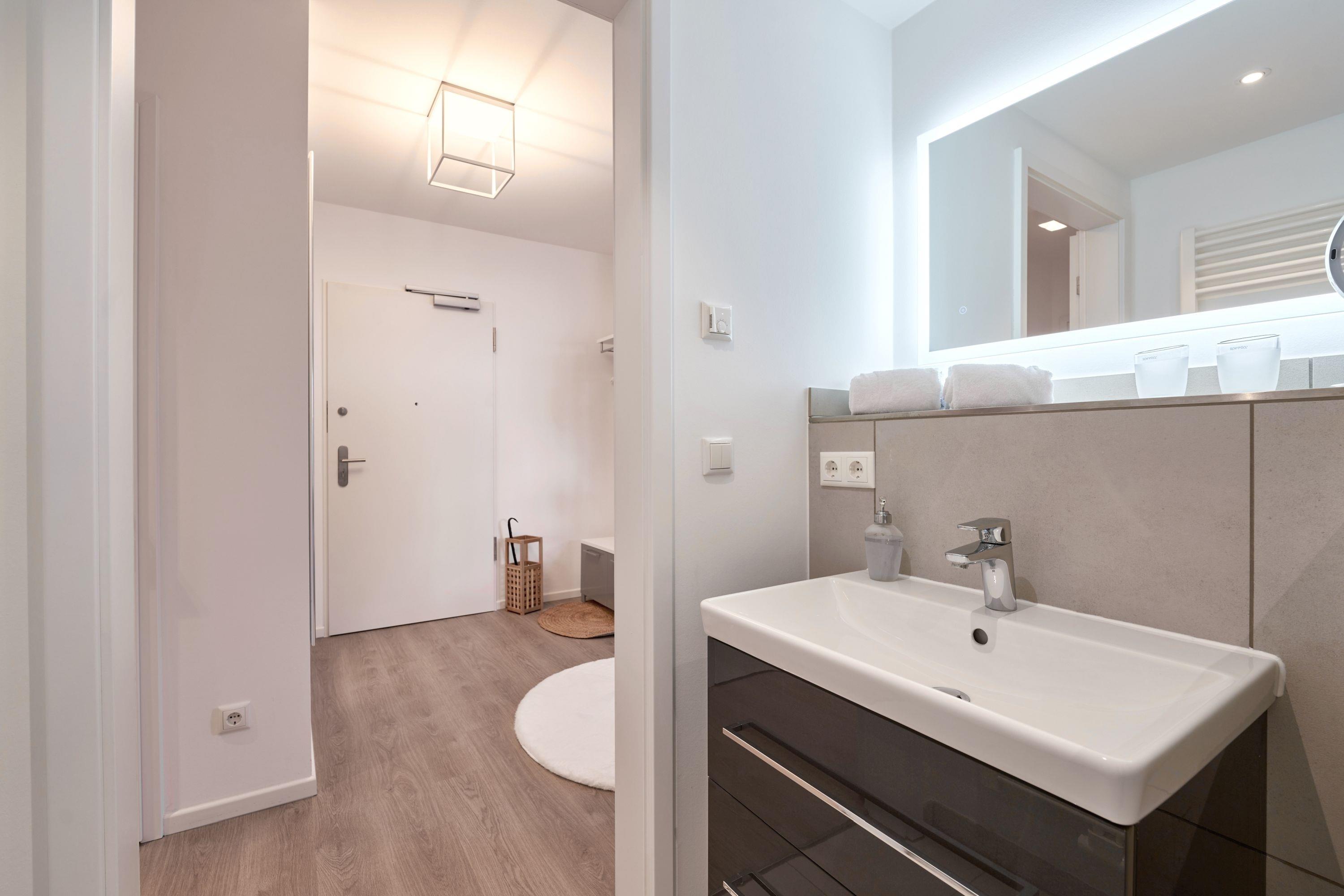 Sehr schöne Wohlfühlatmosphäre. Induktionsherd, Kühl-/Gefrierkombination, Mikrowelle, Backofen. Außenrollläden. Fußbodenheizung, Bügelbrett und Bügeleisen, kostenloses WLAN. Eine eigene Waschmaschine und ein Trockner stehen im Waschkeller. Ein Fahrradkeller befindet sich im Haus und ist über den Fahrstuhl (XXL) bequem zu erreichen. Die Wohnung hat einen zugeordneten Kfz-Außenstellplatz. Während Ihres Aufenthaltes steht Ihnen saisonbedingt (15.05. – 15.09.) ein kostenloser Strandkorb zur Verfügung.