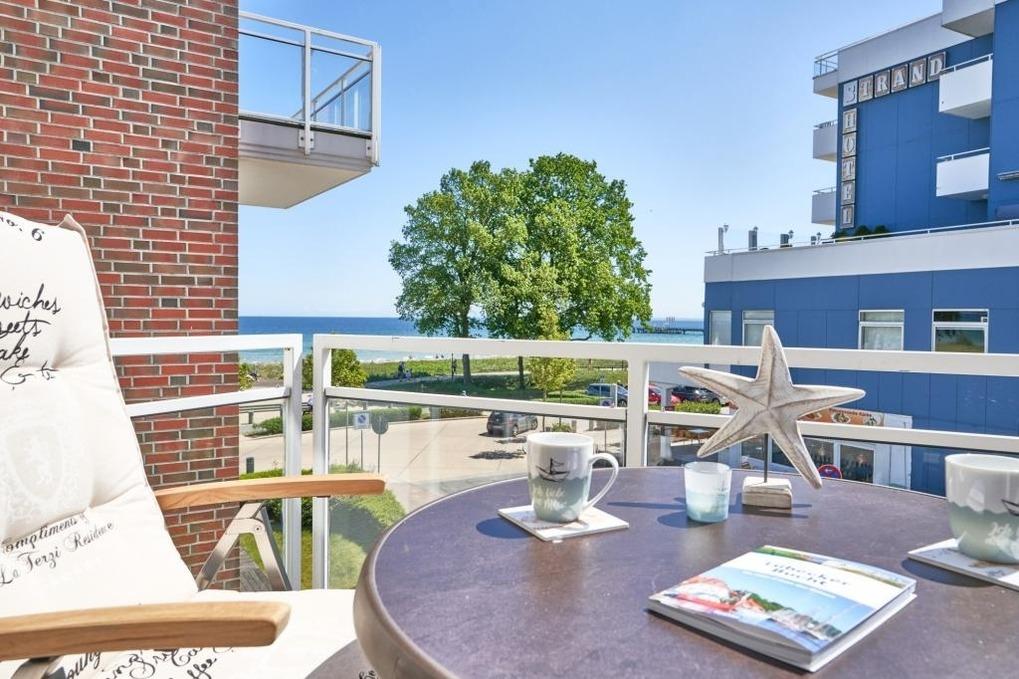 Sehr schöne 2-Zimmerwohnung, ca. 49 m², 2. OG, seitlicher Meerblick, Balkon, Fahrstuhl, Tiefgaragenstellplatz (Durchfahrtshöhe 2,08 m)