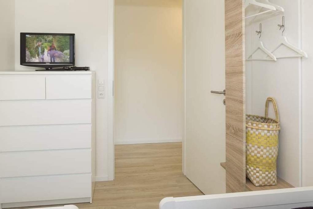 Hier wurde nichts dem Zufall überlassen. Der Fußboden, in einem warmen Plankendesign, erstreckt sich über den gesamten Wohnbereich, einschließlich Flur. Das Badezimmer wurde in den Farben Anthrazit/Weiß gehalten. Das 1. Schlafzimmer bietet Ihnen ein bequemes Boxspringbett (1,80 x 2,00m), einen Kleiderschrank mit Schiebetüren und einen Flach-TV. Die Bose®-Stereo-Anlage vermittelt einen exzellenten Sound. Die Außenrollläden ermöglichen Ihnen einen erholsamen Schlaf. Nur die Morgensonne könnte Sie wecken. Im 2. Schlafzimmer stehen 2 Betten (0,90 x 200m) sowie eine Kommode, eine Vorrichtung für Ihre Garderobe, ein kleiner Nachttisch als Ablage und eine kleine Nachttischlampe. Ein Flach-TV rundet den Komfort ab. Im Bad finden Sie eine ebenerdige Dusche mit Handbrause und Duschkopf. Der Mineralmarmorwaschtisch ist in Weiß gehalten, der Waschtischunterschrank vervollständigt die Optik und Funktionalität. Der Handtuchtrockner wärmt in der Übergangszeit Ihre Handtücher, und die Fußbodenheizung sorgt für angenehme Fußwärme. Das integrierte Bad-Radio mit Lautsprechern im abgehängten Deckenbereich sorgt für ein besonderes Wohlgefühl. Fön und ein beleuchteter Kosmetikspiegel runden das Ensemble ab.