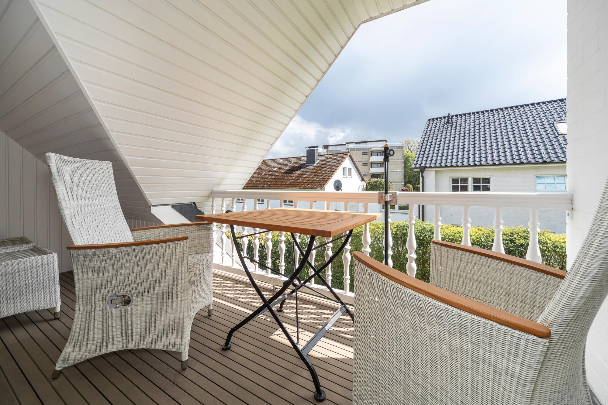 Eine 65 m² große 2-Zimmer-Ferienwohnung mit zwei Balkonen, Duschbad, PKW-Stellplatz und Fahrradgarage