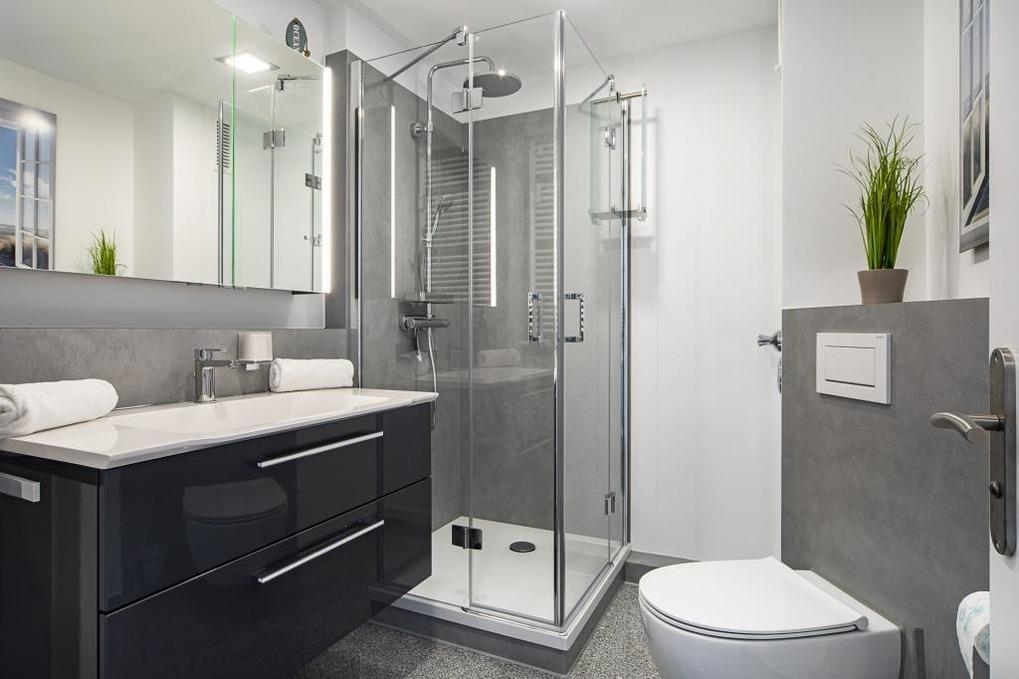 Die separate Küche, mit Essplatz für 3 Personen ist komplett ausgestattet und lässt keine Wünsche offen. Im Wohnbereich finden Sie alles, was man zur Entspannung benötigt, ein ansprechendes großes Sofa, welches in wenigen Handgriffen zu einem bequemen Schlafsofa umgestaltet werden kann, sowie einen bequemen Sessel samt Fußhocker. Vom Wohnzimmer, mit Smart-TV, Digital-Radio mit Bluetooth-Funktion und kostenfreiem WLAN, gelangt man auf den schönen Balkon mit seitlichem Meerblick. Im Schlafzimmer stehen Ihnen ein bequemes Boxspringbett, ein Sessel, der zu einem Einzelbett umgestaltet werden kann, ein geräumiger Schrank sowie ein Wand-Flach-TV zur Verfügung. Sie können das Schlafzimmer durch die Außenrollläden komplett verdunkeln. Das Badezimmer verfügt über eine Dusche mit niedrigem Einstieg und einen zusätzlichen Handtuchtrockner.