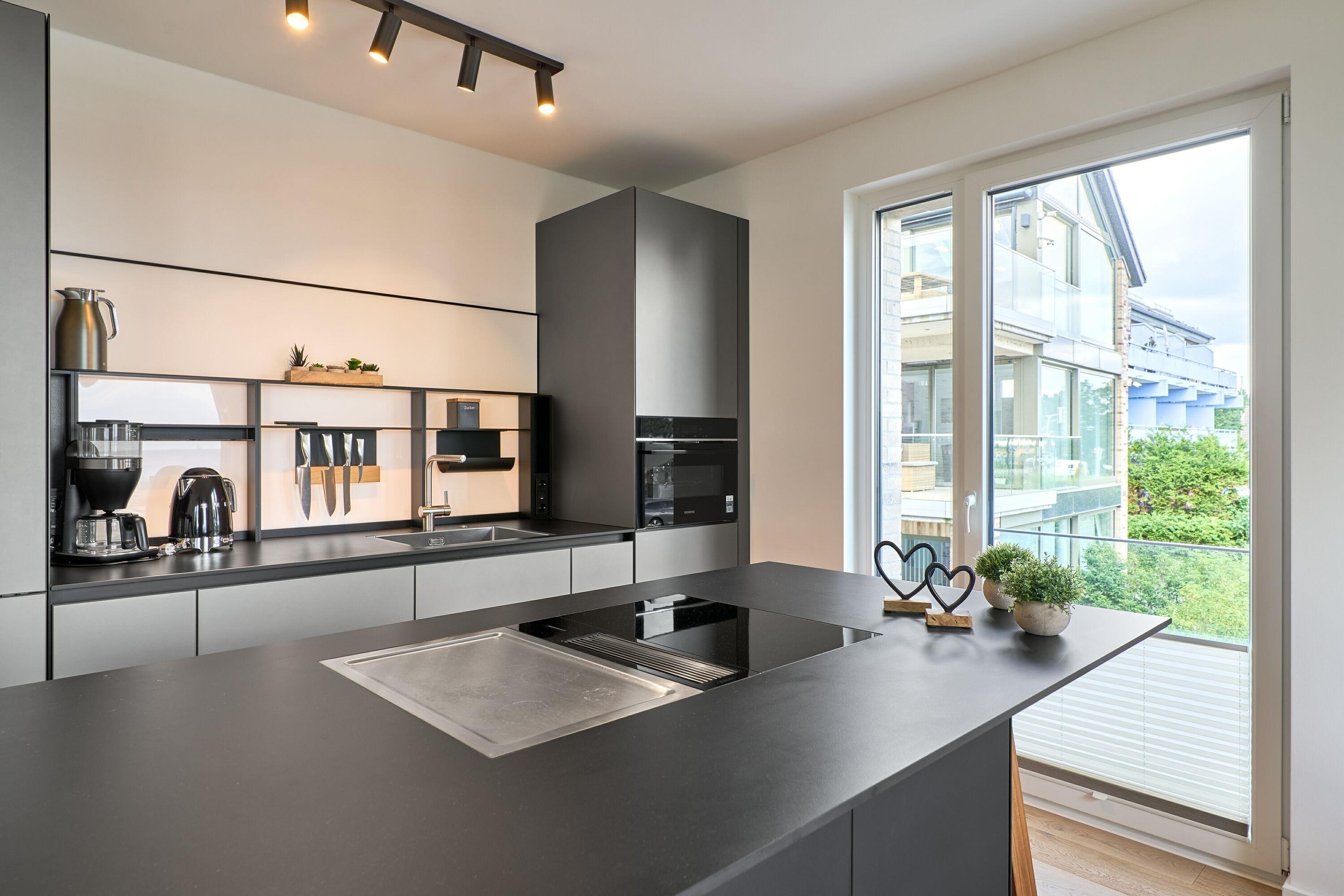 Schon beim Betreten der Wohnung erwartet Sie ein herrlicher Blick auf die Ostsee. Der Wohnbereich dieser traumhaften Wohnung ist durch die bodentiefen Fenster hell und lichtdurchflutet. Der Essbereich bietet ausreichend Platz für 4 Personen. Die moderne, offene Küche mit Kochtresen, Induktionskochfeld, Kaffeemaschine und Nespresso-Maschine ist komplett ausgestattet und lässt keine Wünsche offen. Für Kochliebhaber bietet der Bora Tepan-Grill den Rahmen für Geselligkeit und gemeinsames Kochen.