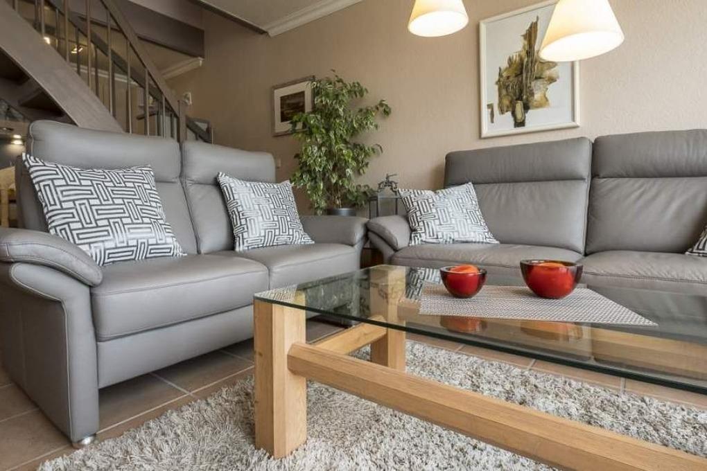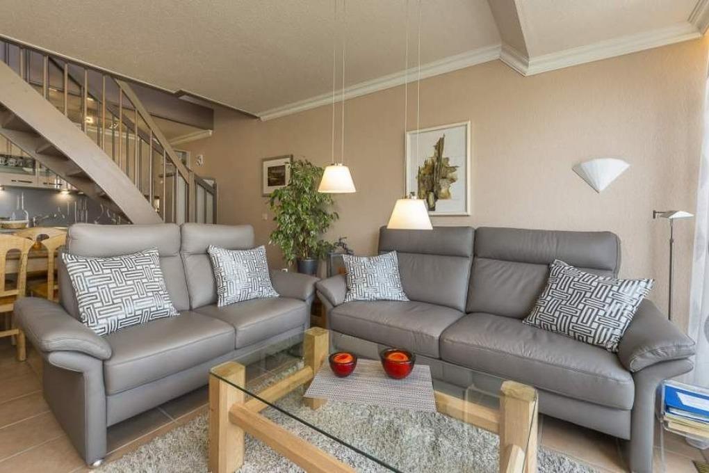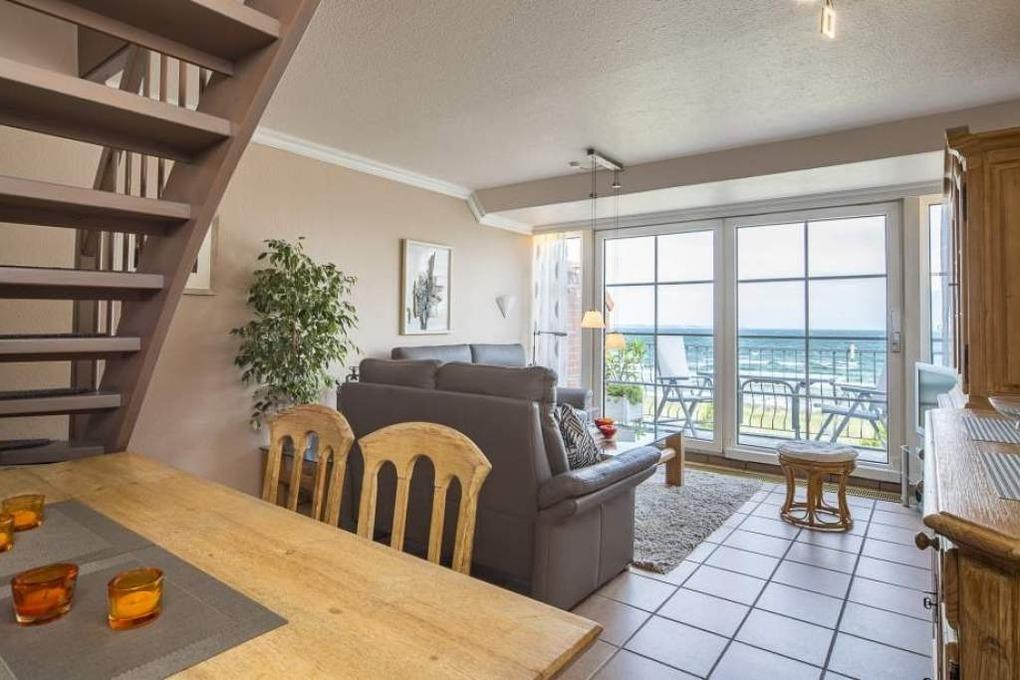 Windrose - 3,5-Zimmer-Ferienwohnungca. 80 m², über 2 Ebenen, zwei Schlafzimmer, Galeriezimmer, 2 Balkone, zwei Bäder und ein PKW-Stellplatz für bis zu 5 Personen.