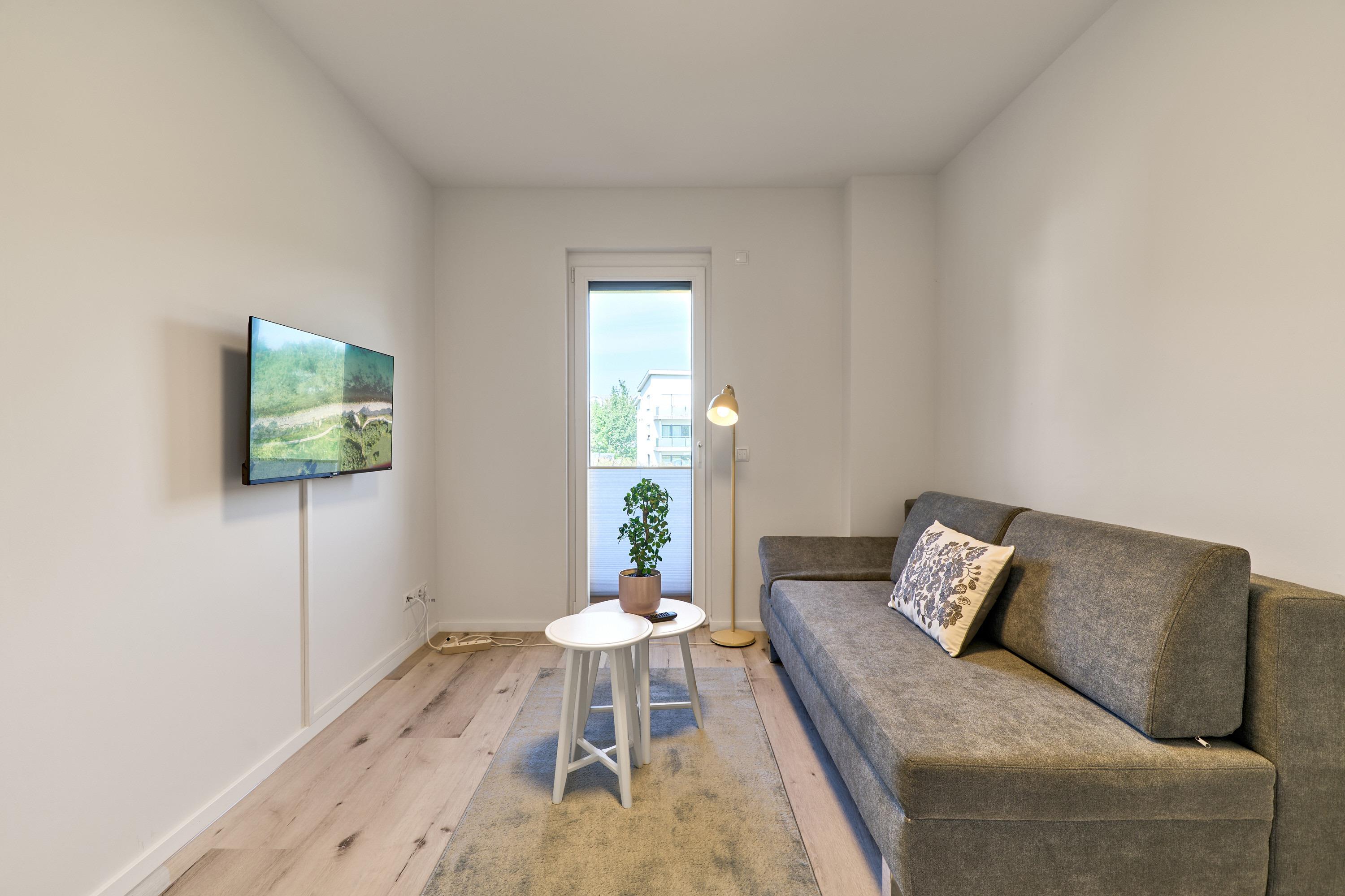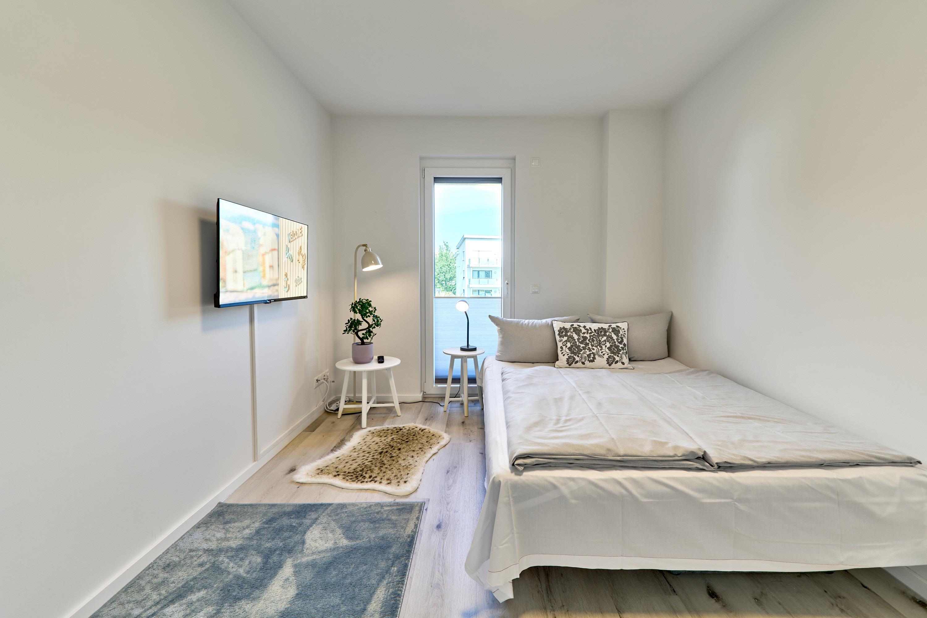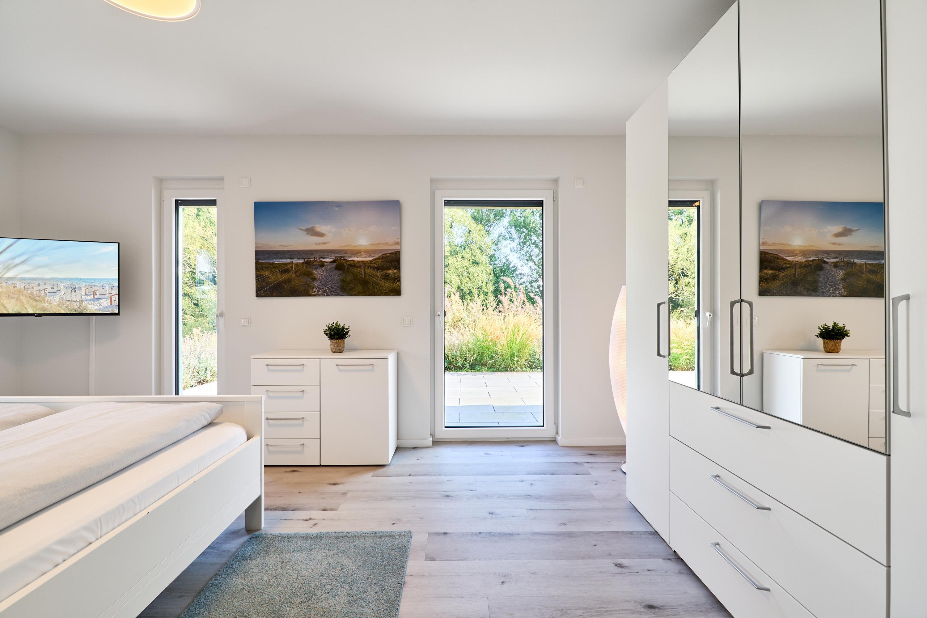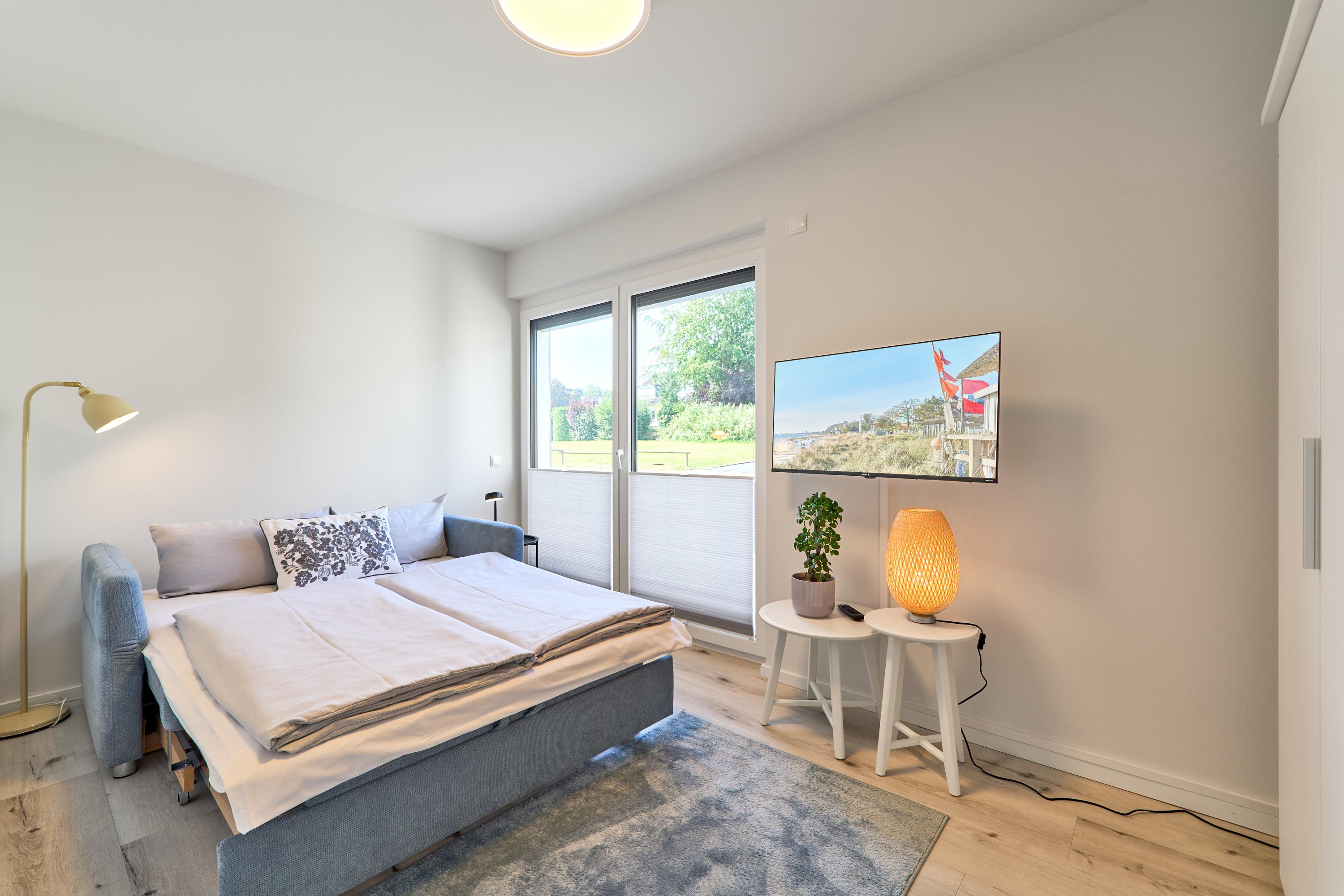 Zwei weitere Zimmer, je mit einem Schlafsofa 140x200, je einem Kleiderschrank sowie einem TV, Außenrollläden.