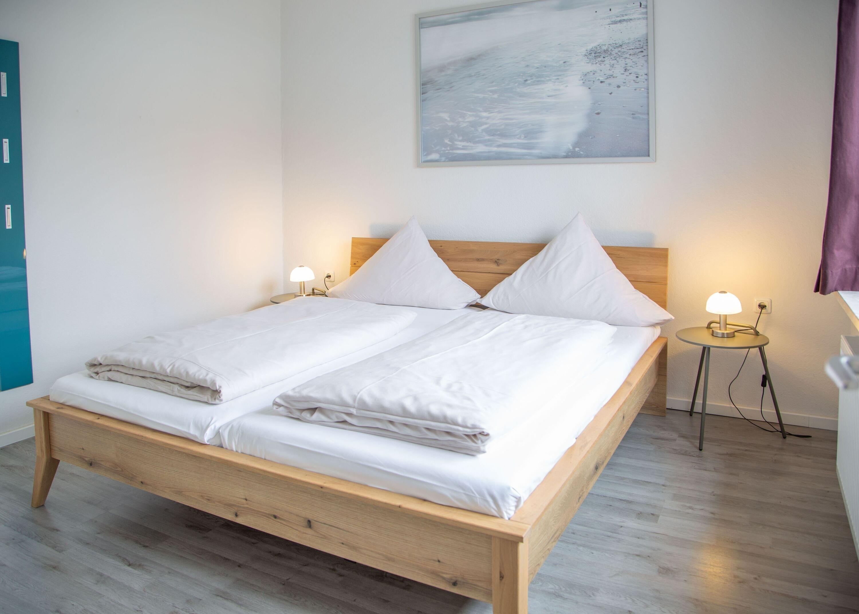 Die helle Ferienwohnung "Appartement 05 mit Balkon" im Haus Gästehaus Daheim bietet auf 54 m² Platz für bis zu 4 Personen (zzgl. max. 1 Babybett). Sie befindet sich in der ersten Etage und verfügt über 2 Schlafzimmer, 2 Badezimmer, 1 Wohnzimmer, 1 Küche und einen großen Balkon. Für die Raucher unter unseren Gästen befindet sich auf dem Balkon ein Aschenbecher. Ein Parkplatz steht direkt am Haus kostenfrei zur Verfügung.