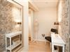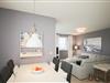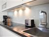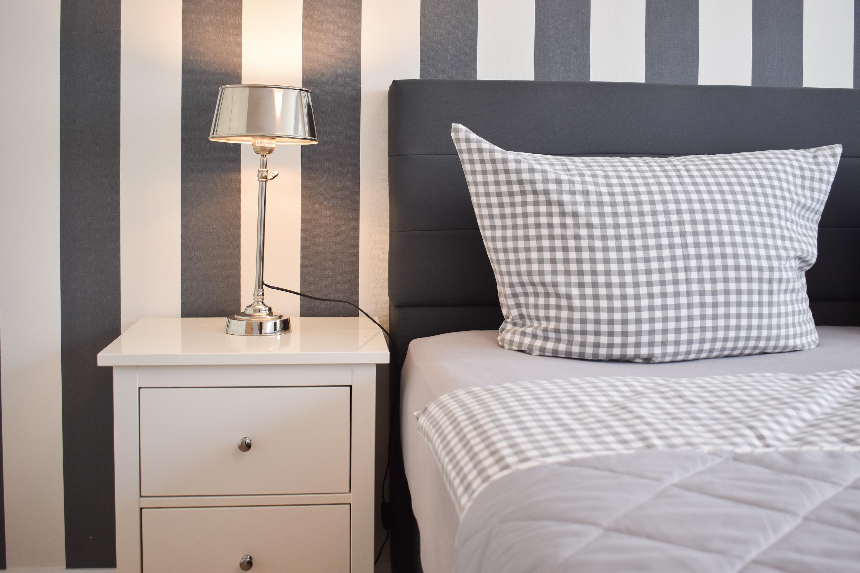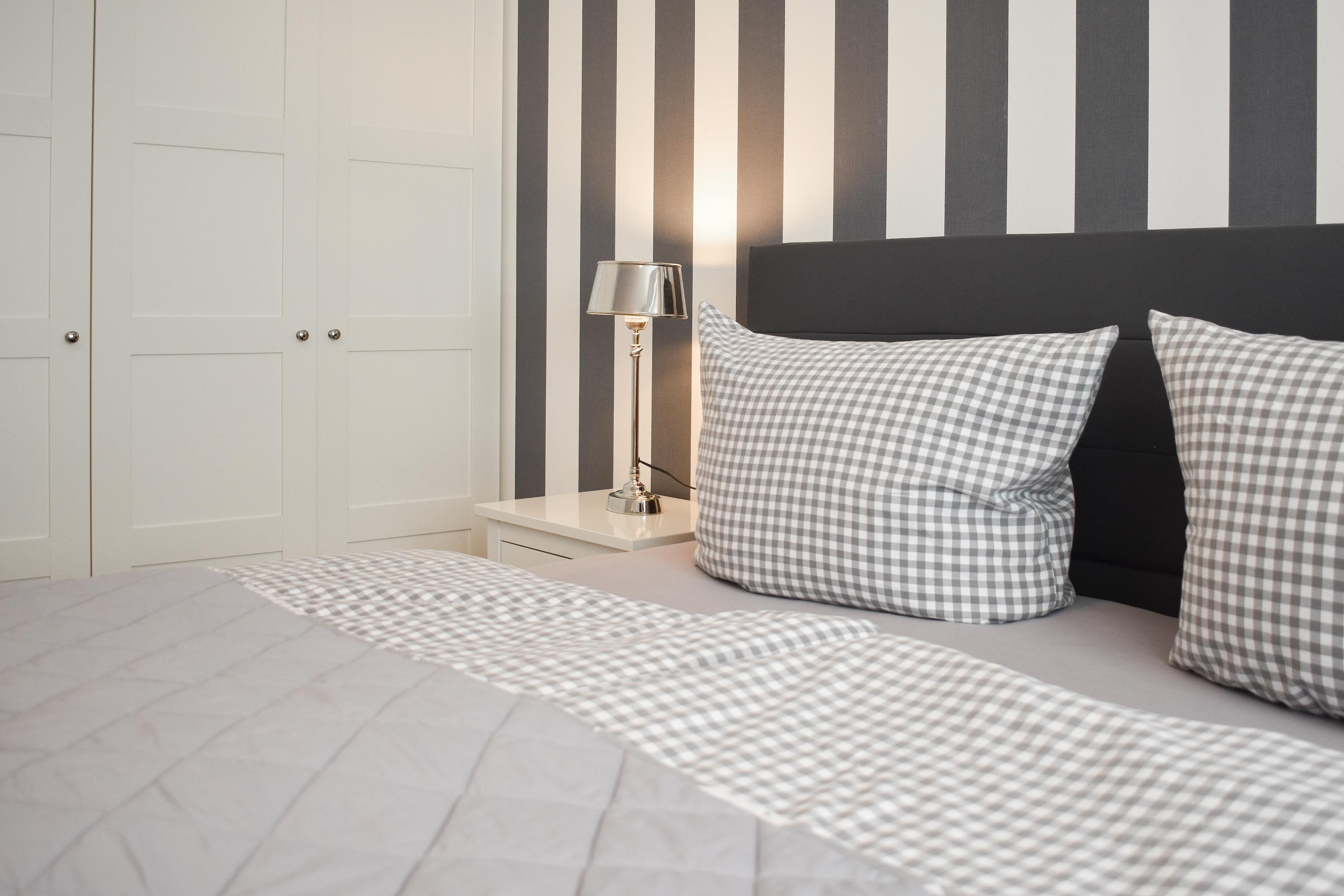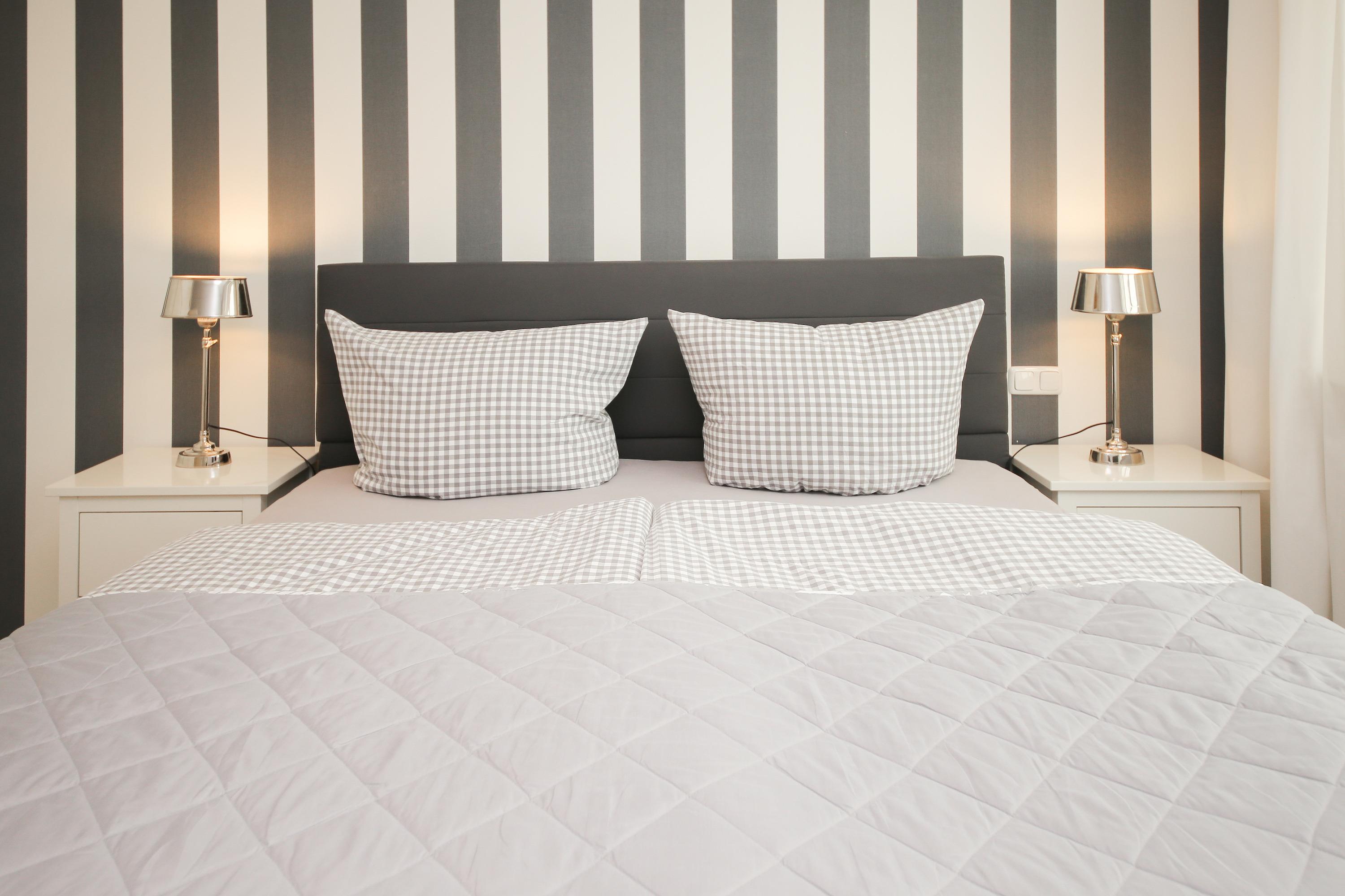 Es gibt 1 Schlafzimmer, ausgestattet mit einem Boxspringbett (180x200), Flat TV sowie elektrischen Außenjalousien zum Verdunkeln. Für eine 3. Person kann im Wohnbereich ein Zustellbett (max. 80 kg) zur Verfügung gestellt werden. Das innenliegende hochwertige Bad verfügt über eine große, ebenerdige Dusche, WC, Waschtrockner und Fußbodenheizung und ein Radio. WLAN steht selbstverständlich kostenlos zur Verfügung.
