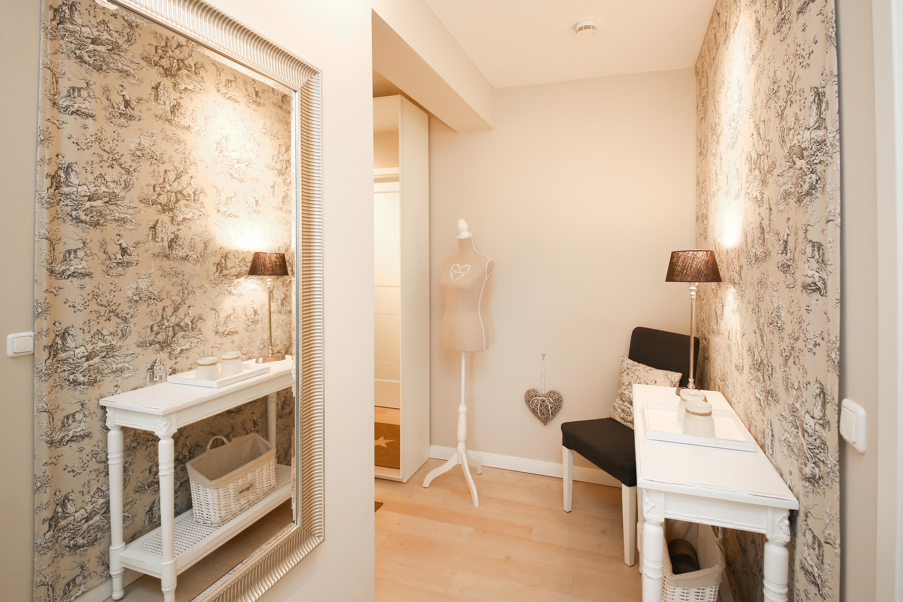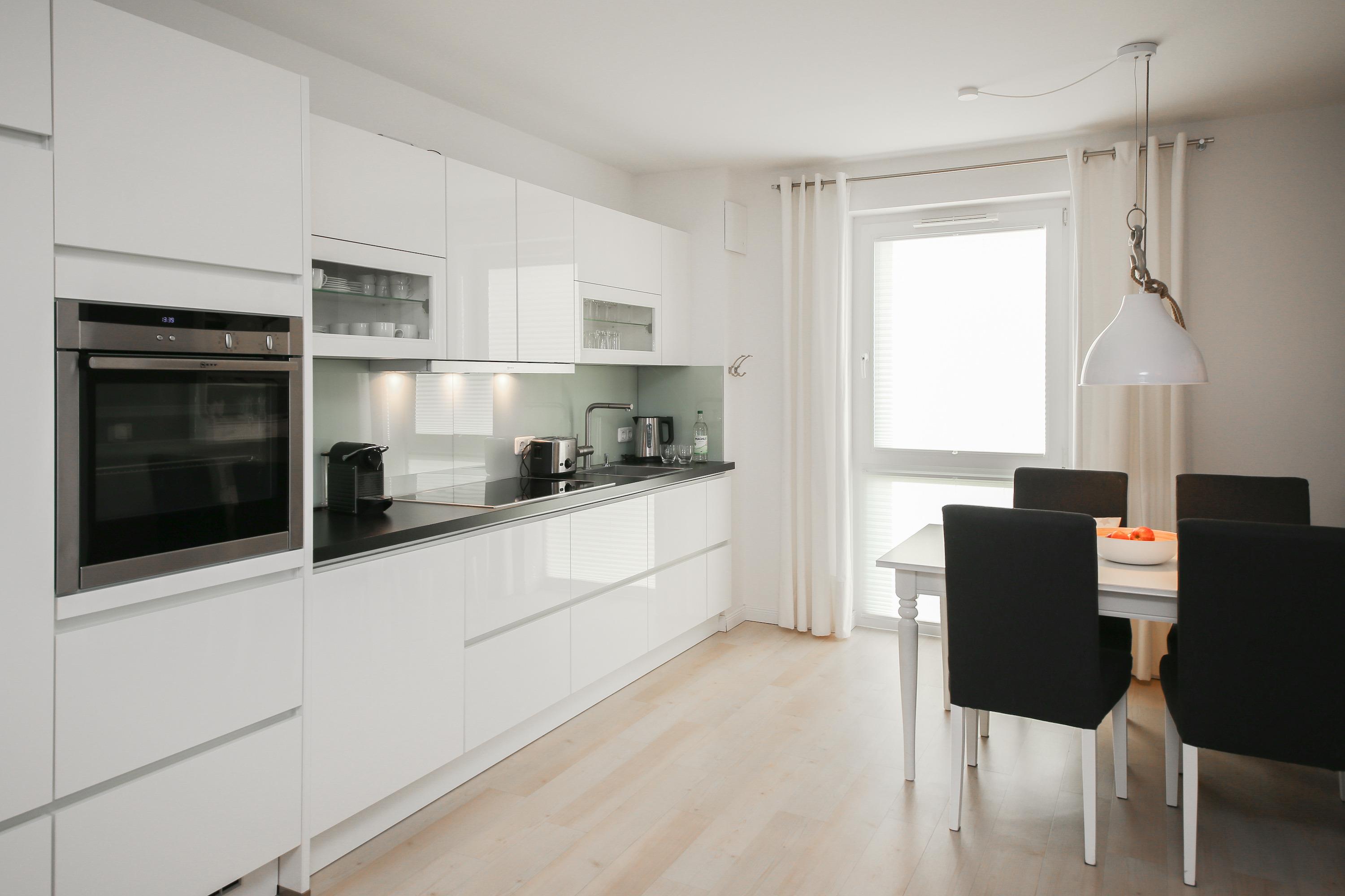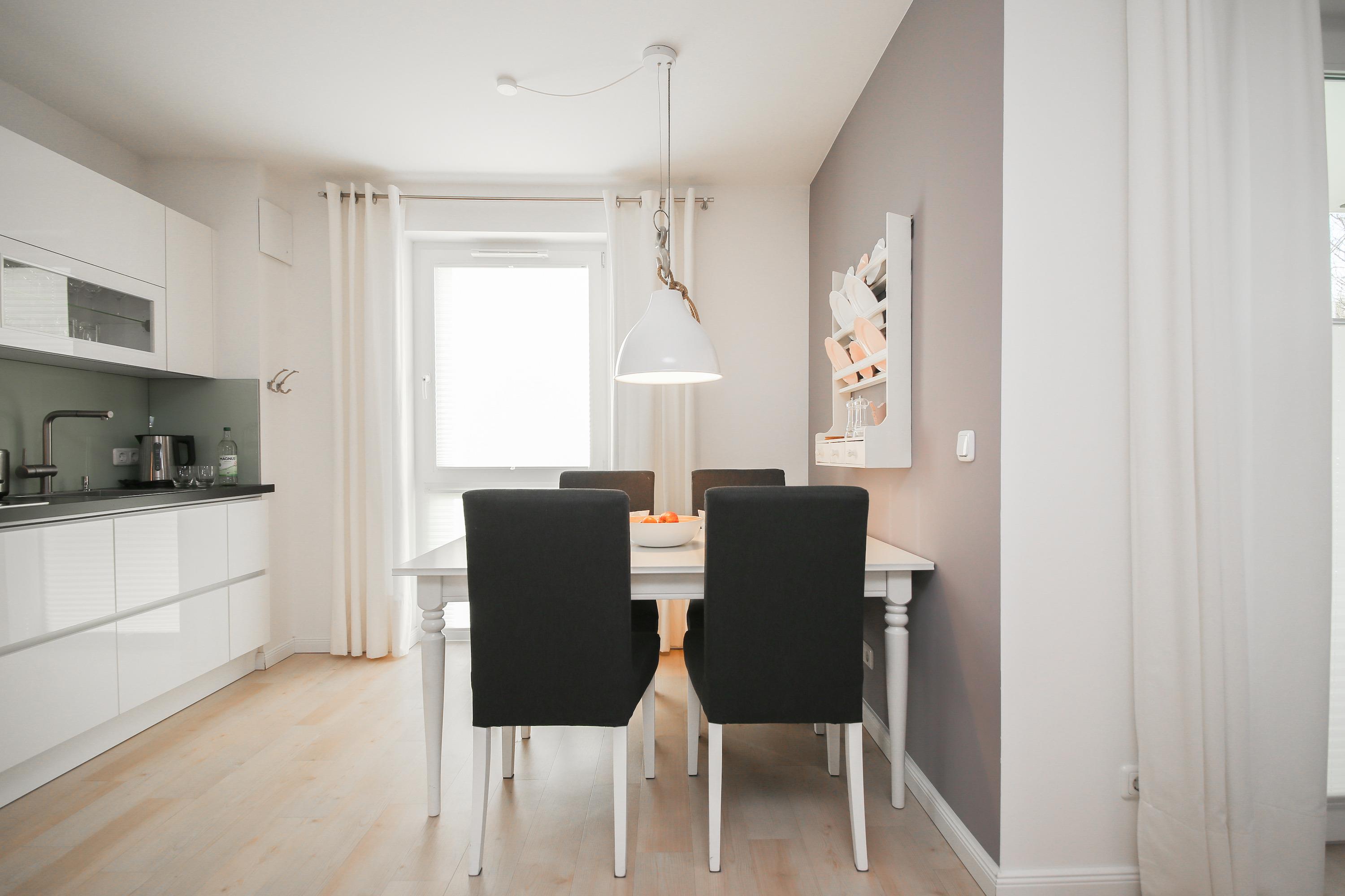 Es erwartet Sie eine wunderschöne Ferienwohnung in warmen Farben im Hampton Style, die Gemütlichkeit und Wohlbefinden vermitteln. Natürliche Materialien und ein durchdachtes Raumkonzept schaffen eine ganz besondere Atmosphäre um wohl verdiente Urlaubstage zu genießen. Herzstück der Wohnung bildet der großzügige Essbereich für 4 Personen mit offener Einbauküche in bester Ausstattung zum geselligen Beisammensein und gemeinsamen Kochen. Von hier aus gelangen Sie auf den möblierten und westlich ausgerichteten Balkon mit einem schönen Blick ins Grüne. Der Wohnbereich verfügt über eine gemütlich Eckcouch, Flat TV und eine Stereoanlage.