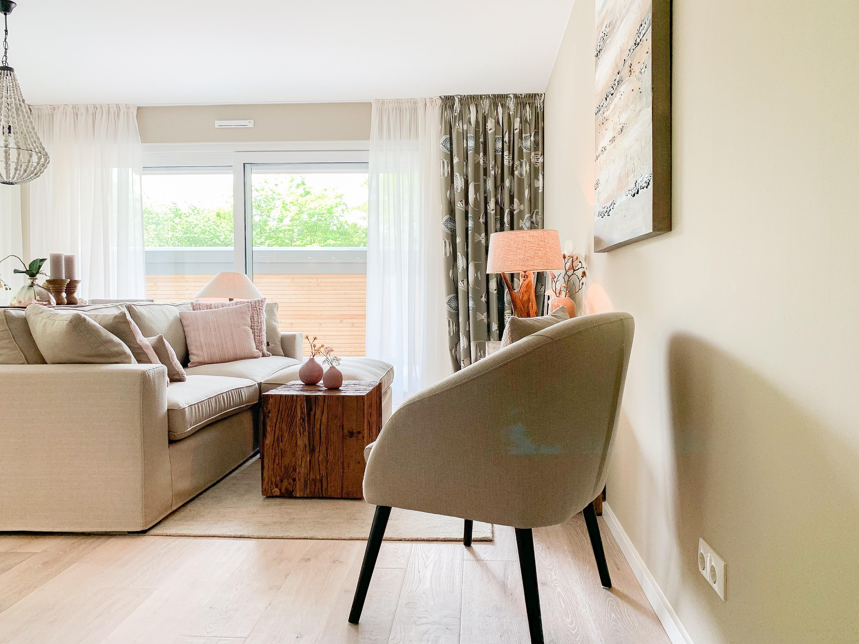Die Wohnung bietet zeitgemäßen Luxus in jederlei Hinsicht und jeglichen Komfort wie Fußbodenheizung, elektrische Außenjalousien und große, bodentiefe Fensterflächen für ein offenes Raumgefühl. Die großzügig angelegte Terrasse in Südwest Ausrichtung ist teilweise überdacht und bietet einen schönen Meerblick. Als besonderes Highlight wurde die Wohnung mit einer Infrarot Wärmekabine ausgestattet, besonders hilfreich bei Verspannungen, zur Entschlackung oder einfach zur Entspannung nach einem Strandspaziergang. Die exklusive Einrichtung und hochwertige Ausstattung macht dieses Objekt zu etwas Besonderem. Es stehen 2 Schlafzimmer und ein großzügiges Duschbad mit integrierter Wärmekabine zur Verfügung. Der Wohn- Essbereich mit umlaufender Sonnenterrasse und offener Küche in bester Ausstattung, bilden den Mittelpunkt der Wohnung.[nbsp][nbsp][nbsp]