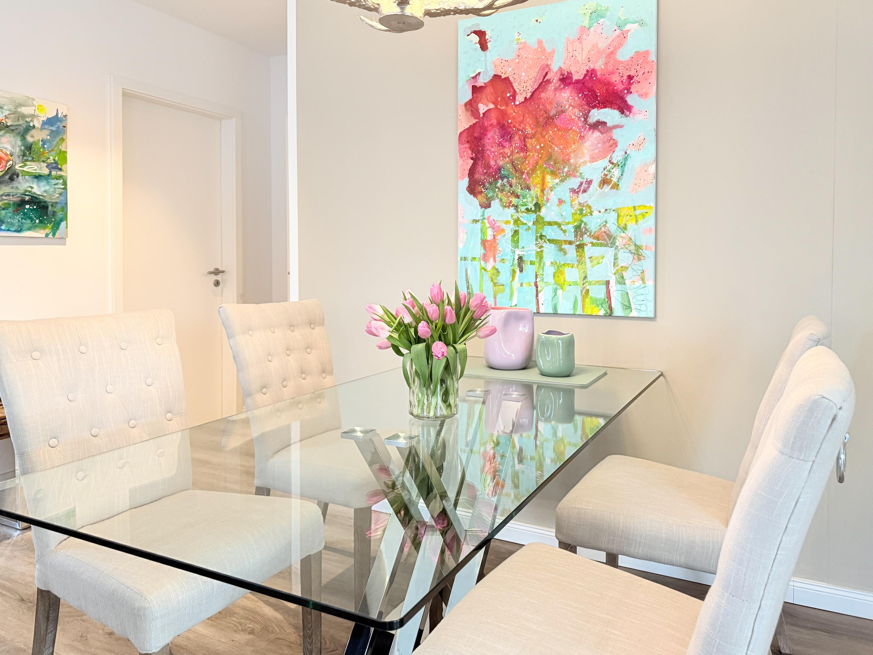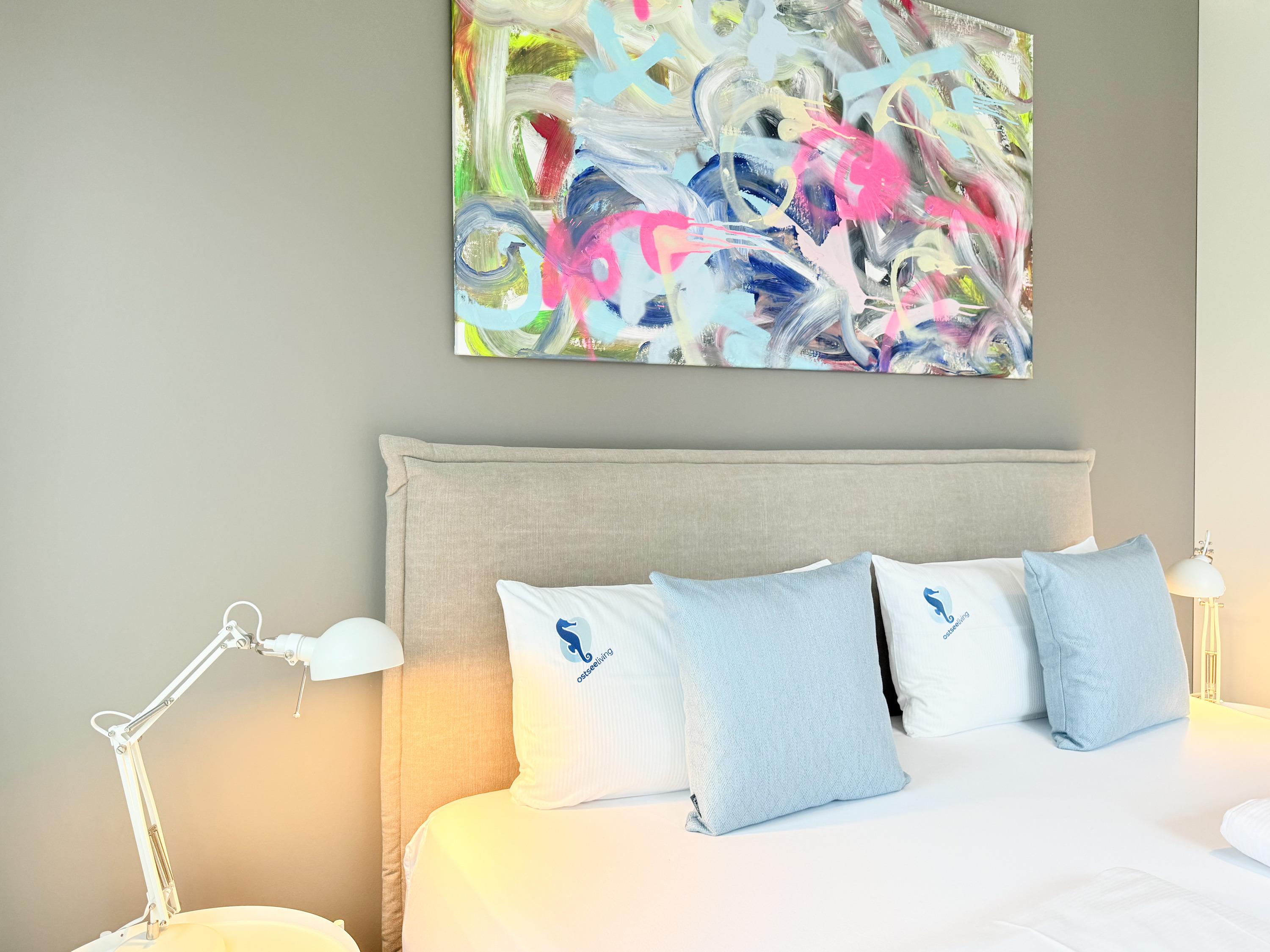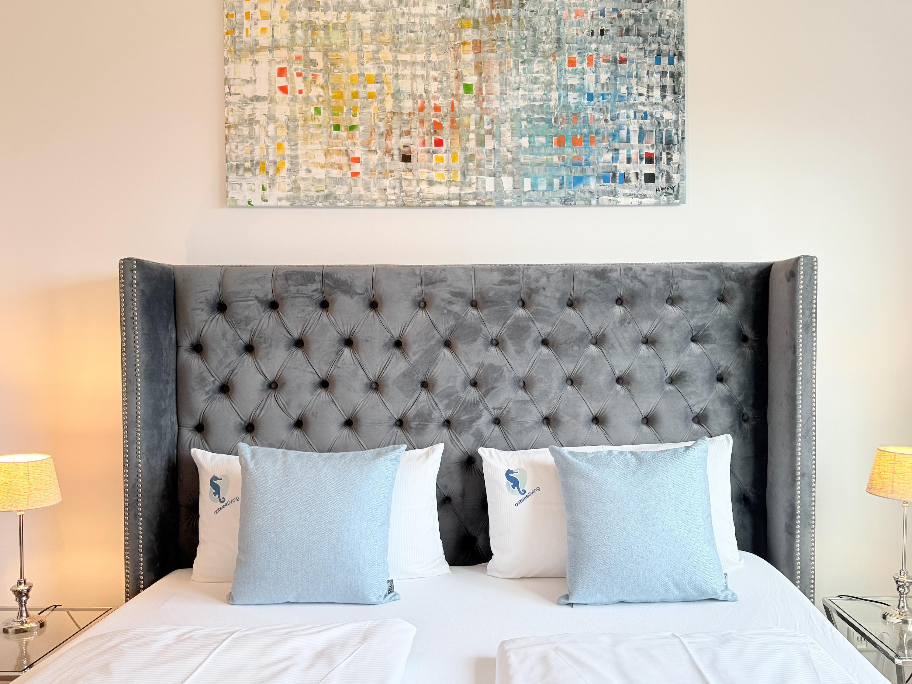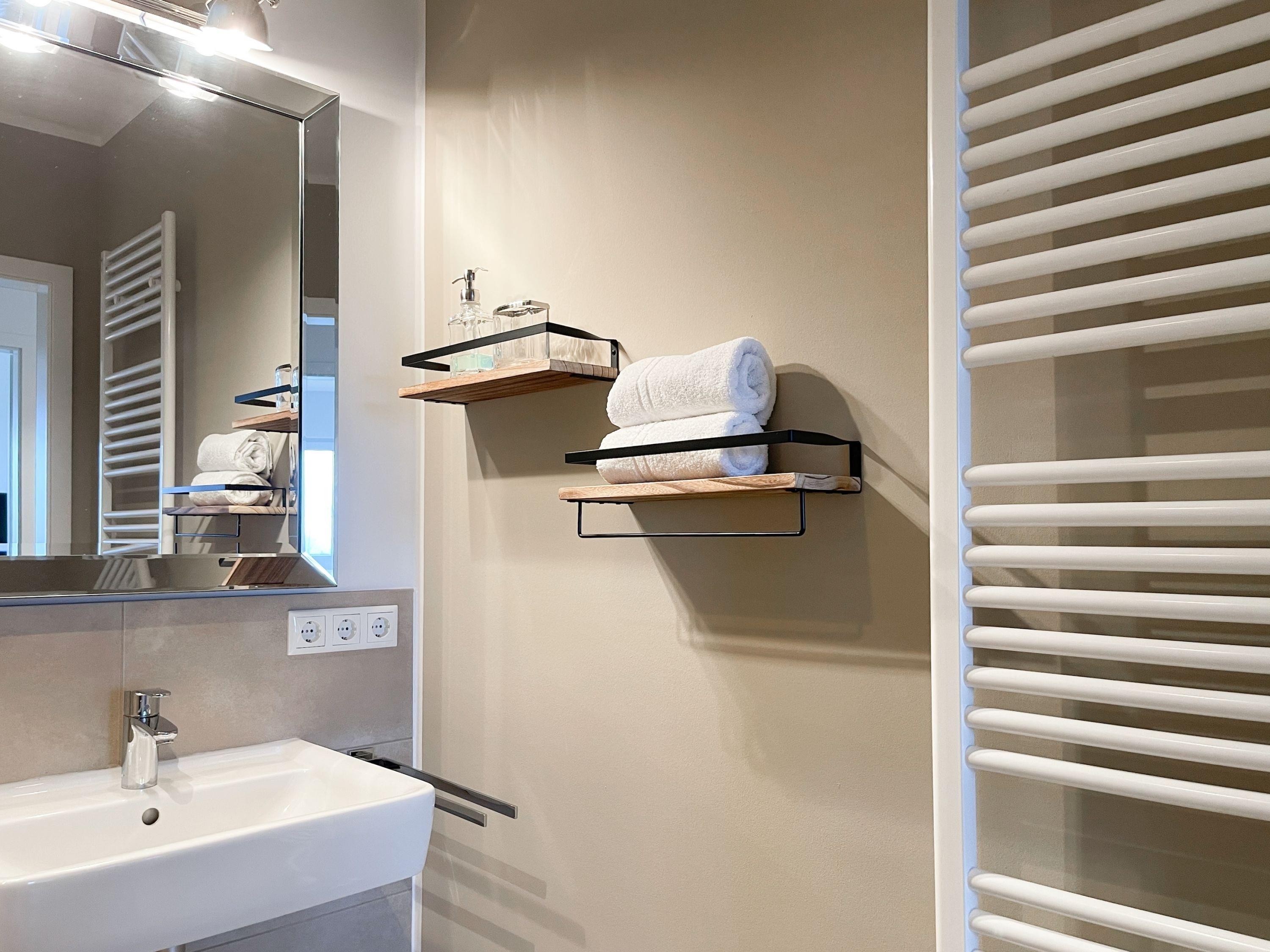 Es erwartet Sie eine äußerst hochwertig ausgestattete und geschmackvoll eingerichtete Ferienwohnung, die mit 2 separaten Schlafzimmern ausreichend Raum für 4 Personen bietet, um einen entspannten Urlaub in einem herrlichen Ambiente zu verleben. Fußbodenheizung, elektrische Außenjalousien und bodentiefe Fensterelemente, die für ein offenes Raumgefühl sorgen, gewährleisten einen hohen Wohnstandard. Mittelpunkt der Ferienwohnung bildet die Siematic Design Küche mit Kochinsel in bester Ausstattung, die zum gemeinsamen Kochen einlädt und der anschließende Essbereich im Hampton Style. Der behagliche Wohnbereich, eingerichtet mit Sofa und TV, bietet Blick und Zugang auf die großzügig angelegte Westterrasse mit Gartenmöbeln und Sonnenliegen, um den Tag bei einem Glas Wein mit Ostseeblick ausklingen zu lassen. Beide Schlafzimmer bieten einen herrlichen Ausblick bis auf bis auf das Meer und sind mit hochwertigem Teppichboden,[nbsp] Doppelbetten (180x200) und einem Kleiderschrank ausgestattet. In einem der Schlafräume befindet sich ein zusätzlicher Fernseher.[nbsp] Im Flur des Eingangsbereichs steht ein weiterer Einbauschrank für Jacken und Mäntel zur Verfügung. Das Bad ist sehr hochwertig und modern, ausgestattet mit einer XXL Walk In Dusche. Waschmaschine und Trockner befinden sich in einem Einbauschrank. WLAN steht selbstverständlich zur kostenlosen Nutzung zur Verfügung. Fahrräder können auf der Terrasse der Wohnung abgestellt werden.