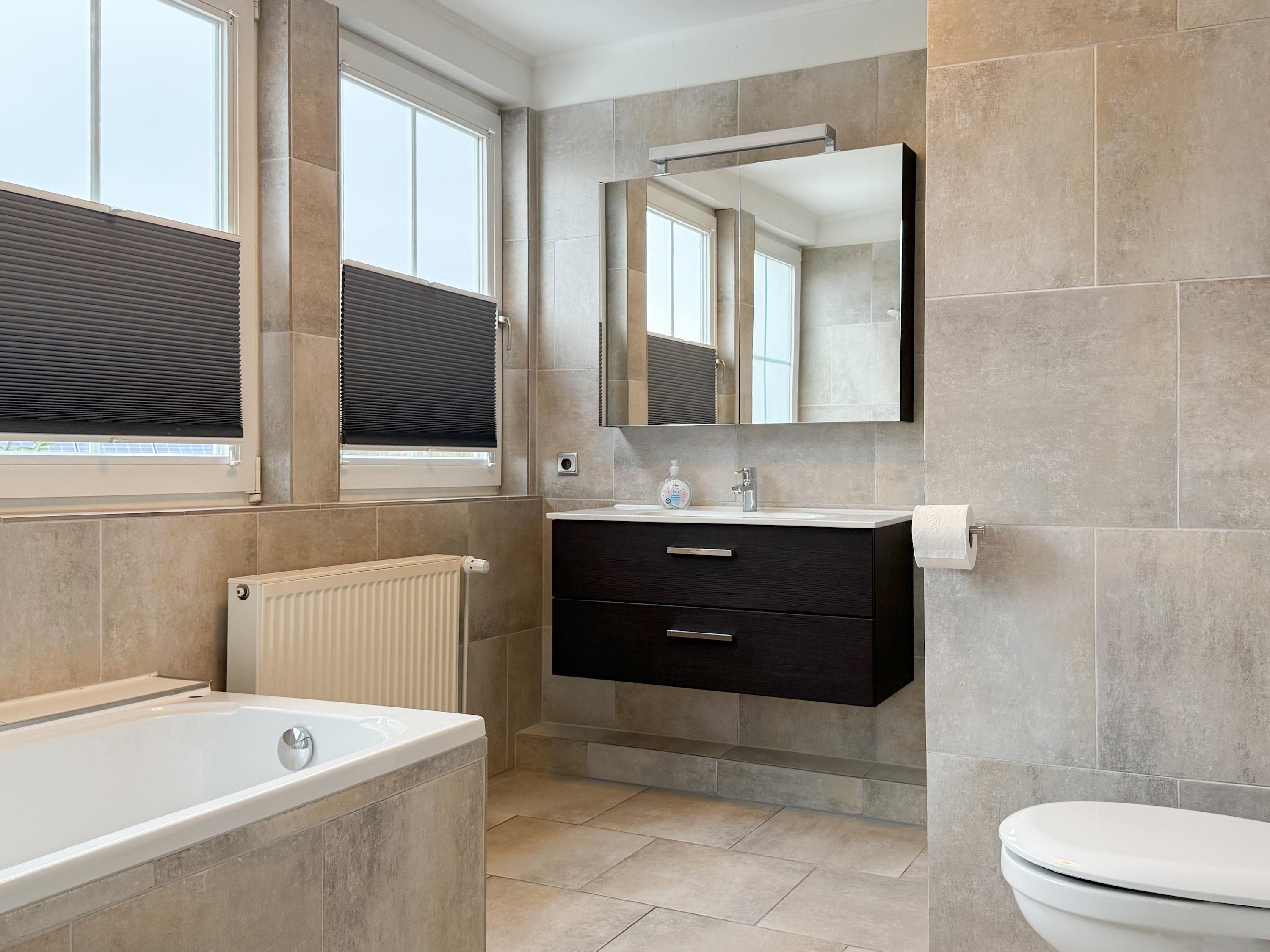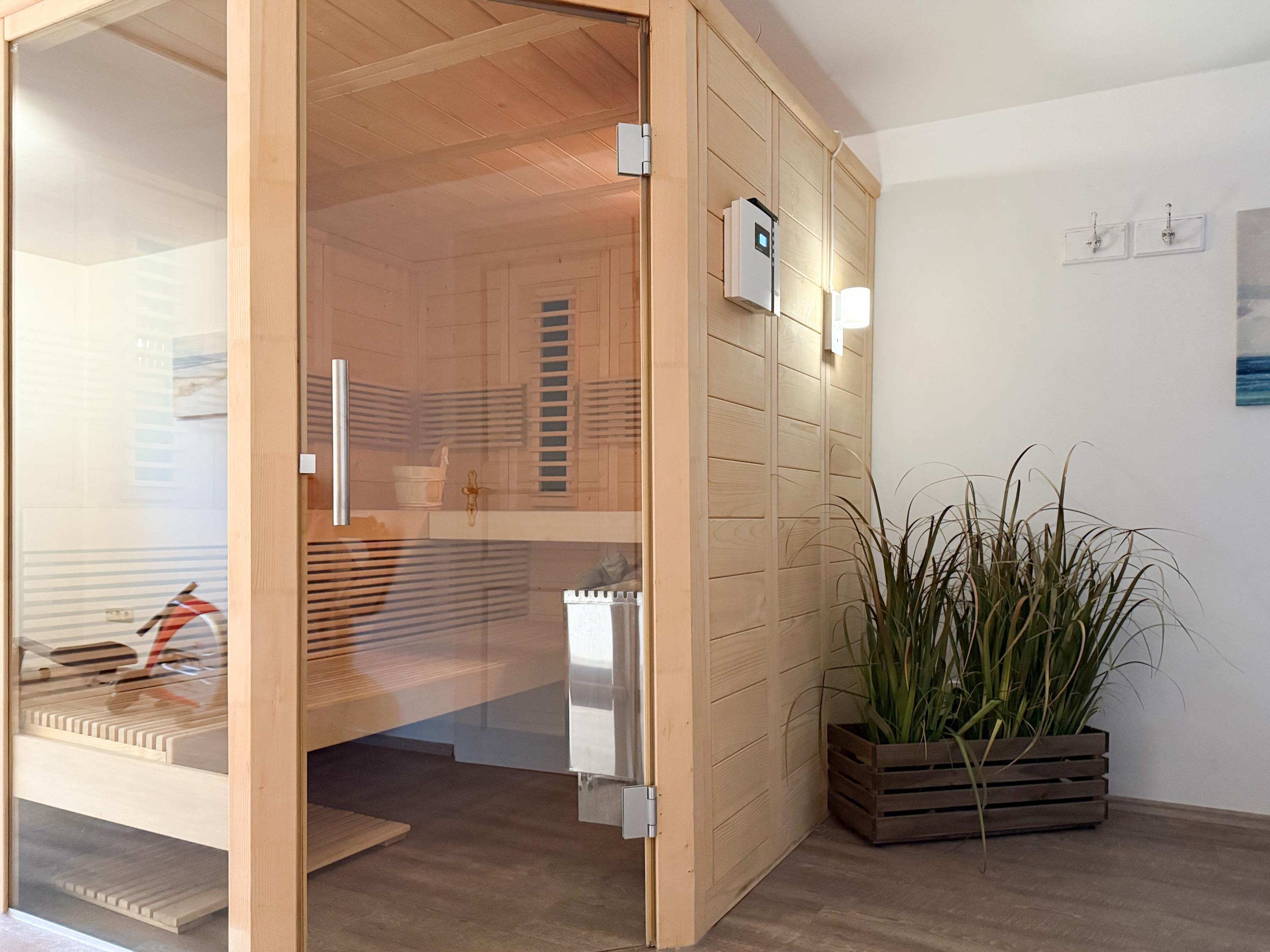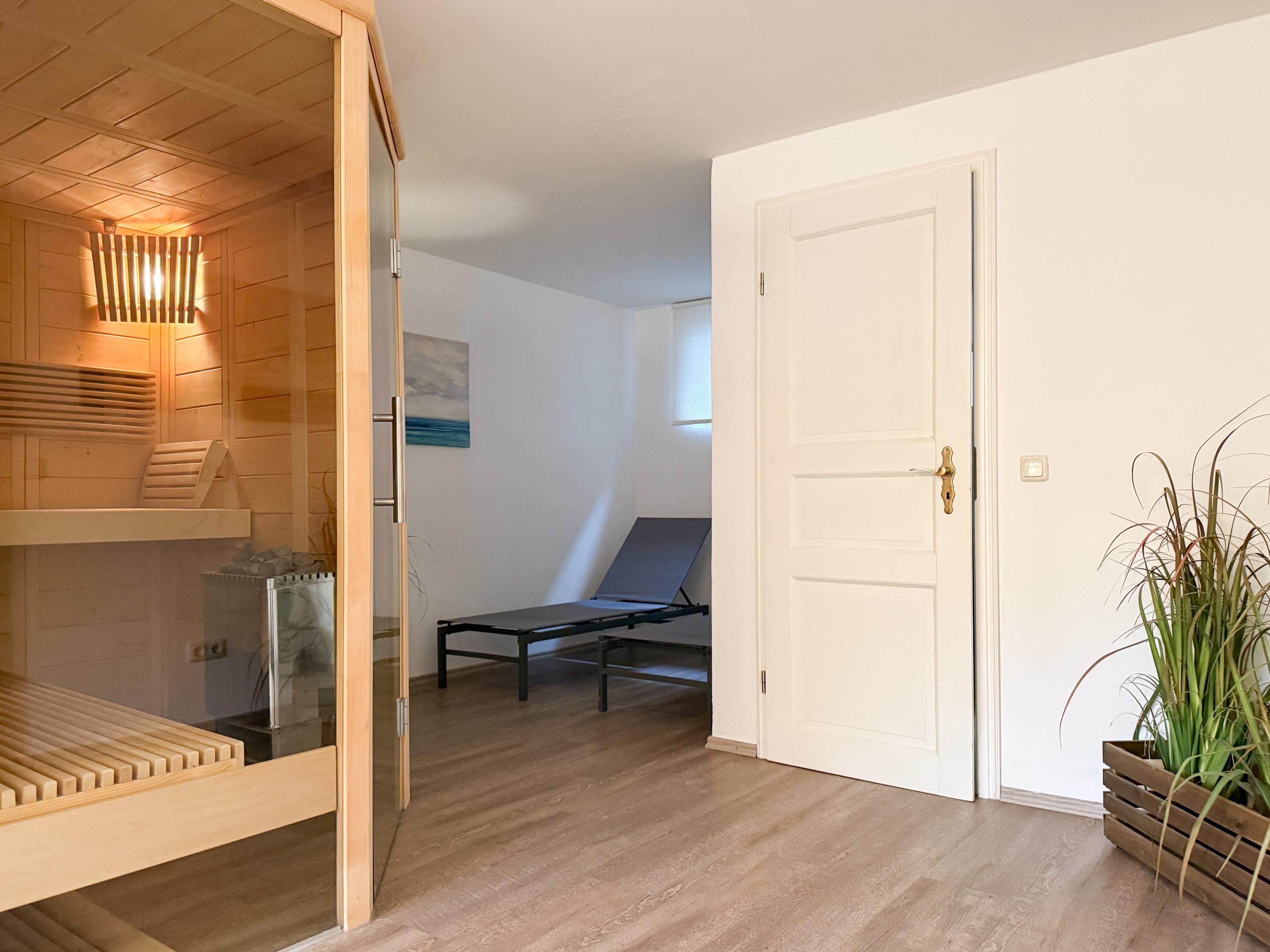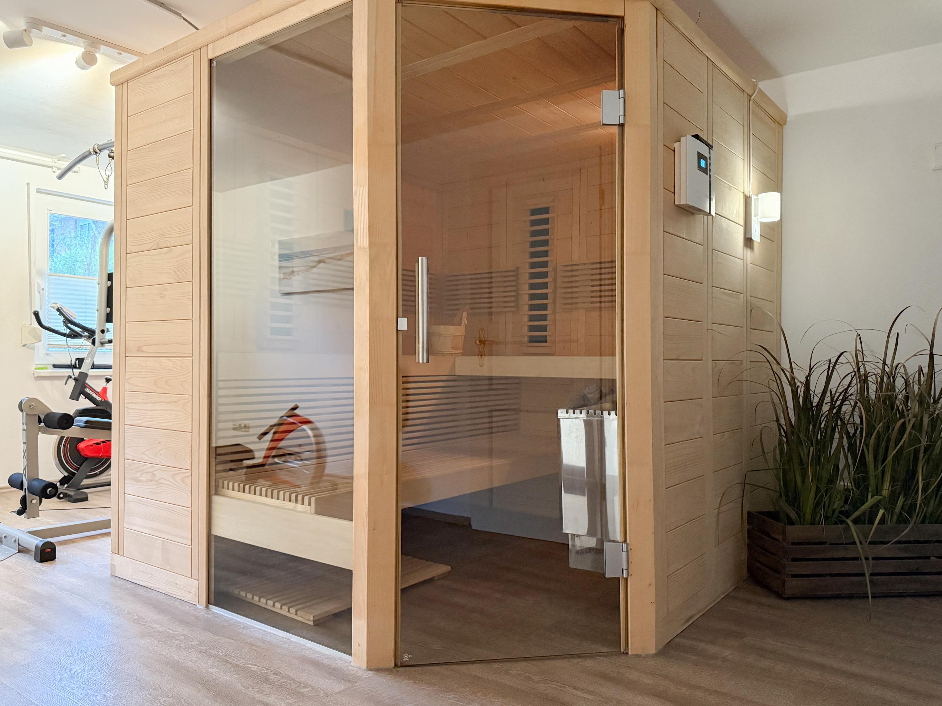 Das geschmackvoll eingerichtete Ferienhaus ist von einem schönen, vollständig eingezäuntem Garten mit altem Baumbestand umgeben. Es gibt insgesamt drei Terrassen[nbsp][nbsp]mit[nbsp][nbsp] Loungemöbeln, Markise, Sonnenliegen und Essgruppe. Im Erdgeschoss erwartet Sie ein heller Wohnraum und eine gemütliche Leseecke mit schönem Blick in den großzügig angelegten Garten, ein anschließender Essbereich[nbsp] sowie eine vollausgestattete Küche. Ein Schlafzimmer mit Boxspringbett (160x200), TV und Verdunkelungsplissees sowie ein Gäste WC sind ebenfalls auf dieser Ebene untergebracht. Drei weitere Schlafzimmer, ebenfalls mit Boxspringbetten (180x200), TV und Verdunkelungsplissees sowie zwei separate Bäder, in deren Mitte sich die Dusche befindet, die von beiden Bädern aus betreten und genutzt werden kann,[nbsp][nbsp]befinden sich im Obergeschoss. Im Untergeschoss sind der Wellnessbereich mit Sauna und Fitnessraum sowie Waschmaschine und Trockner untergebracht.