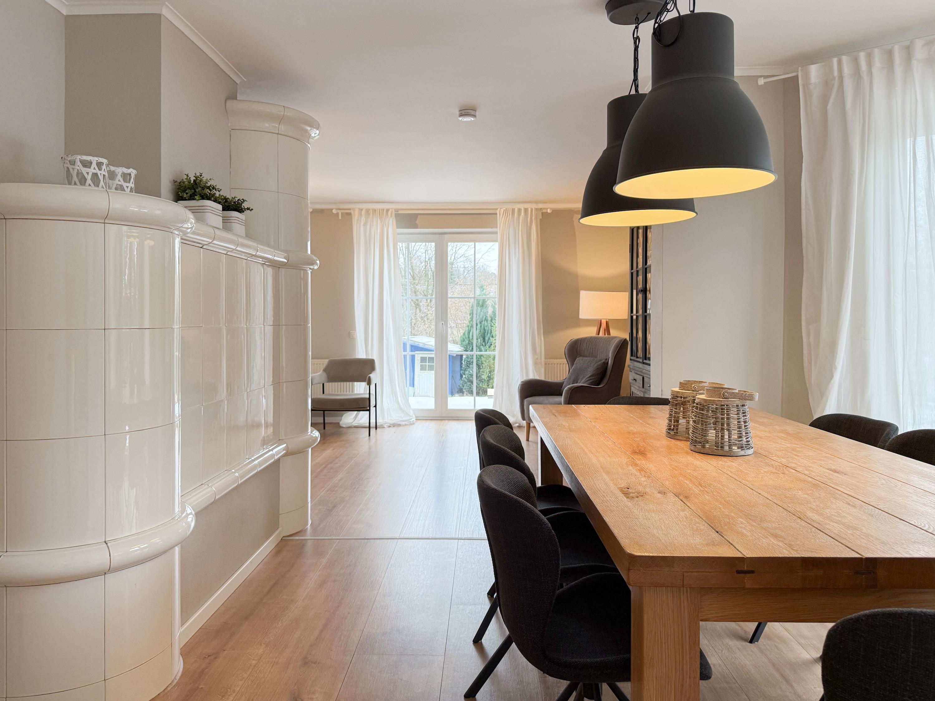 Kostenloser Internetzugang über WLAN. Sämtliche Fenster im Unter- und Erdgeschoss sind mit Außenjalousien versehen. Ein Carport Stellplatz und zwei weitere PKW Stellplätze[nbsp] befinden sich auf dem Grundstück. Ein Fahrradschuppen zum trockenen Abstellen von Fahrrädern ist ebenfalls vorhanden. Das Grundstück ist vollständig eingezäunt. Die Nutzung des Kachelofens im Wohnzimmer ist nicht möglich.