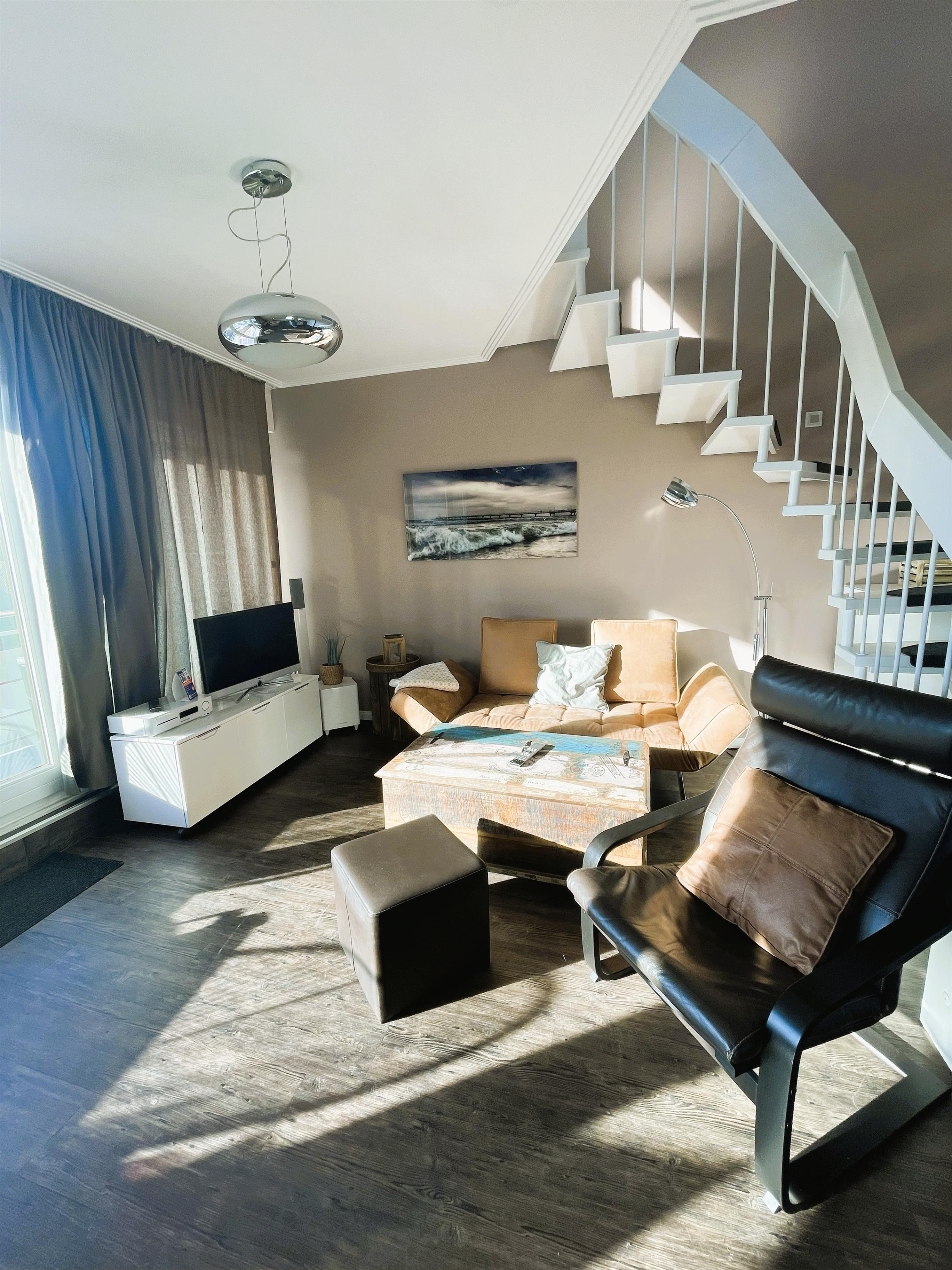Erleben Sie ein besonderes Urlaubszuhause über den Dächern von Scharbeutz – nur wenige Schritte vom feinsandigen Strand und der lebendigen Promenade entfernt. Hier, inmitten der Lübecker Bucht, erwartet Sie eine stilvoll eingerichtete Maisonette-Ferienwohnung, die modernes Design, Gemütlichkeit und echtes Ostsee-Feeling vereint.