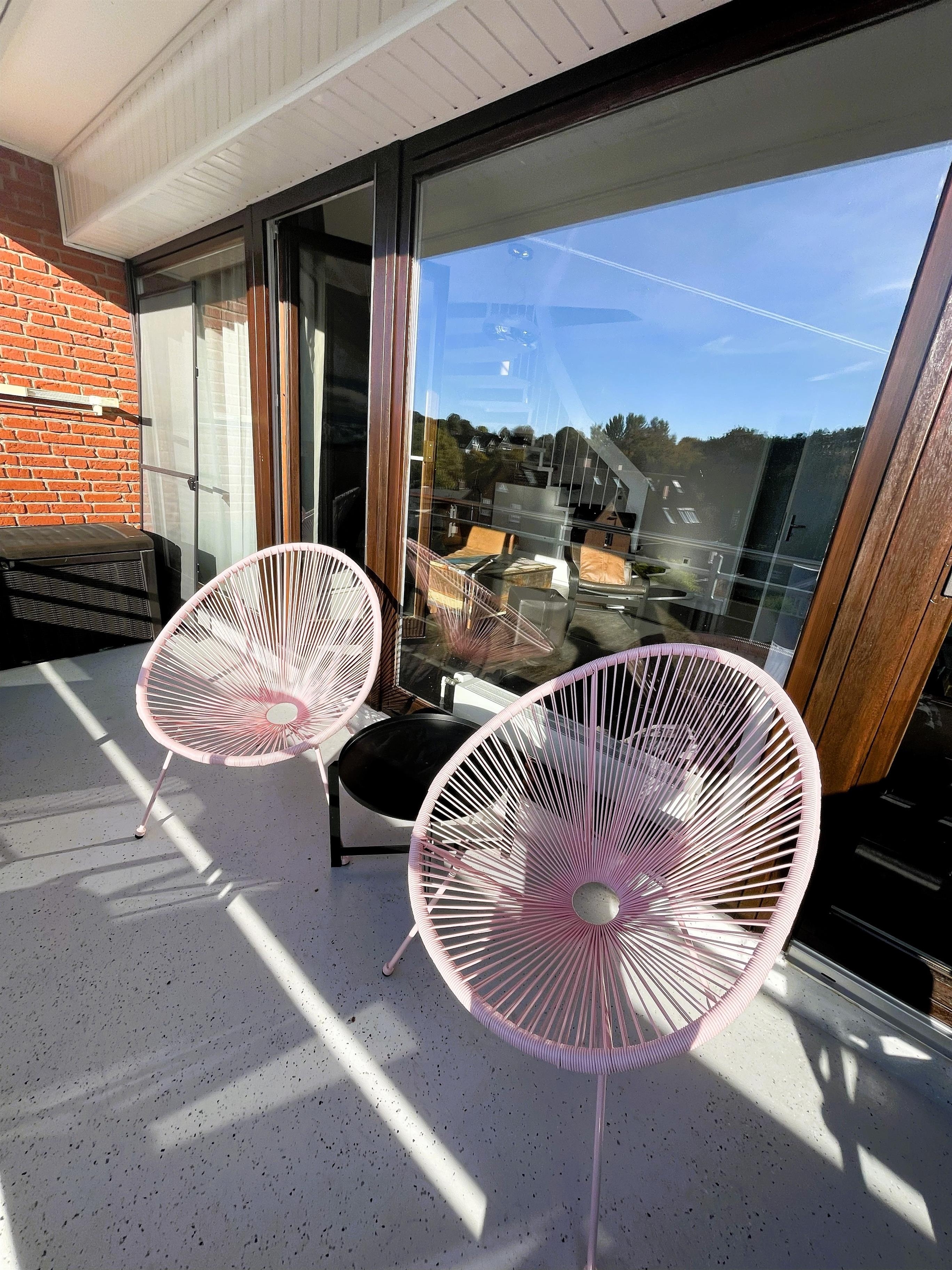 Auf dem zweiten Balkon auf der oberen Etage erwarten Sie weitere komfortable Loungesessel – perfekt, um Sonne zu tanken, zu lesen oder einfach den Moment zu genießen.