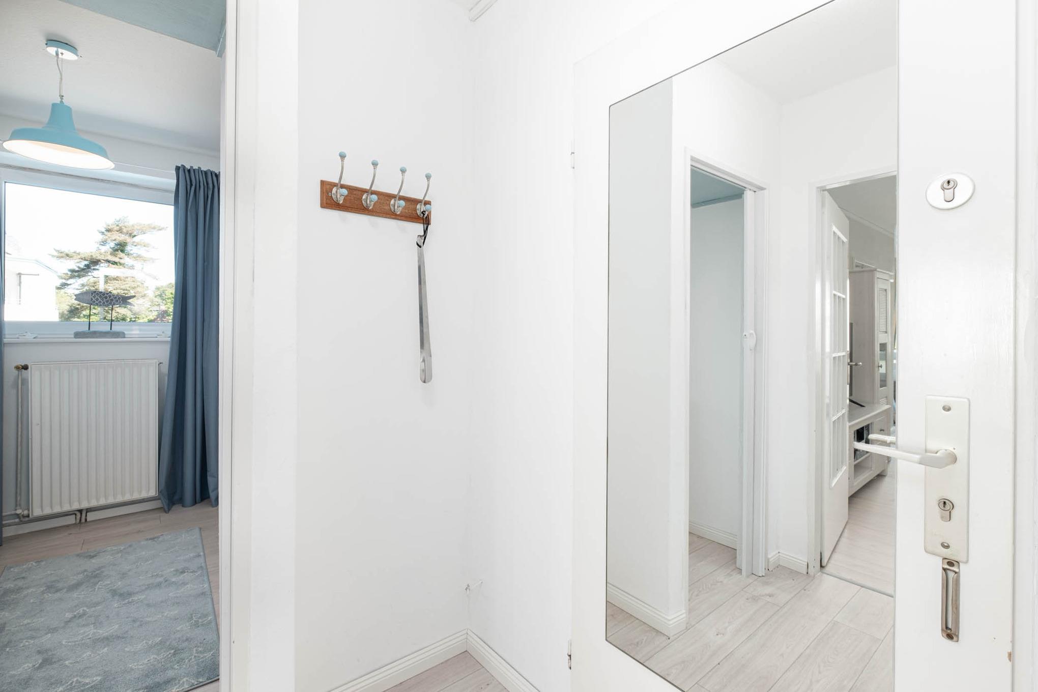 Auf der ersten Etage des Mehrfamilienhauses lädt Sie bereits die Diele in ein helles und maritimes Wohnflair ein, dass sich wie ein maritimer, blauer Faden durch das Gestaltungskonzept der mit viel Herz gestalteten Ferienunterkunft zieht.