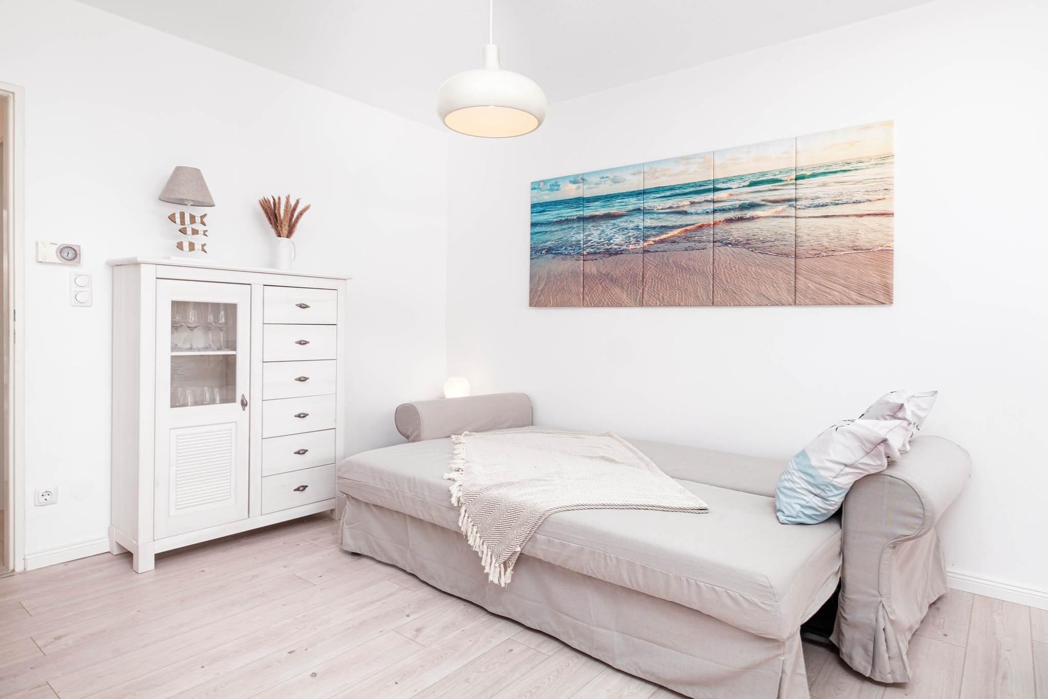 Zwei separate Schlafzimmer stehen Ihnen in diesem Traumdomizil zur Verfügung - darüber hinaus bietet auch die Couch im Wohnraum für eine Person eine Schlafmöglichkeit.