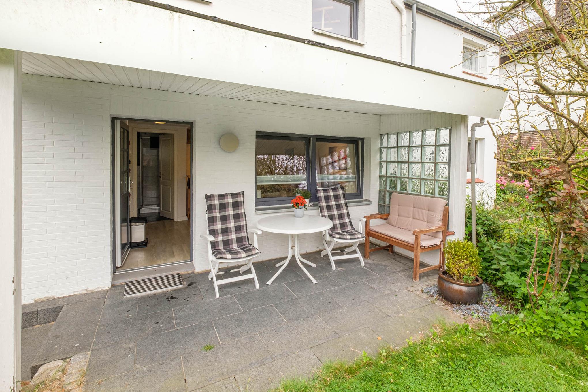 Sie erreichen die Wohnung über die Terrasse im Erdgeschoss, diese ist ruhig von der Straße weg gelegen. Erholung ist dabei garantiert.