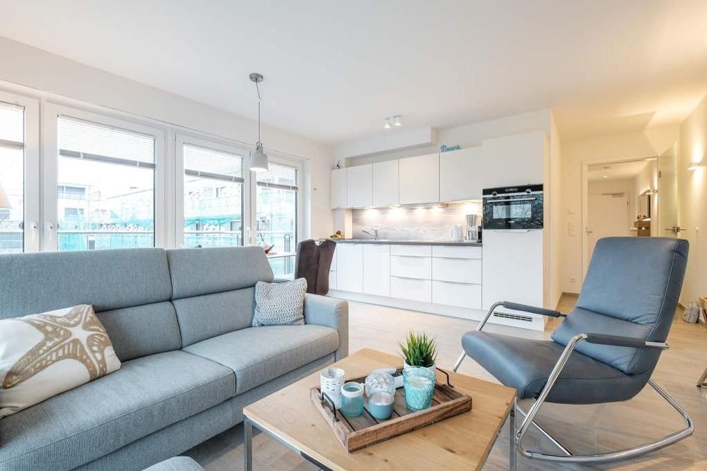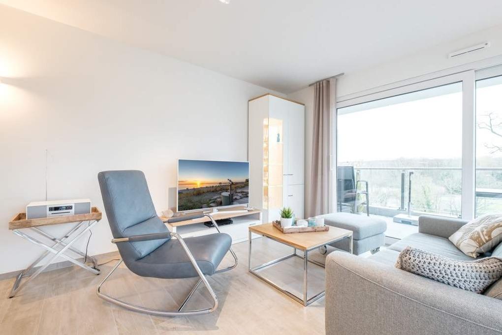 Das gemütliche Wohnzimmer der Scharbeutzer Ferienwohnung verfügt über eine hochwertige Couchgarnitur, einen Flatscreen-TV, einen Blue-Ray-Player und eine Sound-Musikanlage, über die Sie auch Ihre eigene Musik von Ihrem Mobiltelefon abspielen können.